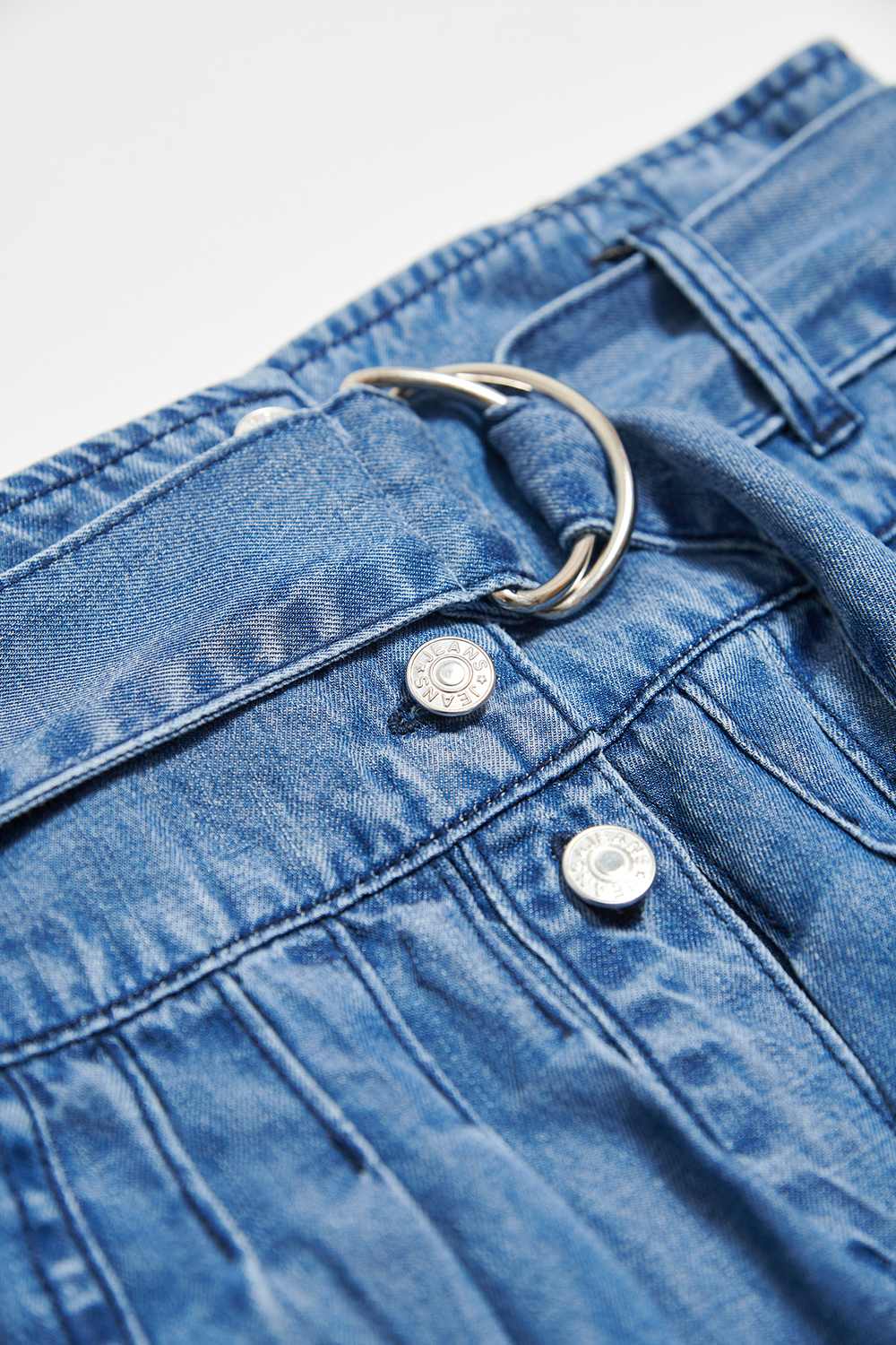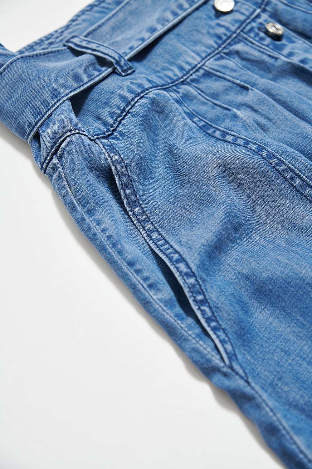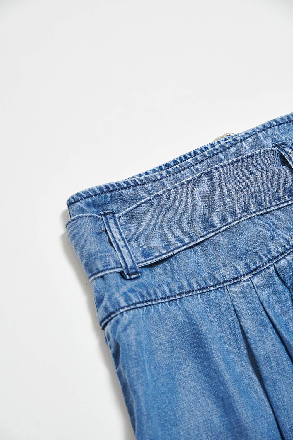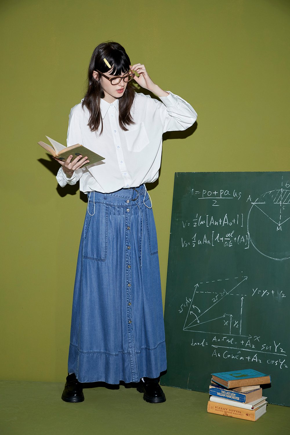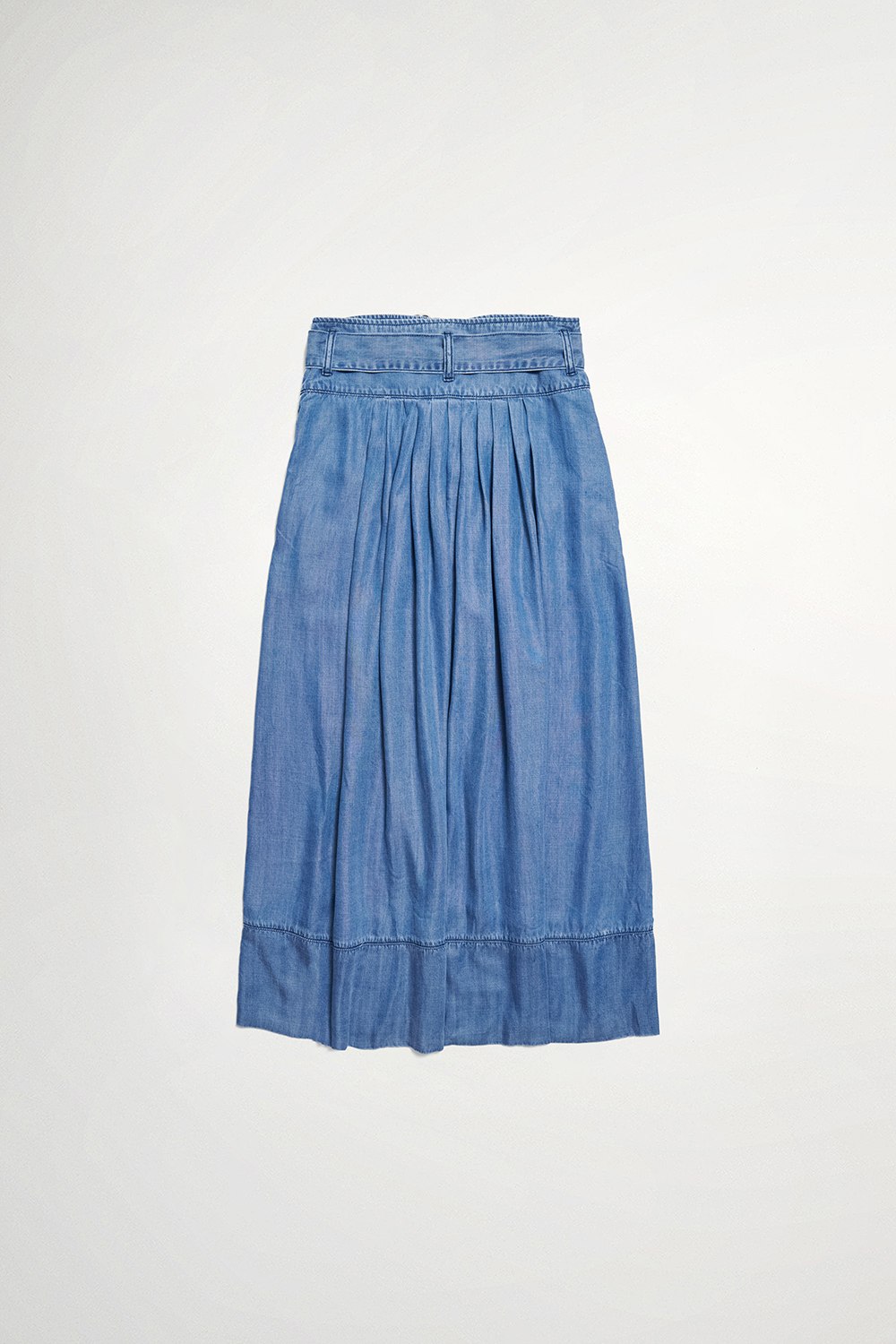 透想亮光絲感排釦壓褶牛仔長裙(附腰帶) - 寧靜黛藍, S