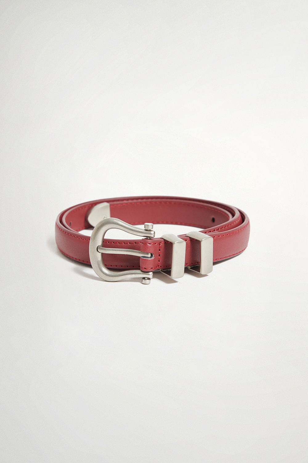 美感怦然牛皮質感細皮帶(灰、紅、咖) - 耀眼赤紅, F