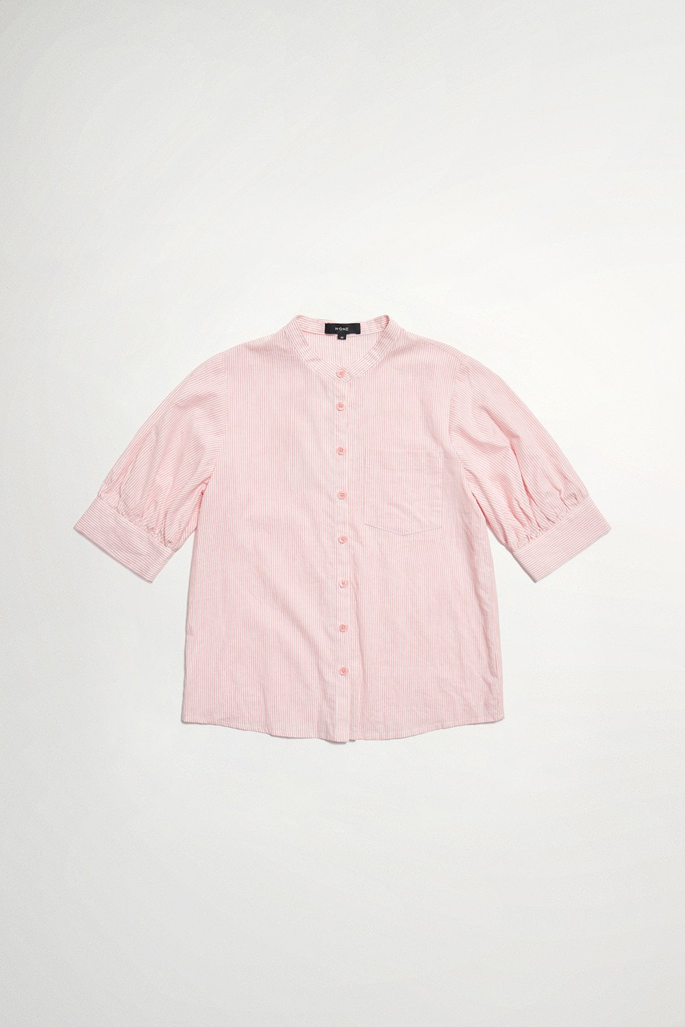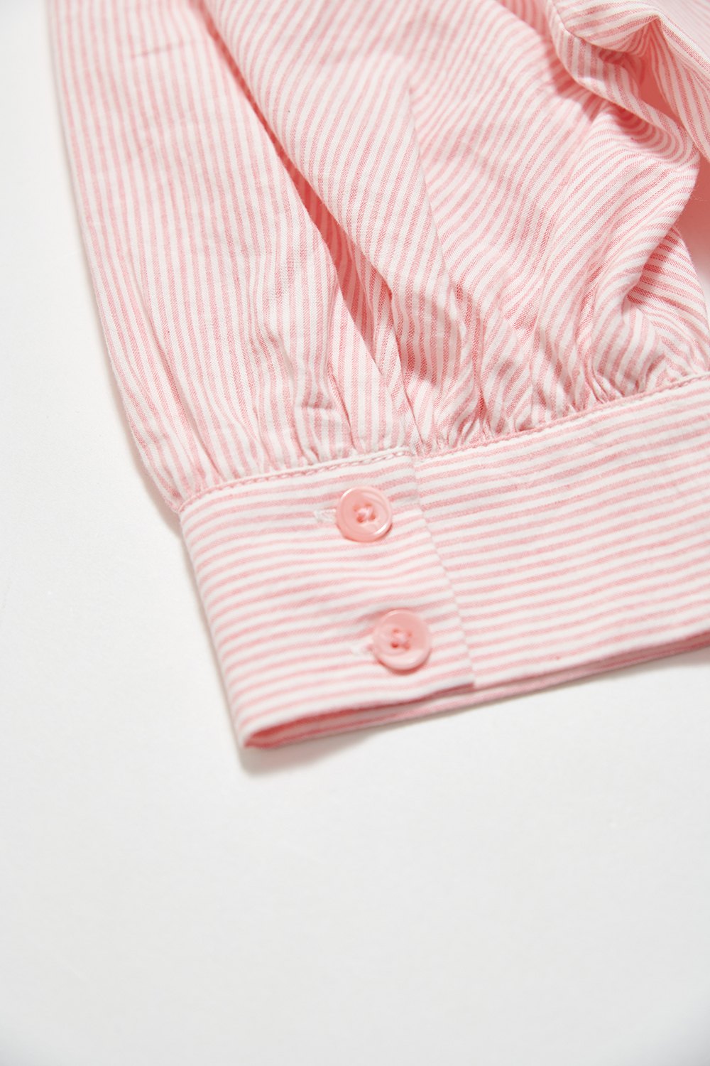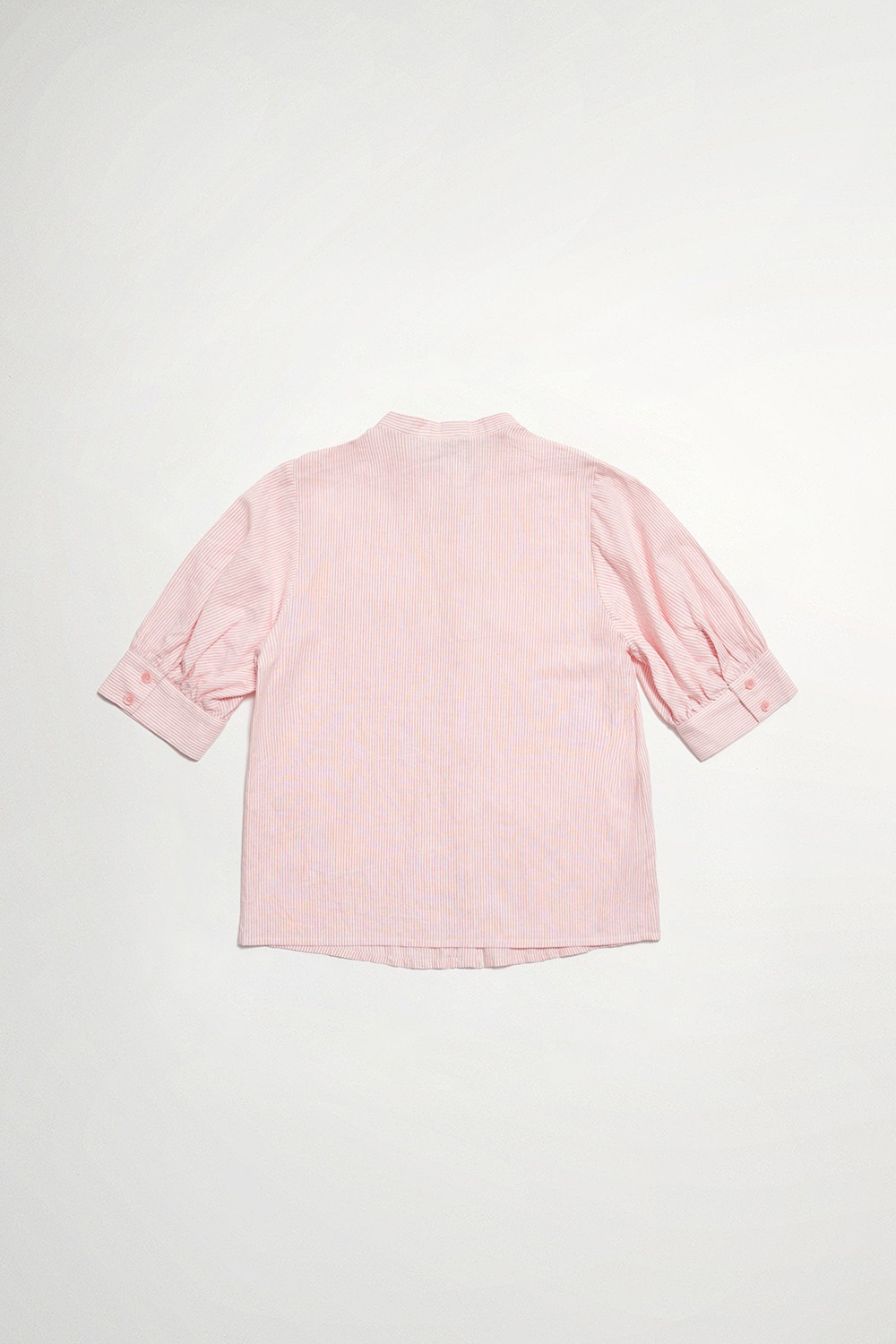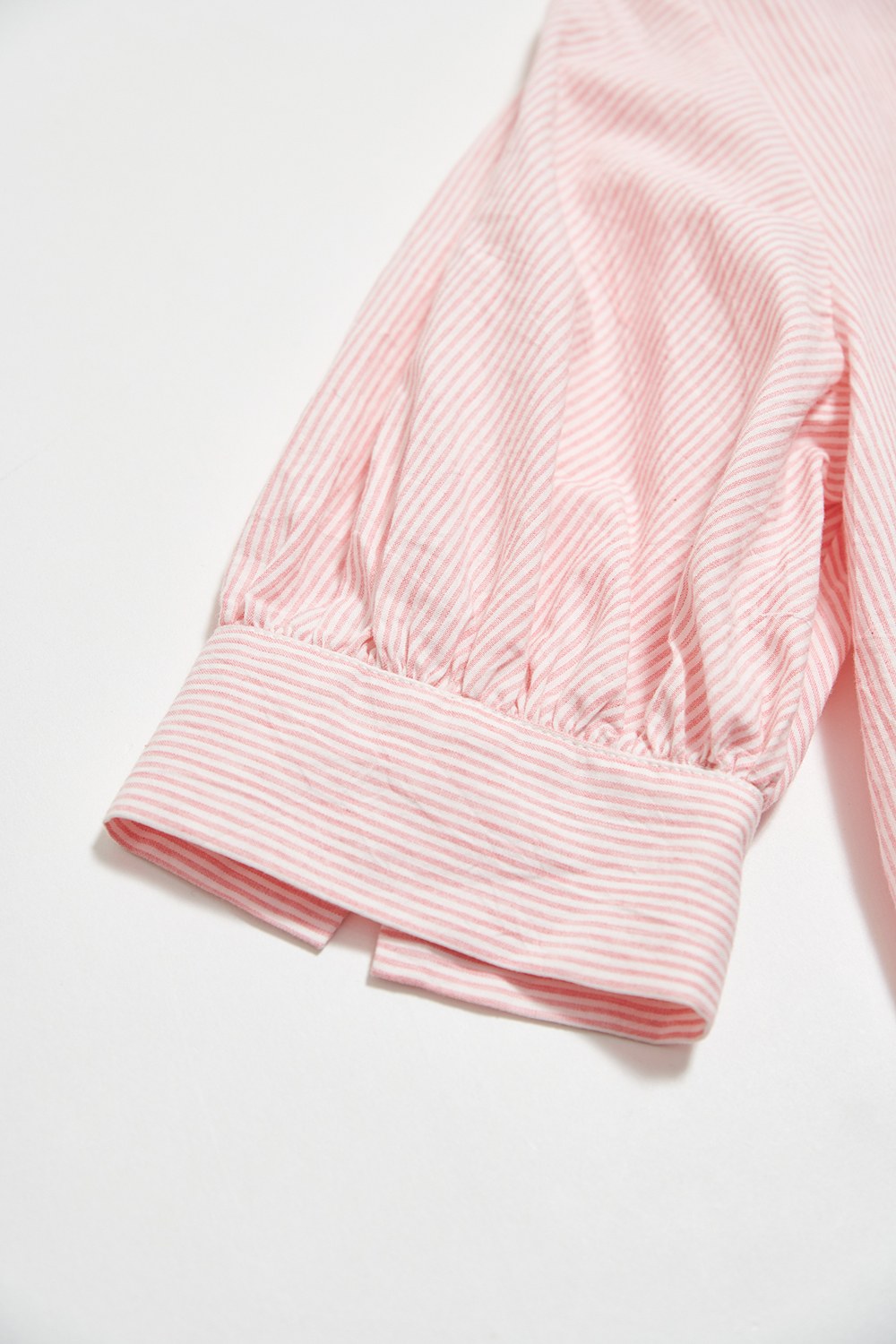 療癒祕時條紋立領蓬袖襯衫 - 既睡粉黛, L