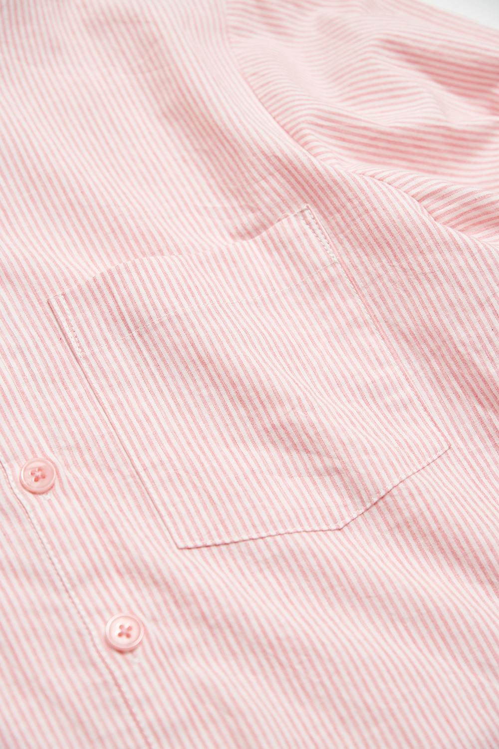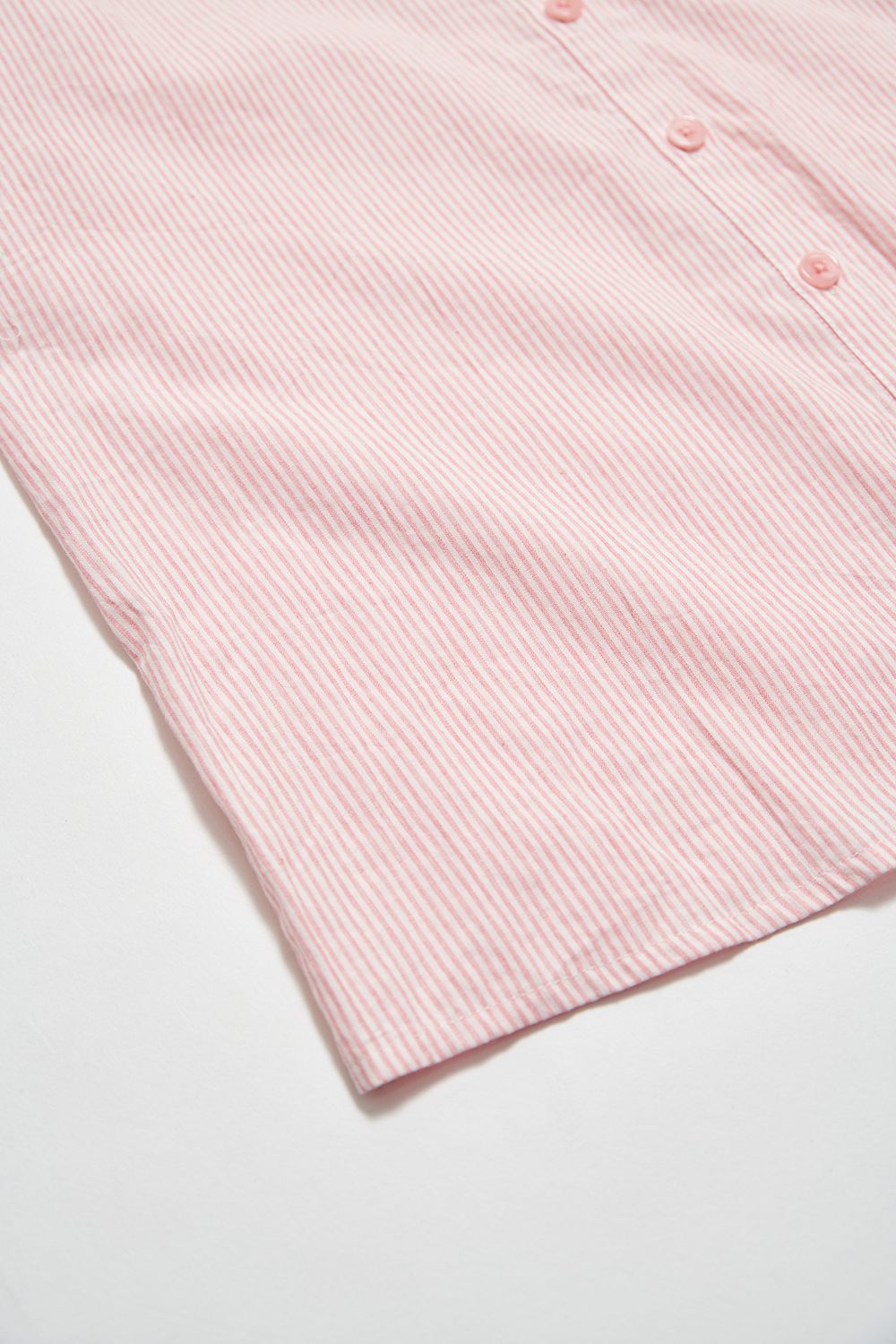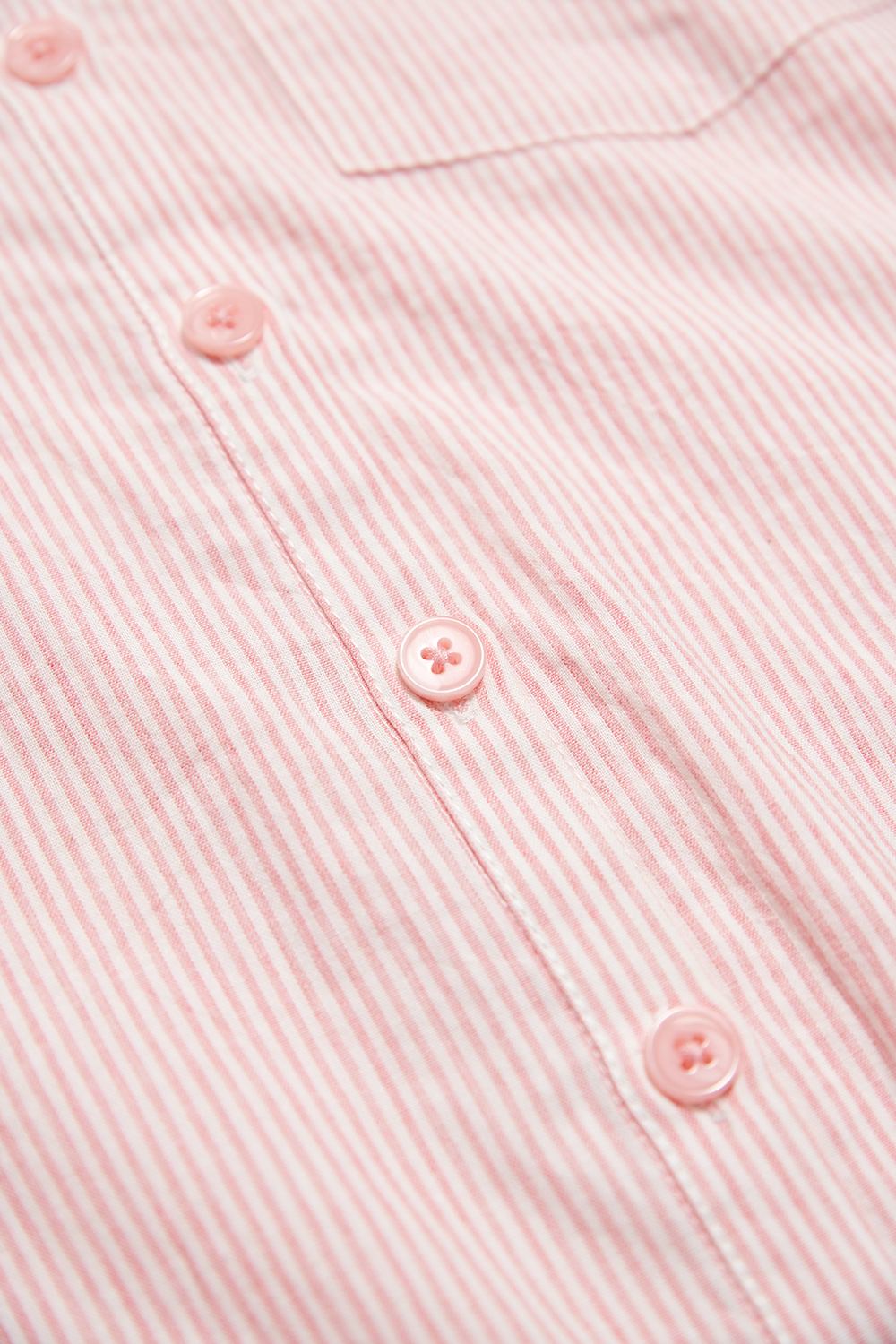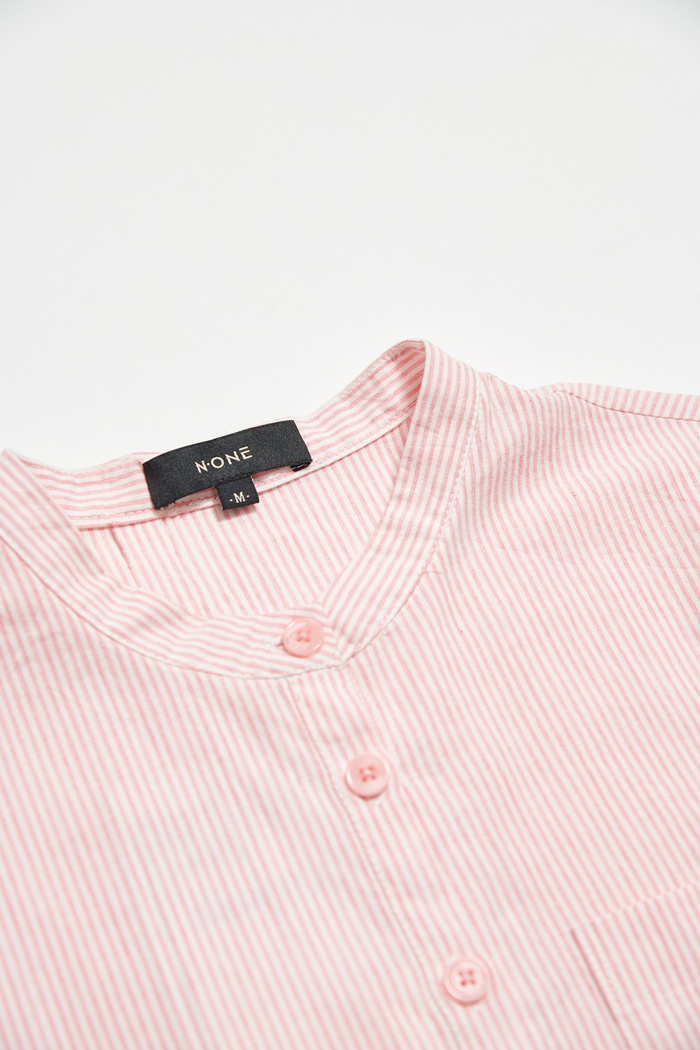 療癒祕時條紋立領蓬袖襯衫 - 既睡粉黛, L