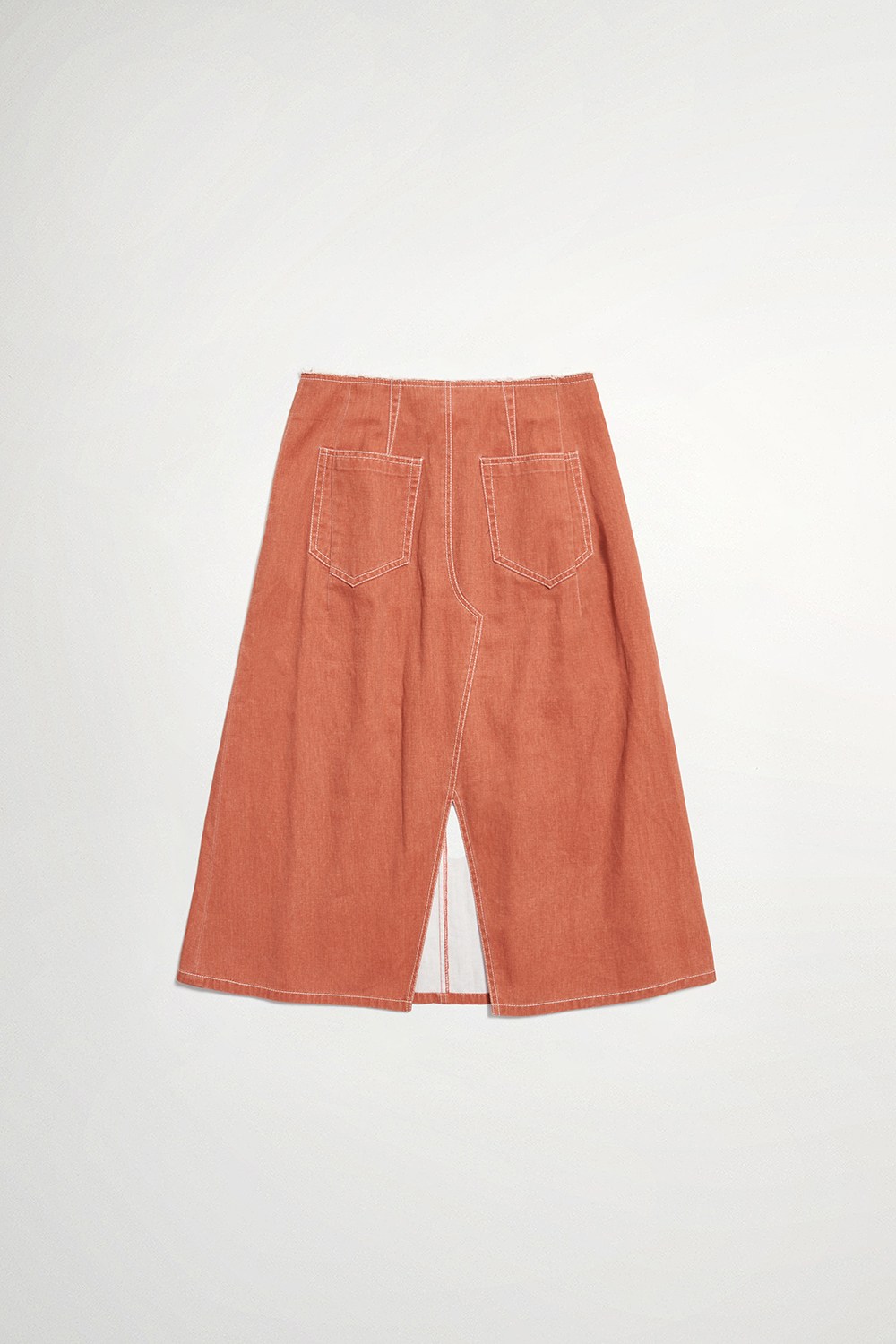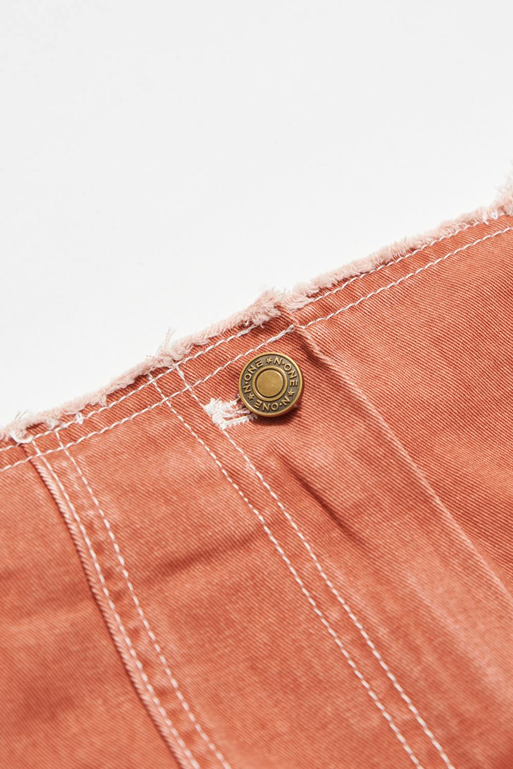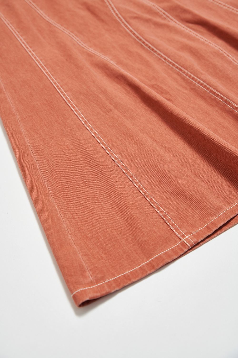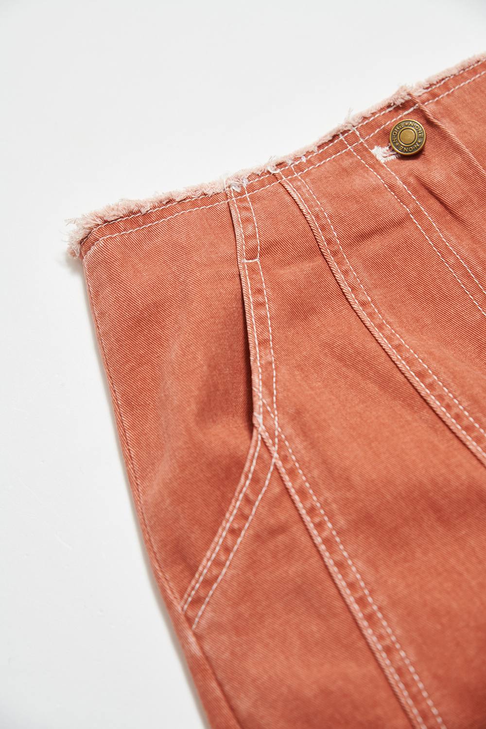 深邃夏澄邊線抽鬚後開衩牛仔裙 - 晚霞橘, L