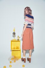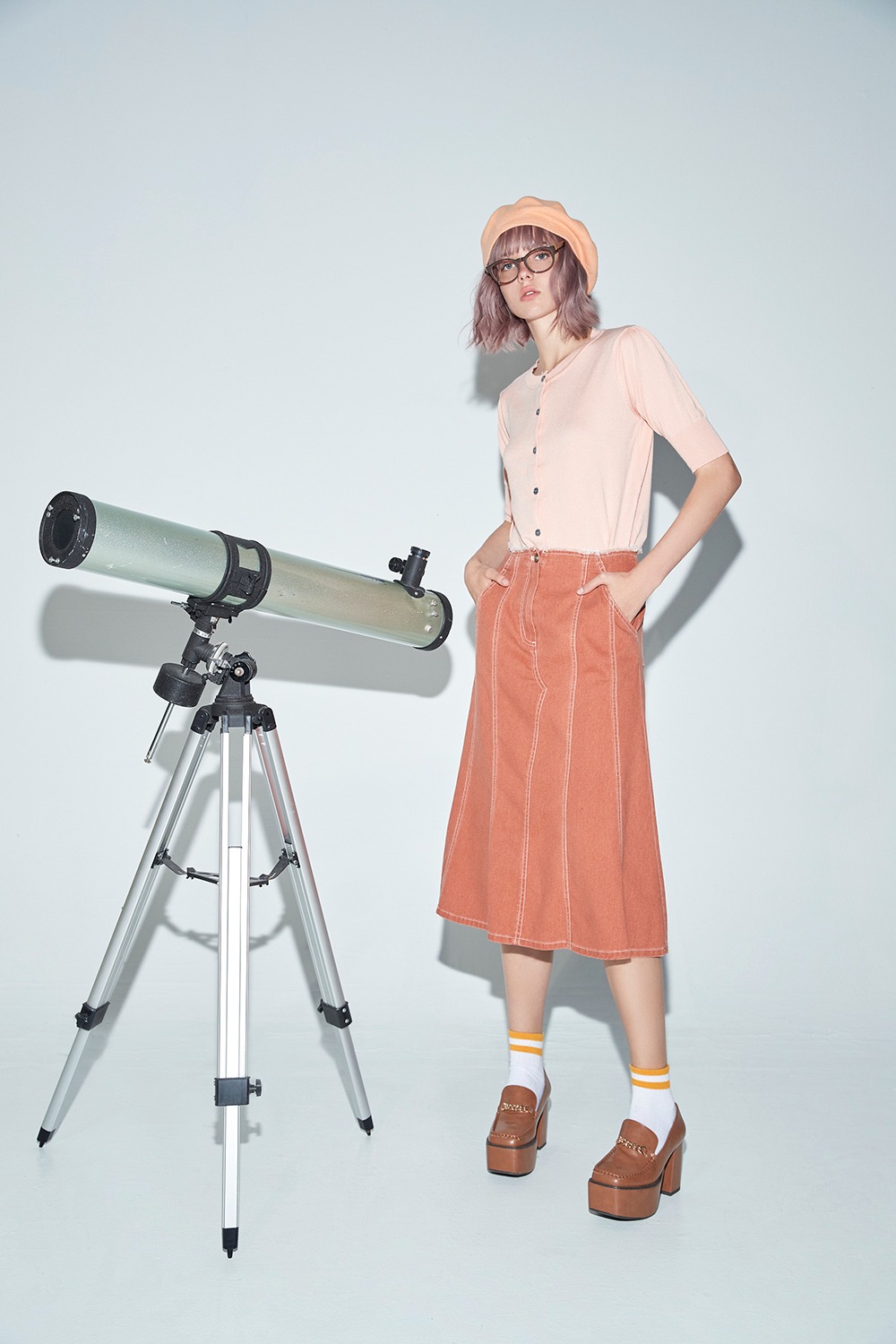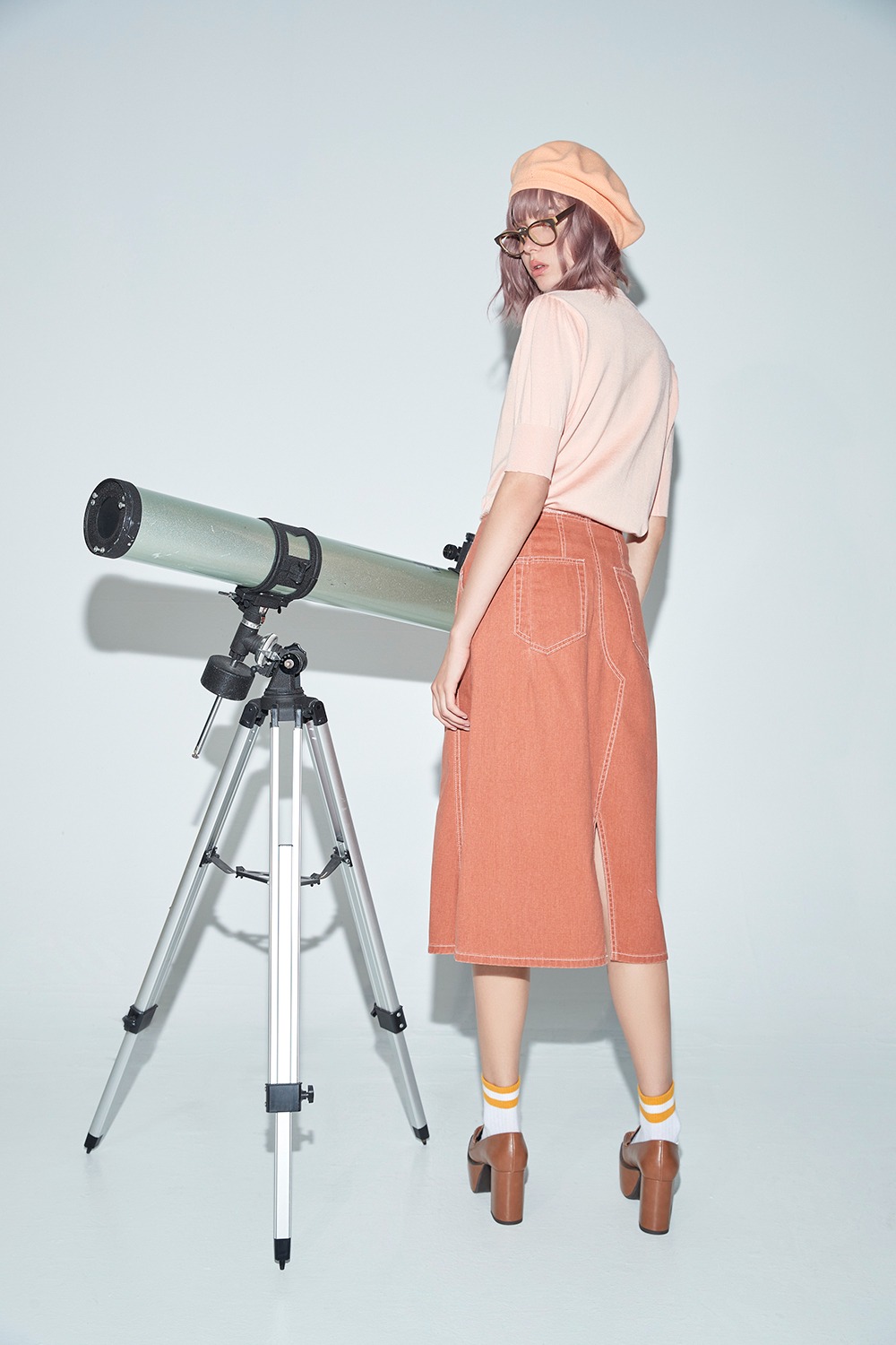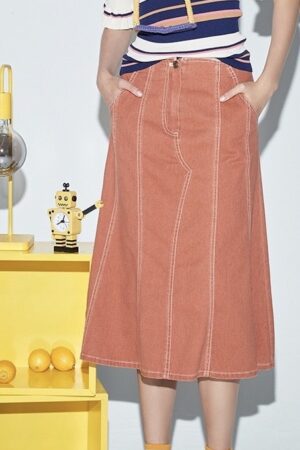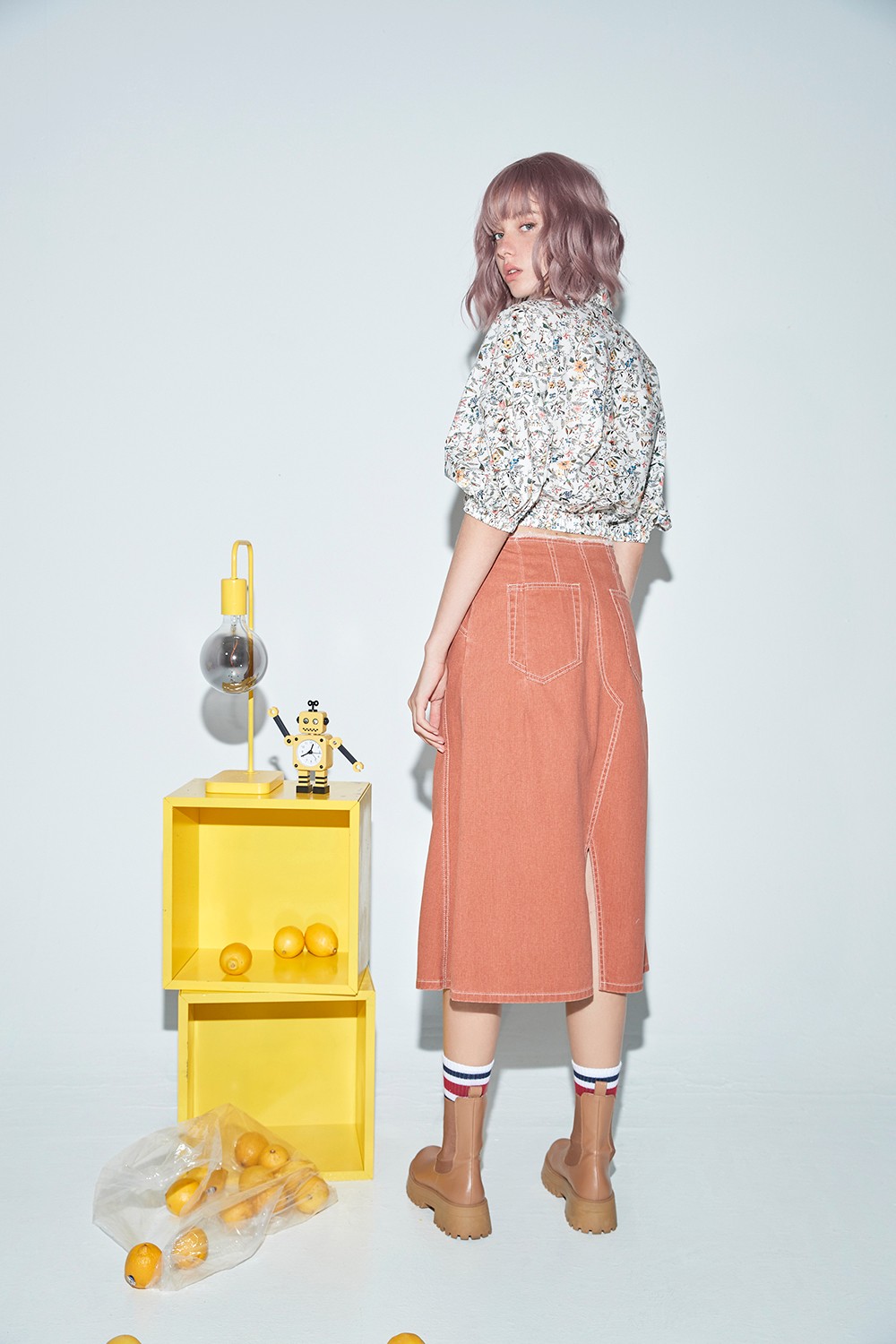 深邃夏澄邊線抽鬚後開衩牛仔裙 - 晚霞橘, L