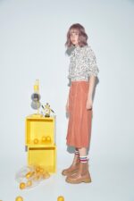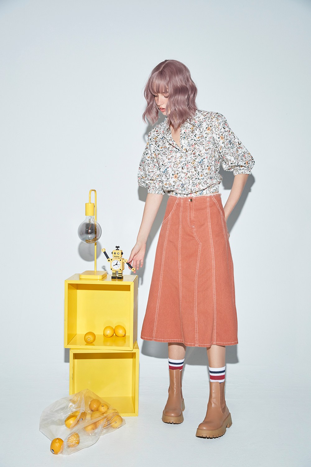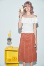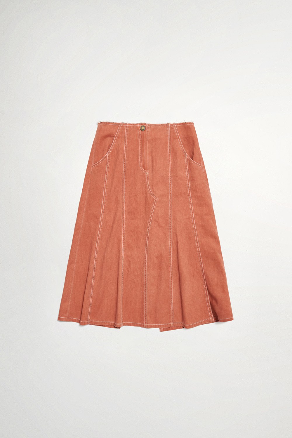 深邃夏澄邊線抽鬚後開衩牛仔裙 - 晚霞橘, M