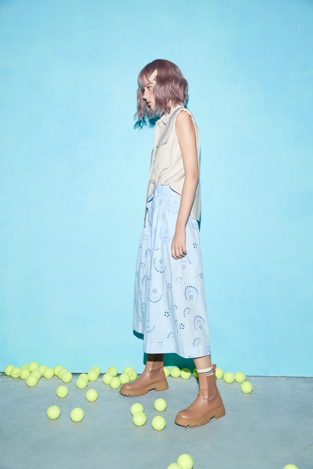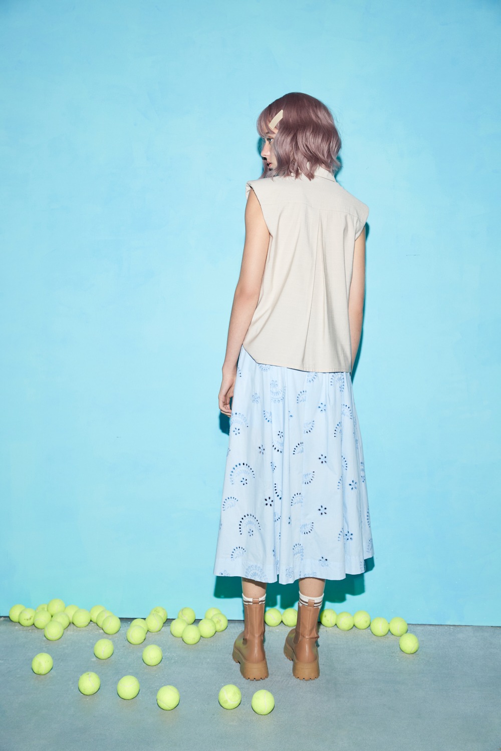 以前開衩細節塑造身形比例的經典,特意以高腰設計讓你可以自在搭配各種上著,特別適合寬鬆簡約的版型可與裙上的花綻相互映襯,使整體呈現剛剛好的慵懶感。