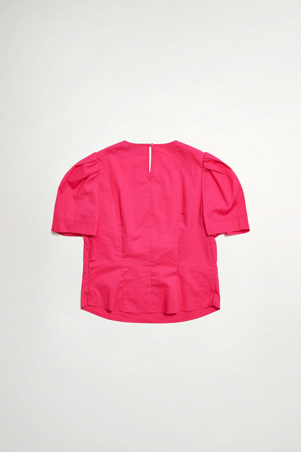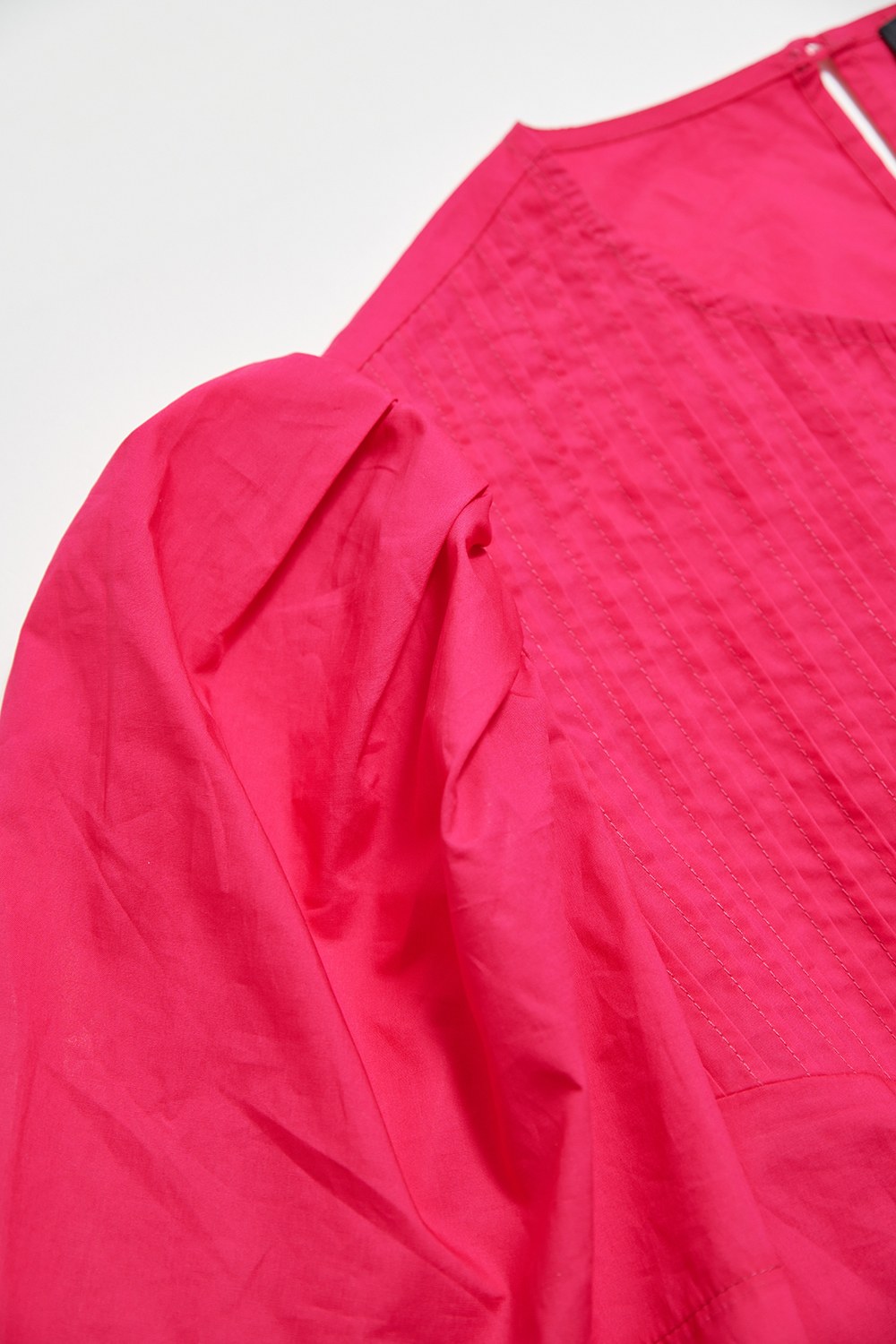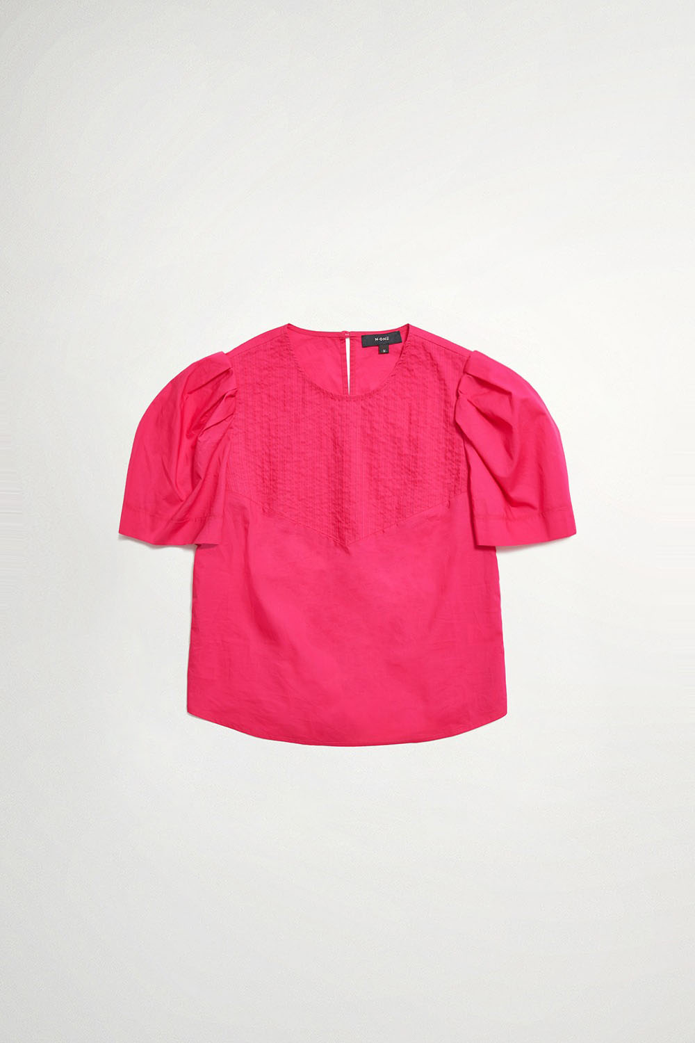 從容柔處細褶蓬袖織紋拼接上衣 - 撫媚枚紅, M