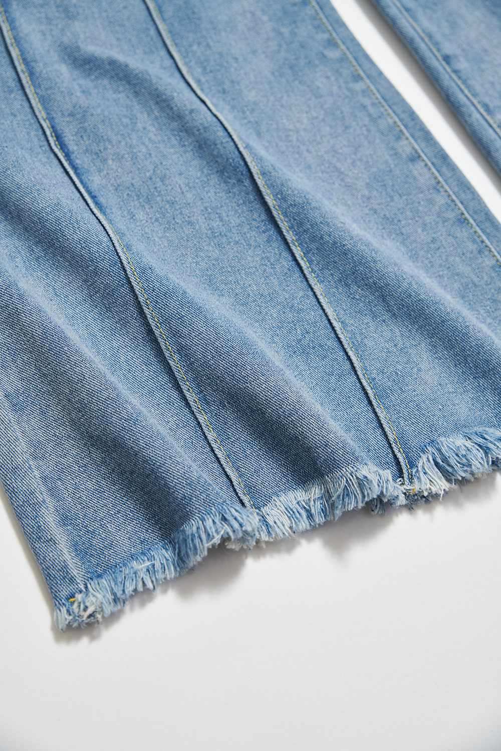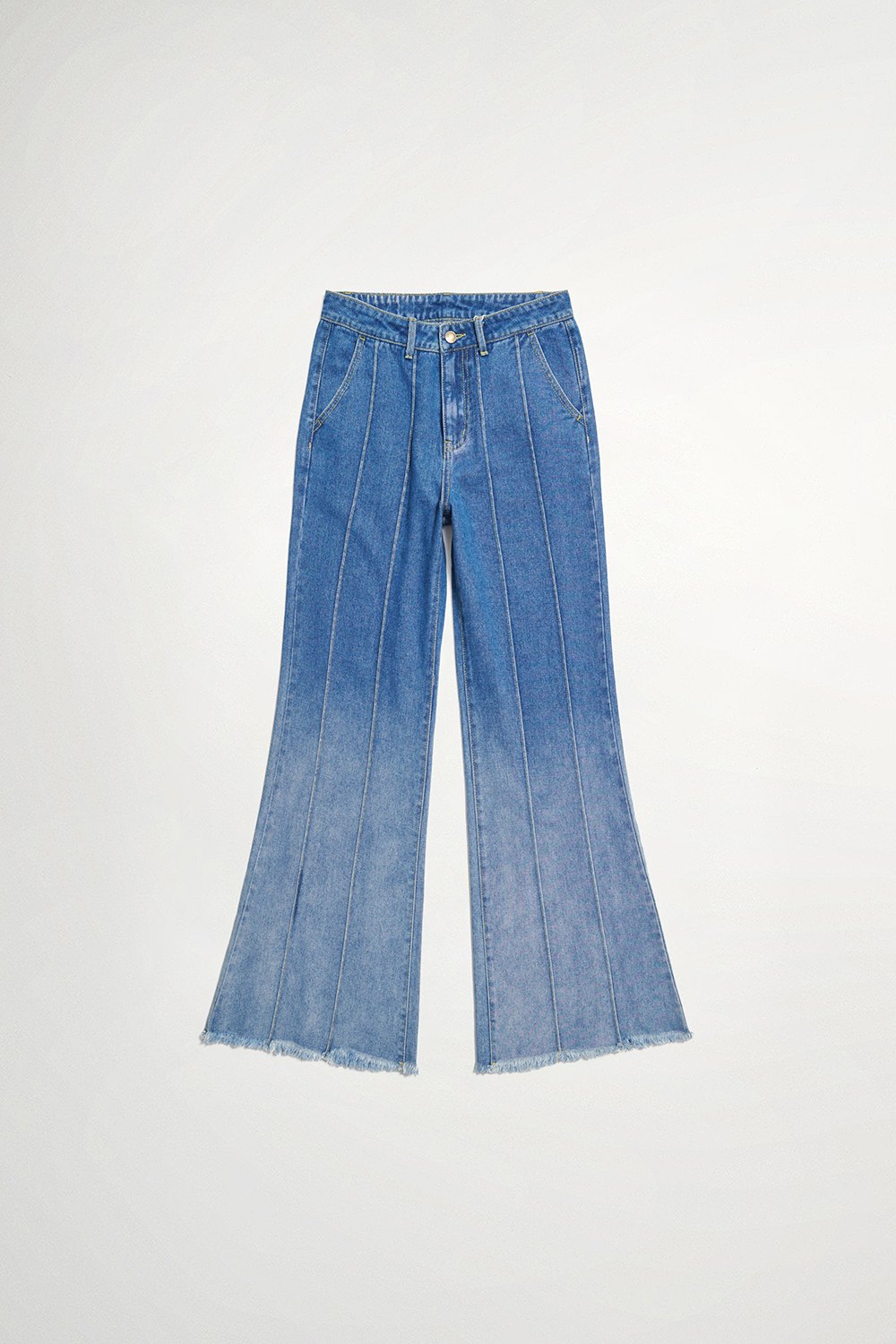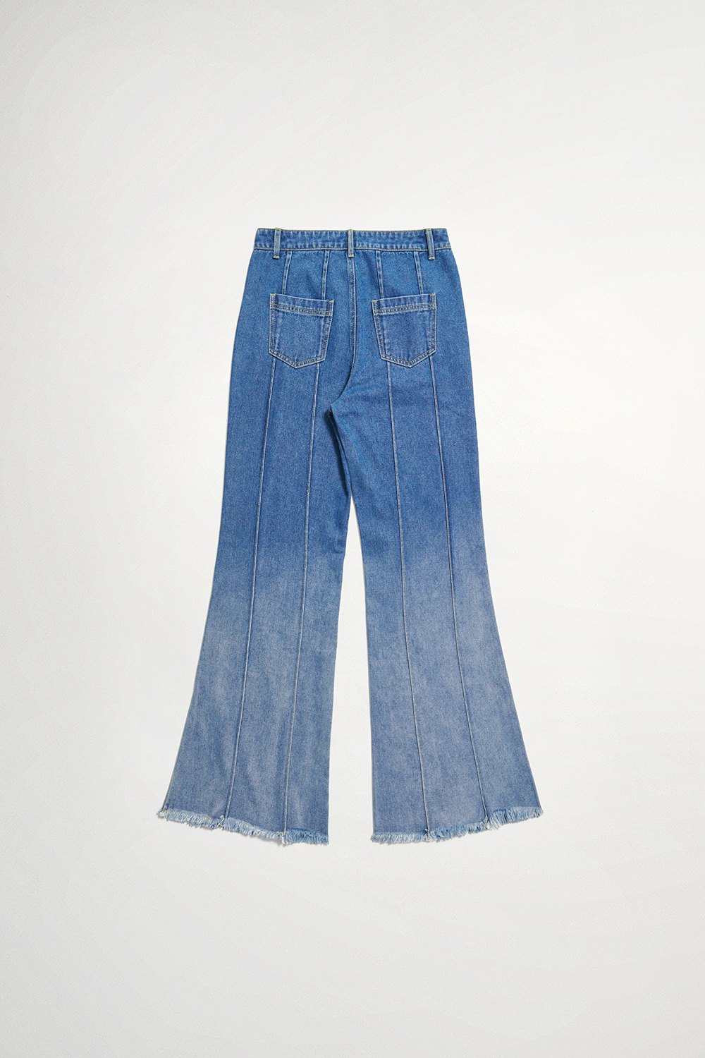 美緹時序車褶流蘇落地喇叭褲 - 寧靜黛藍, S