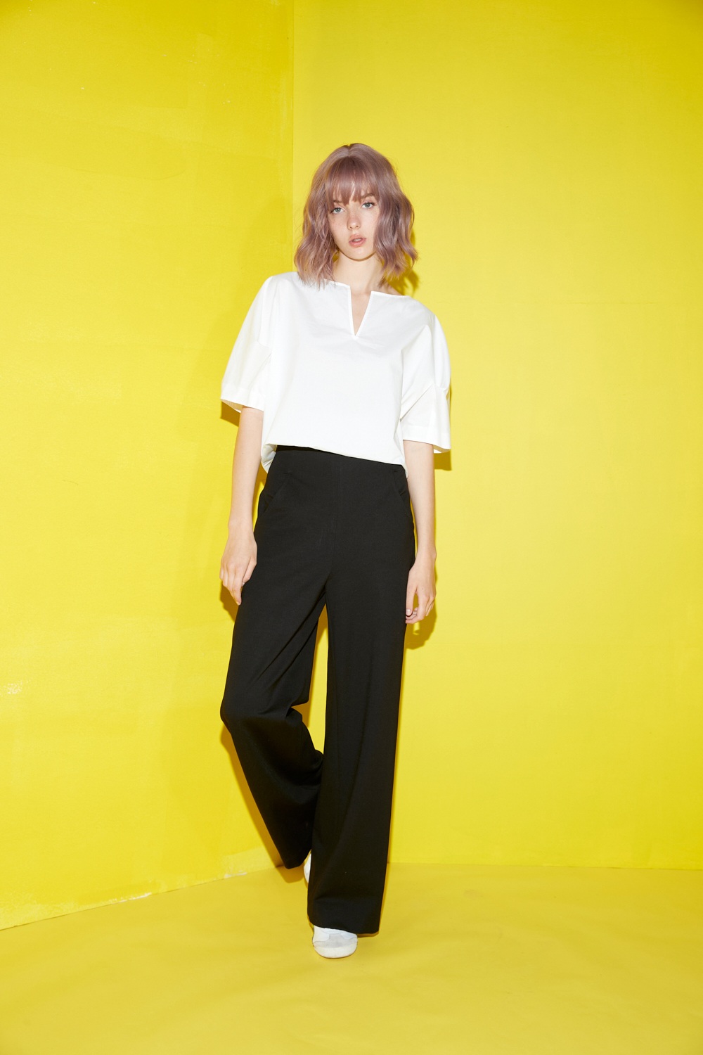 趣漫安謠寬版抓褶立體袖上衣 - 無瑕純白, F
