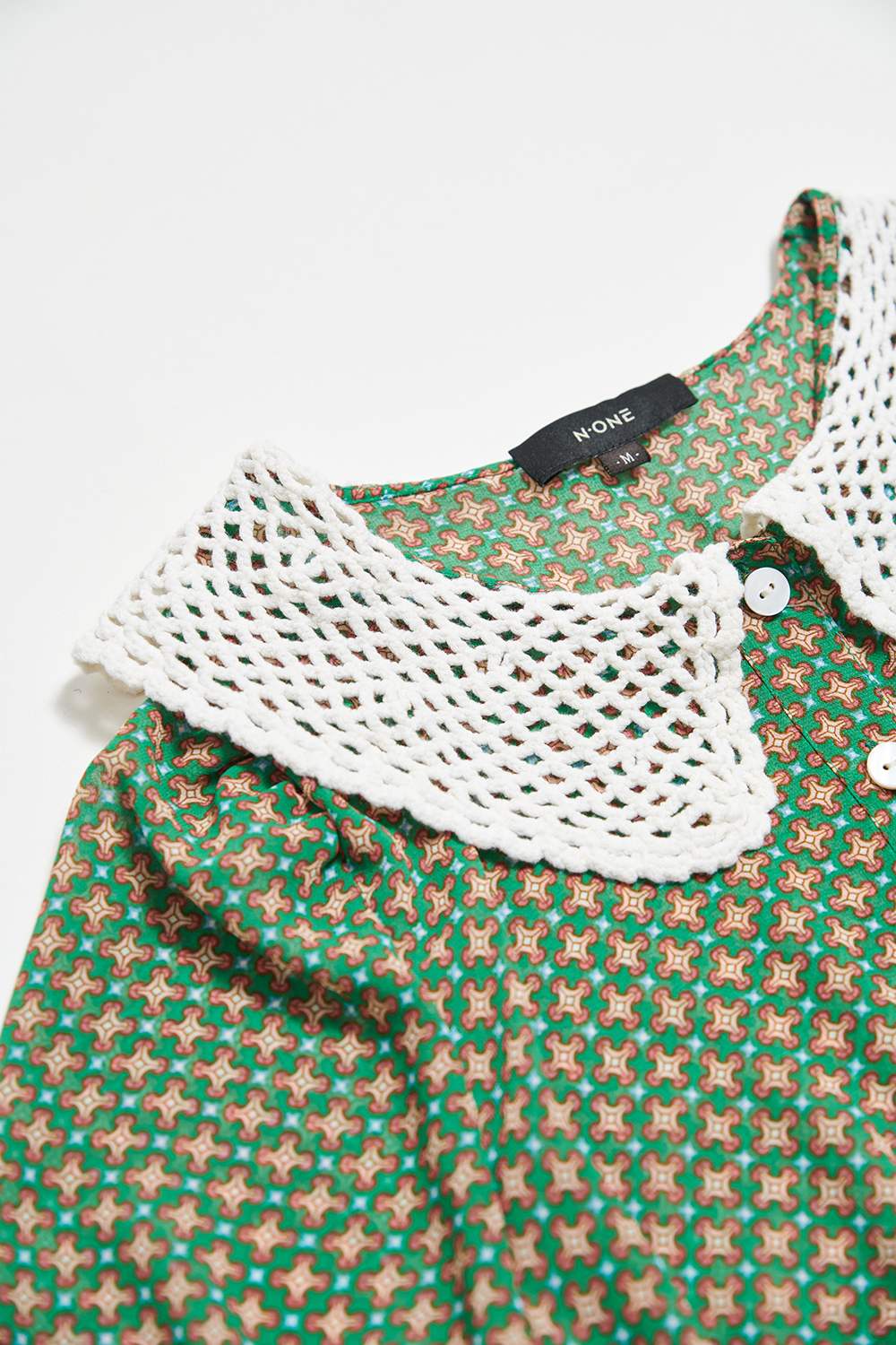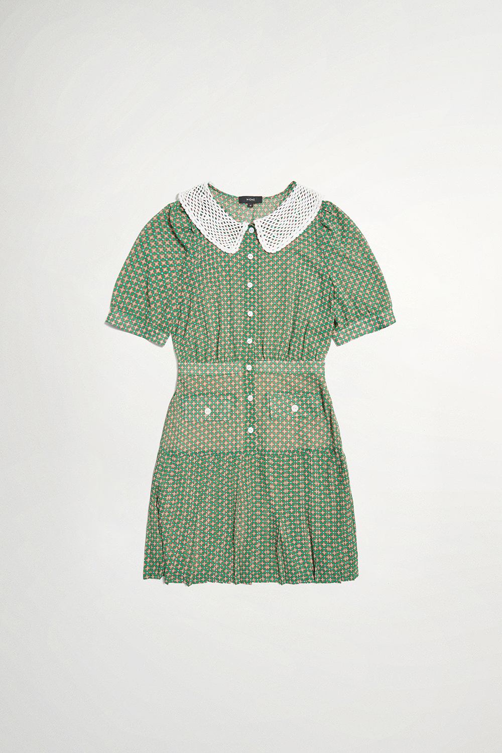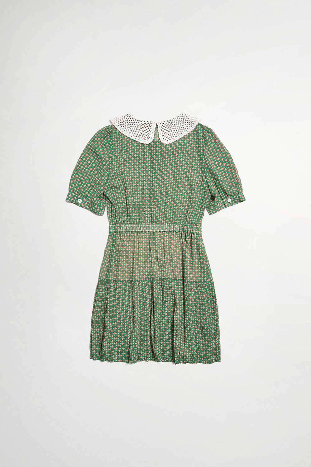 甜美駐守浪漫蕾絲領雪紡洋裝 - 平靜翠綠, S