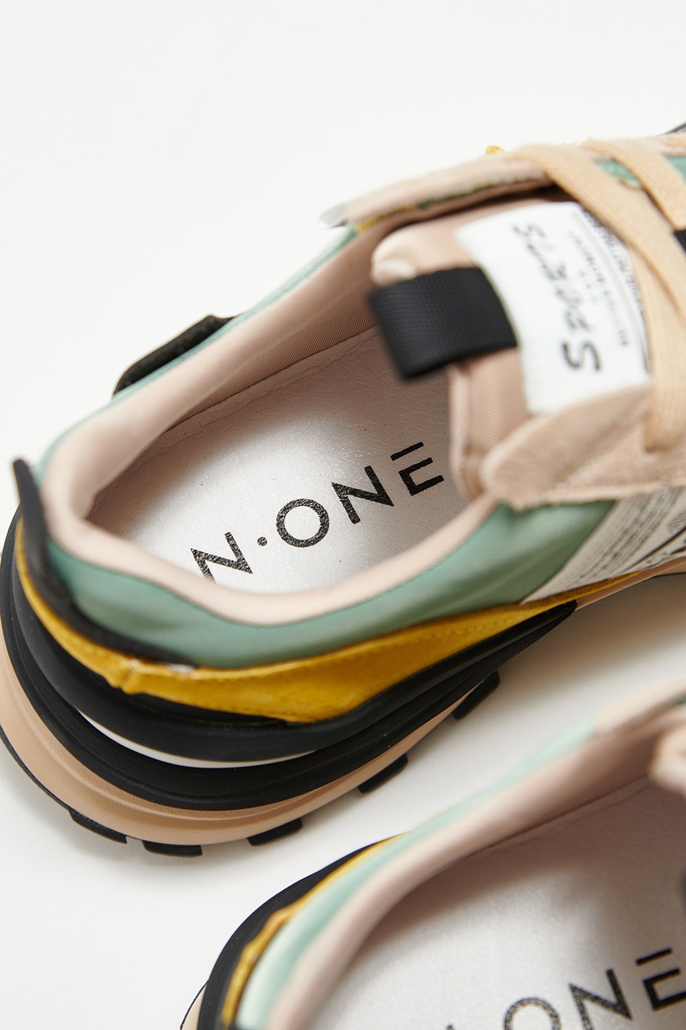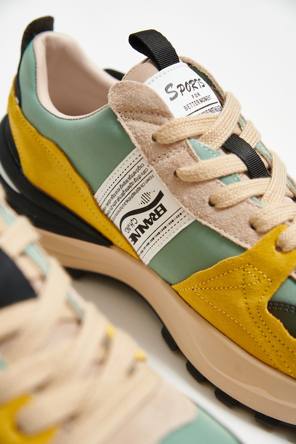從然悠調復古拼色牛皮簡約綁帶運動鞋 - 平靜翠綠, 36