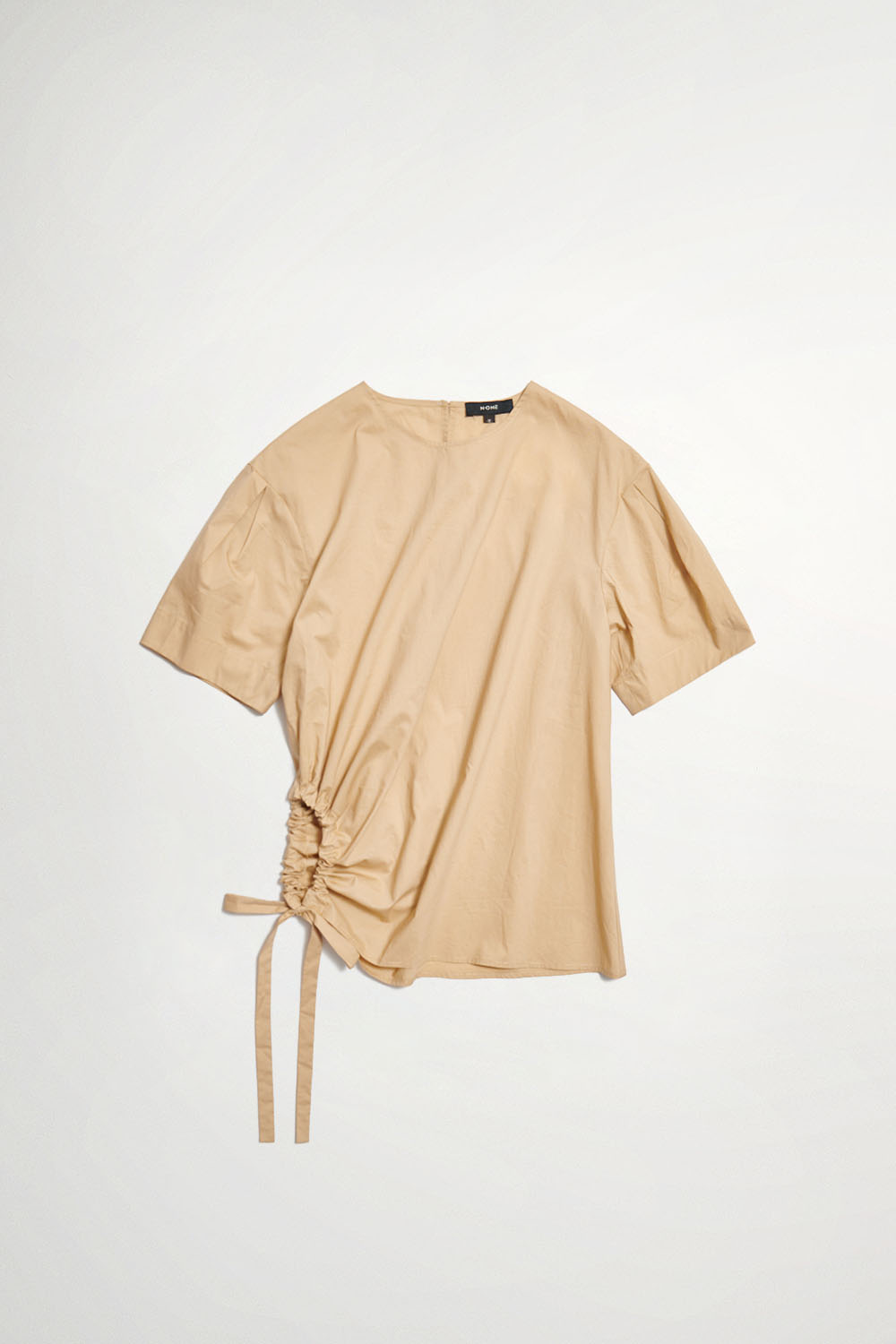 早茶晨醒不規則抽繩寬版上衣 - 可可卡其, S