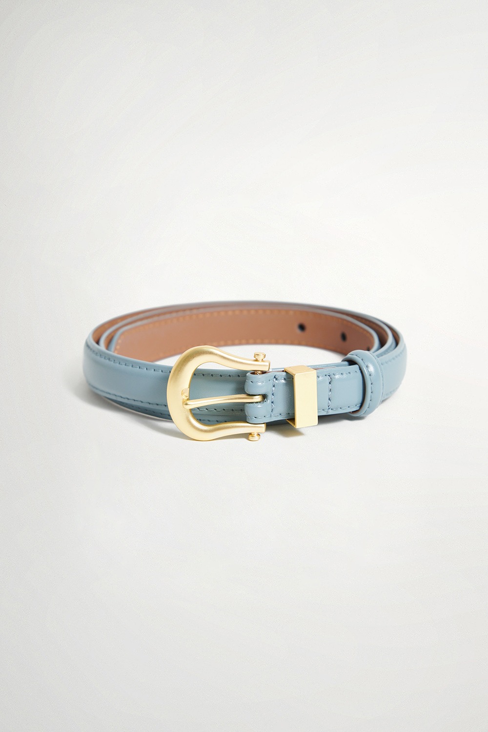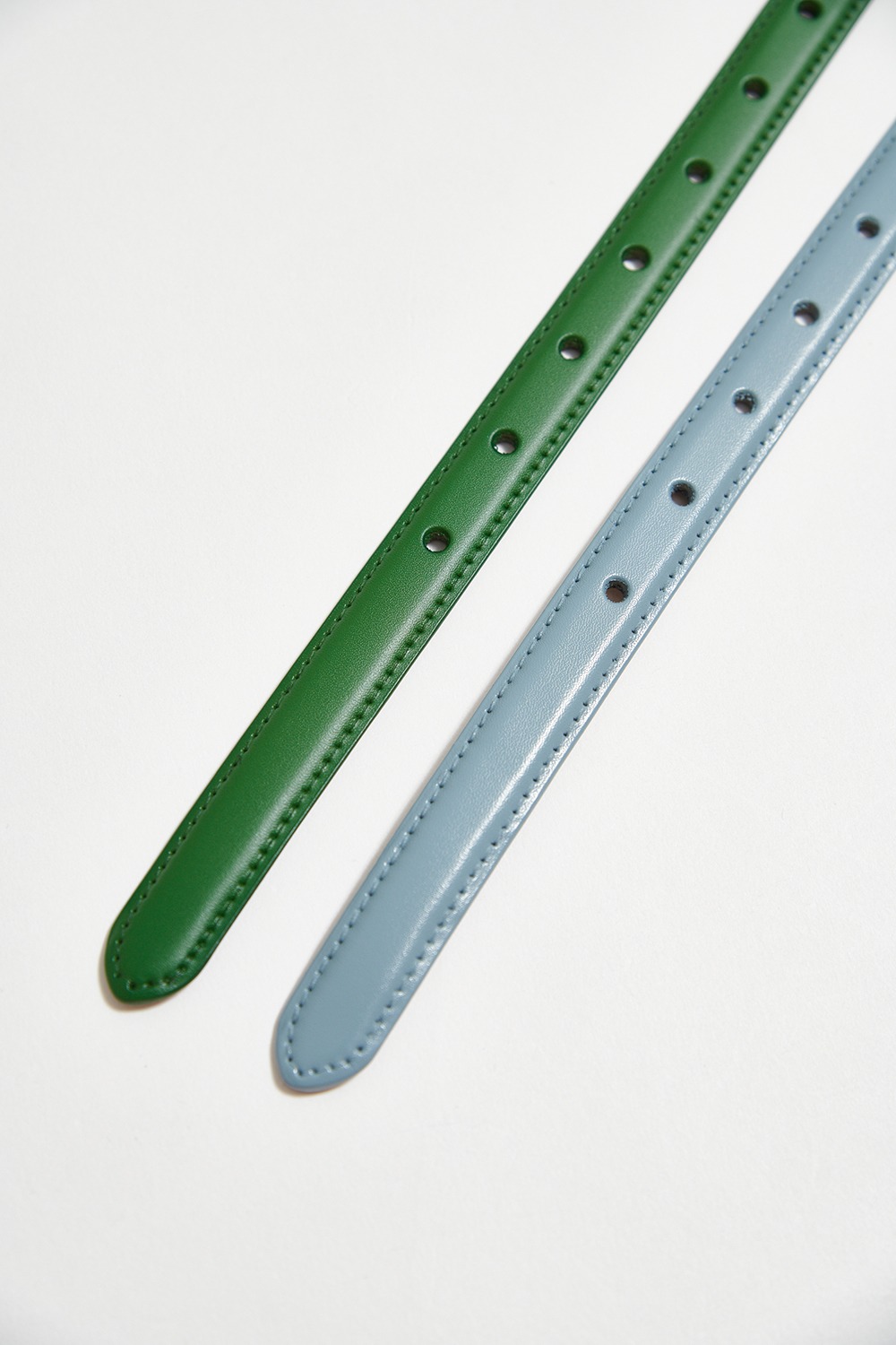初照時光金屬釦飾牛皮細皮帶 - 平靜翠綠, F