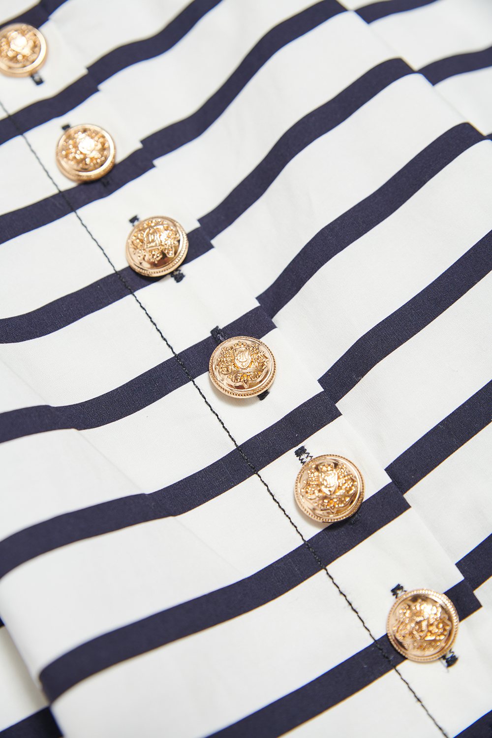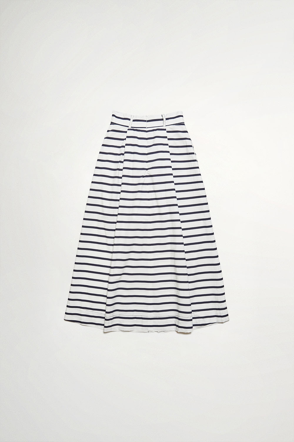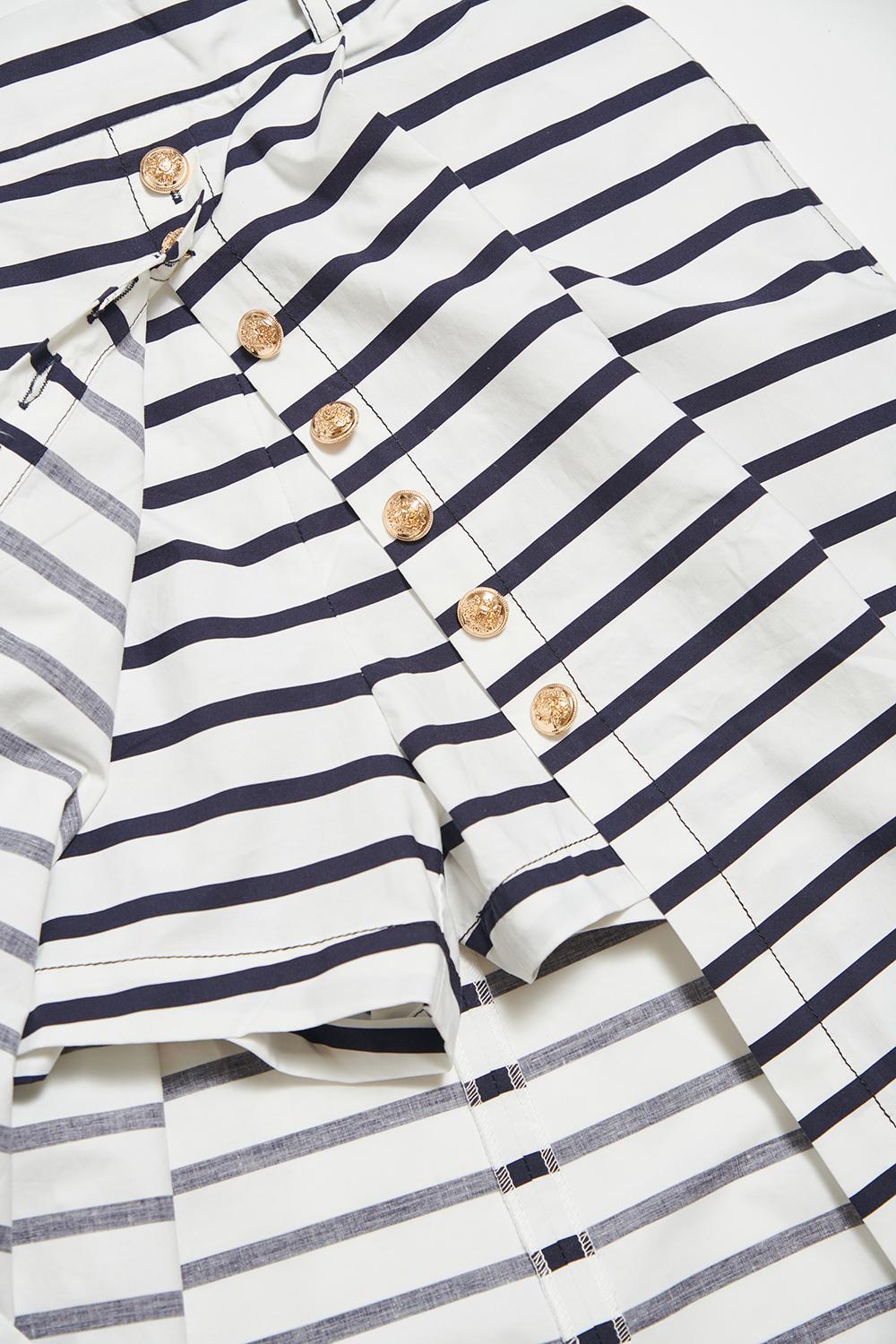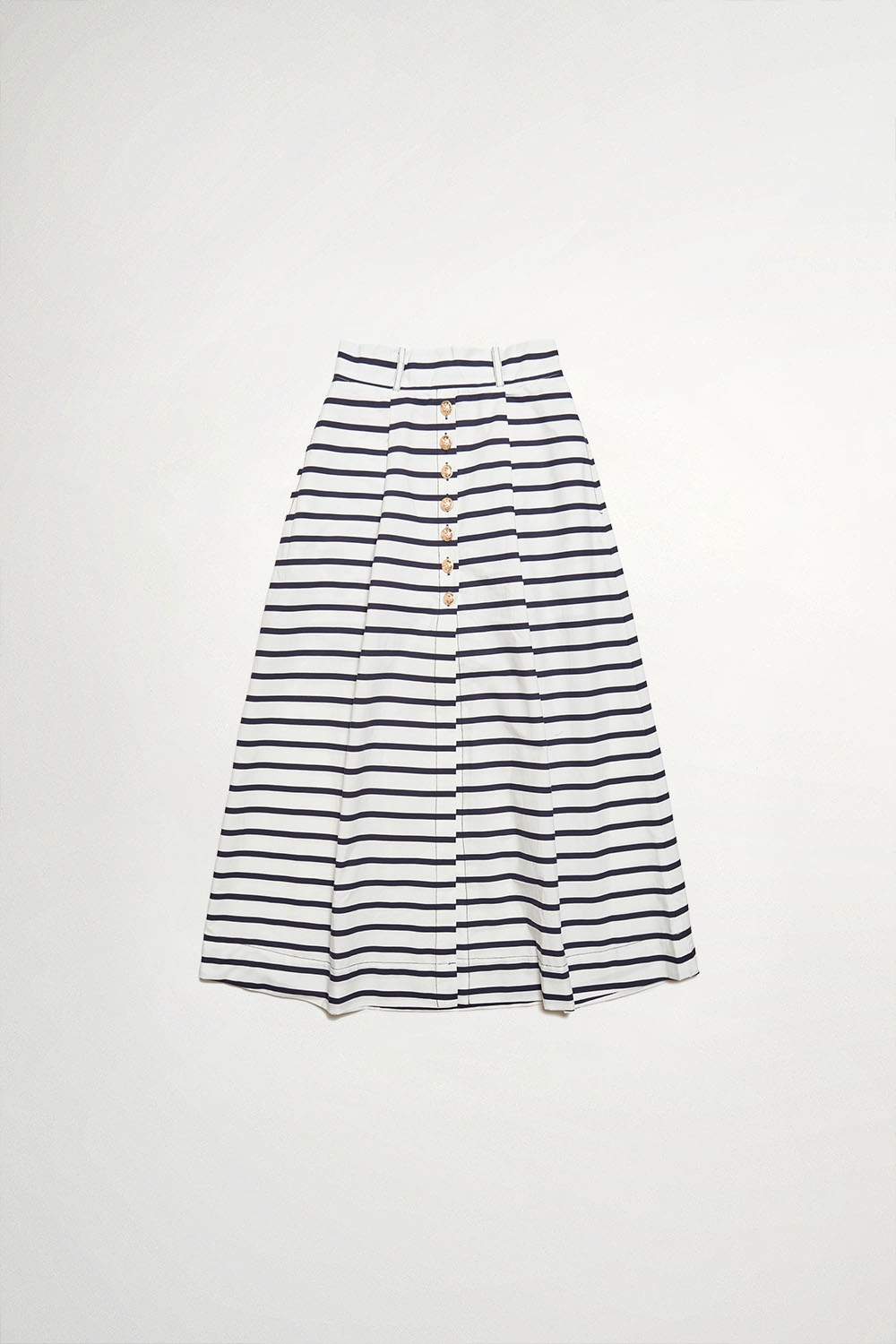 漫間小徑法式修身排釦高腰寬襬長裙 - 無瑕純白, 36