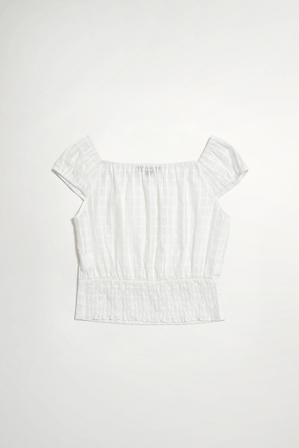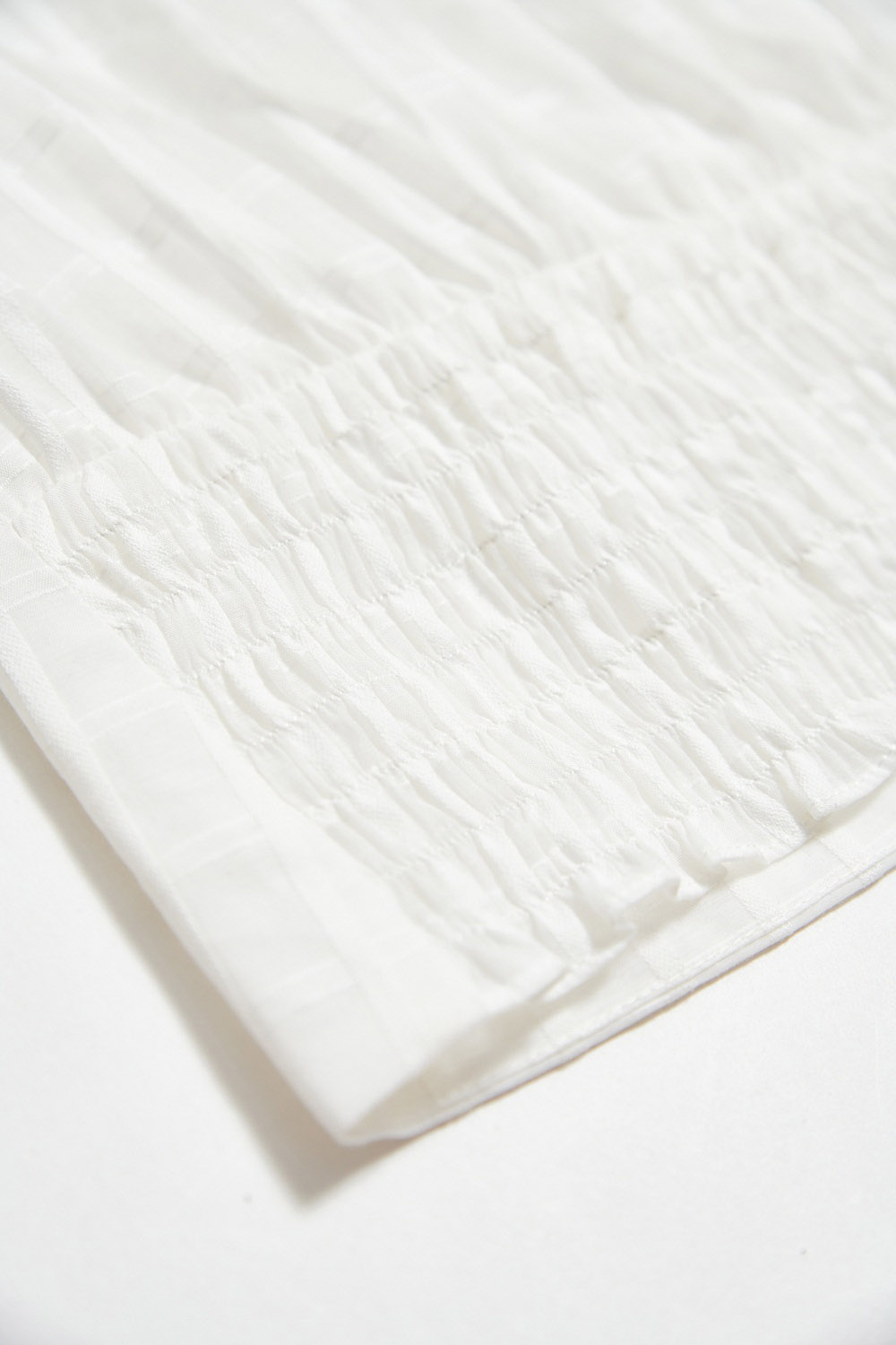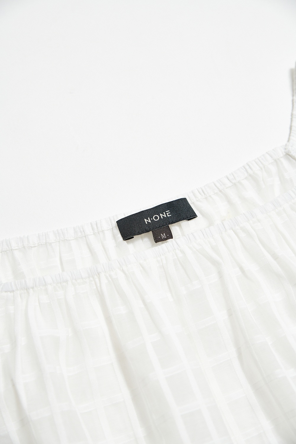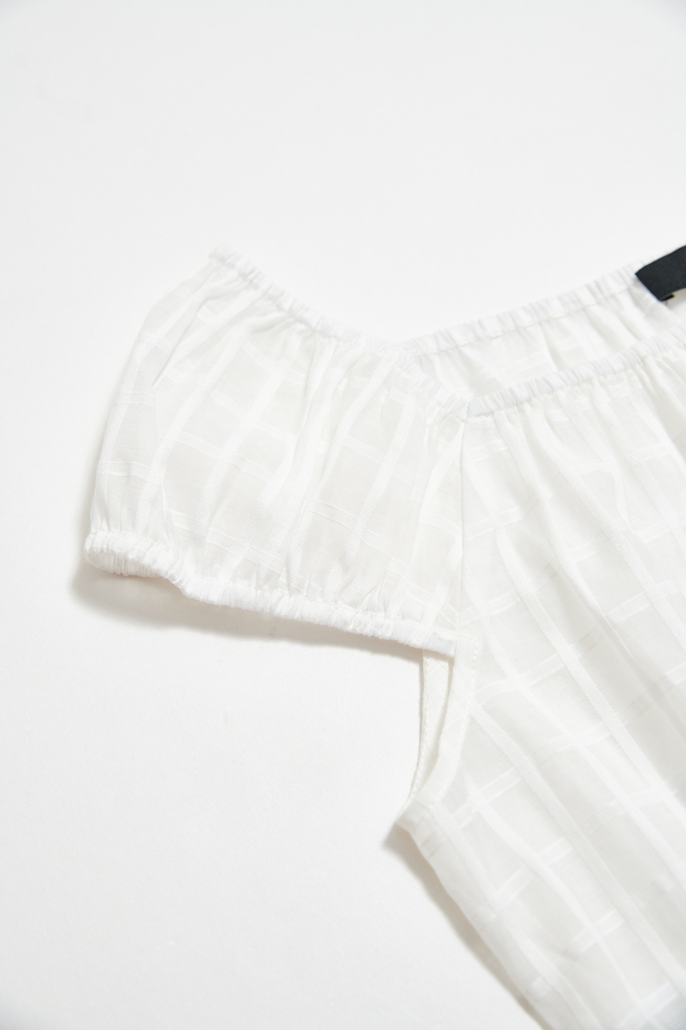 緩柔迷想方領蓬袖收腰格紋短版上衣 - 無瑕純白, 38