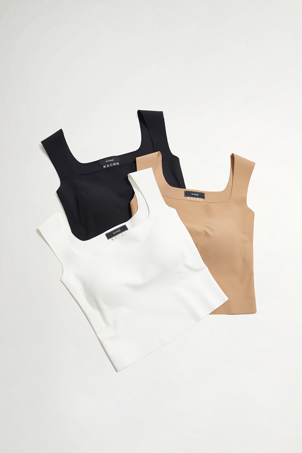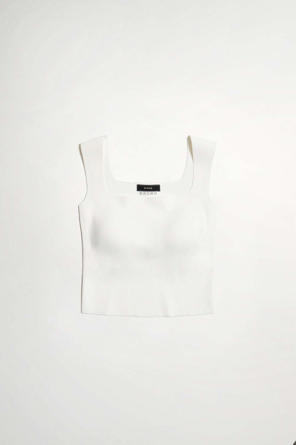 軟日晨禱方領合身肩帶背心 - 無瑕純白, F