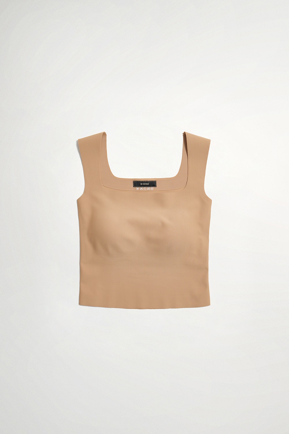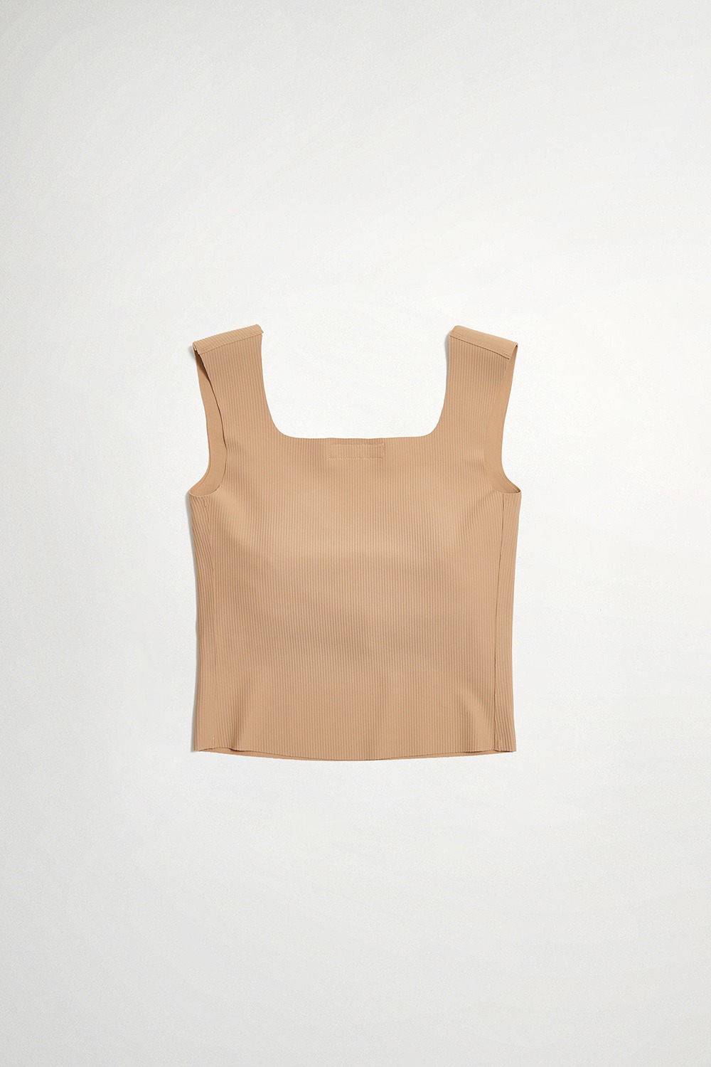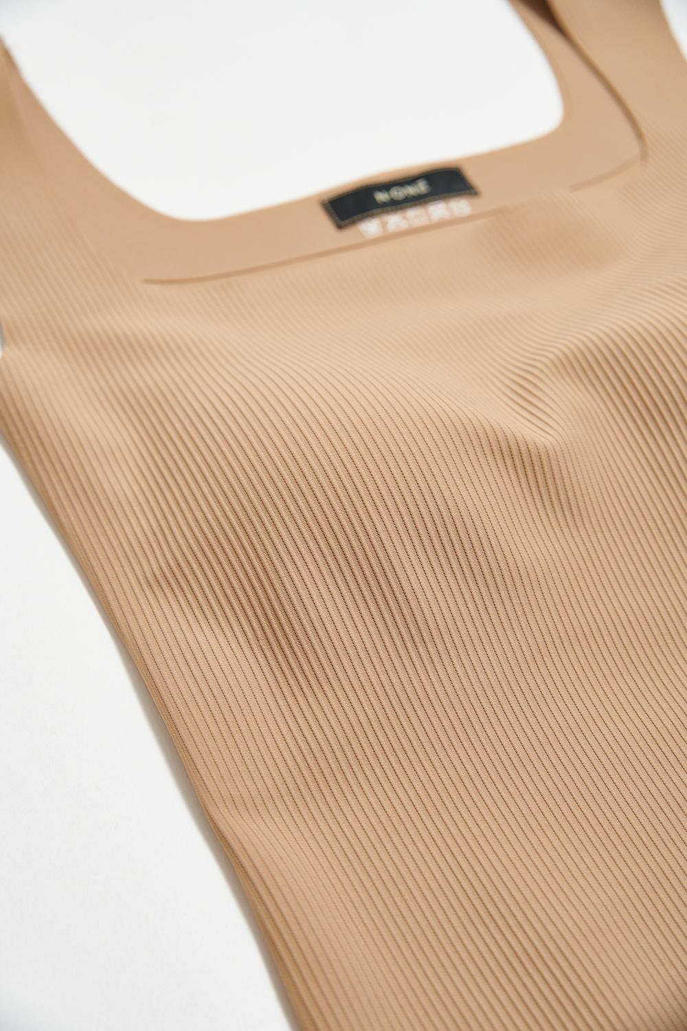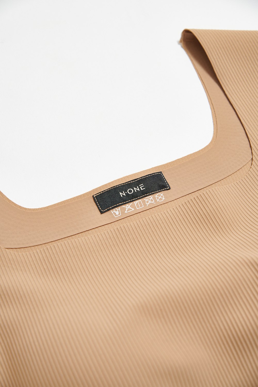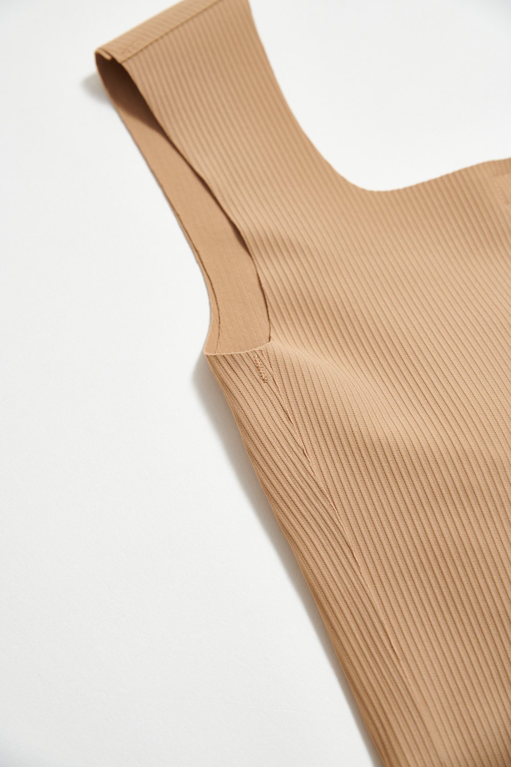 軟日晨禱方領合身肩帶背心 - 可可卡其, F