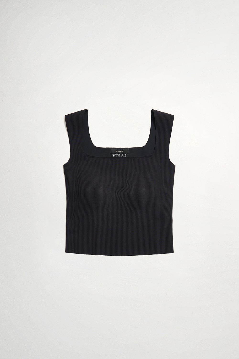 軟日晨禱方領合身肩帶背心 - 神祕純黑, F