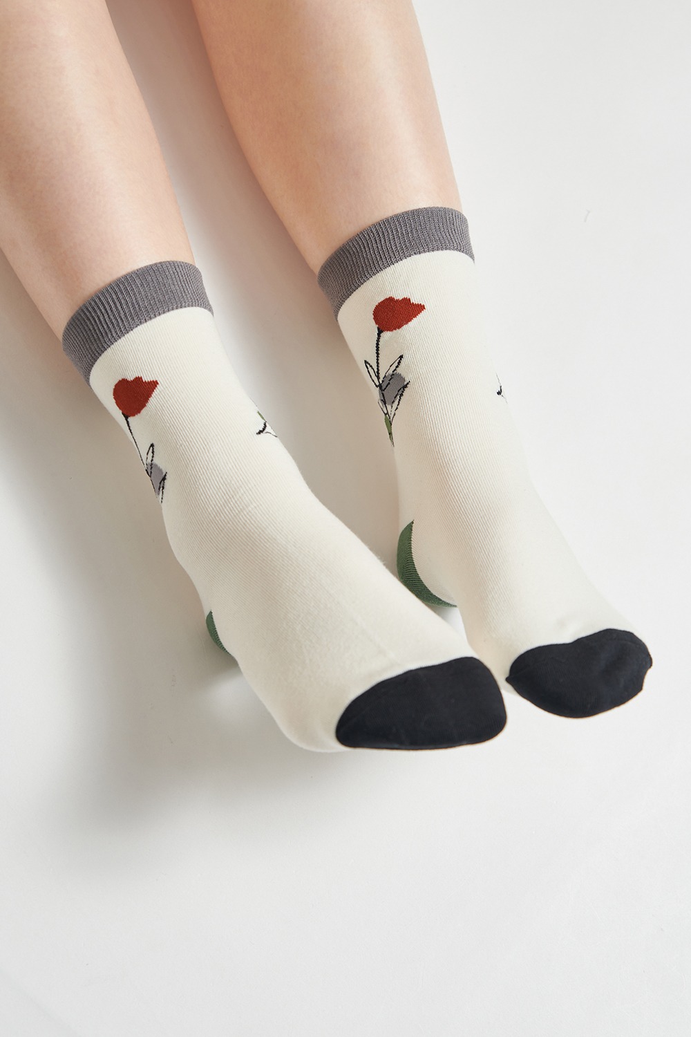 一朵紅花•中筒襪_F - 無瑕純白, F