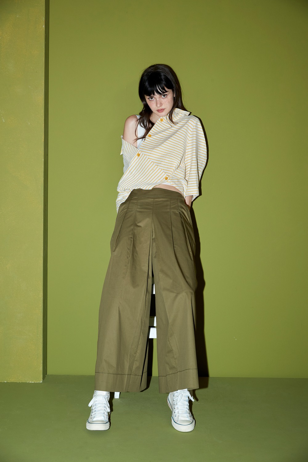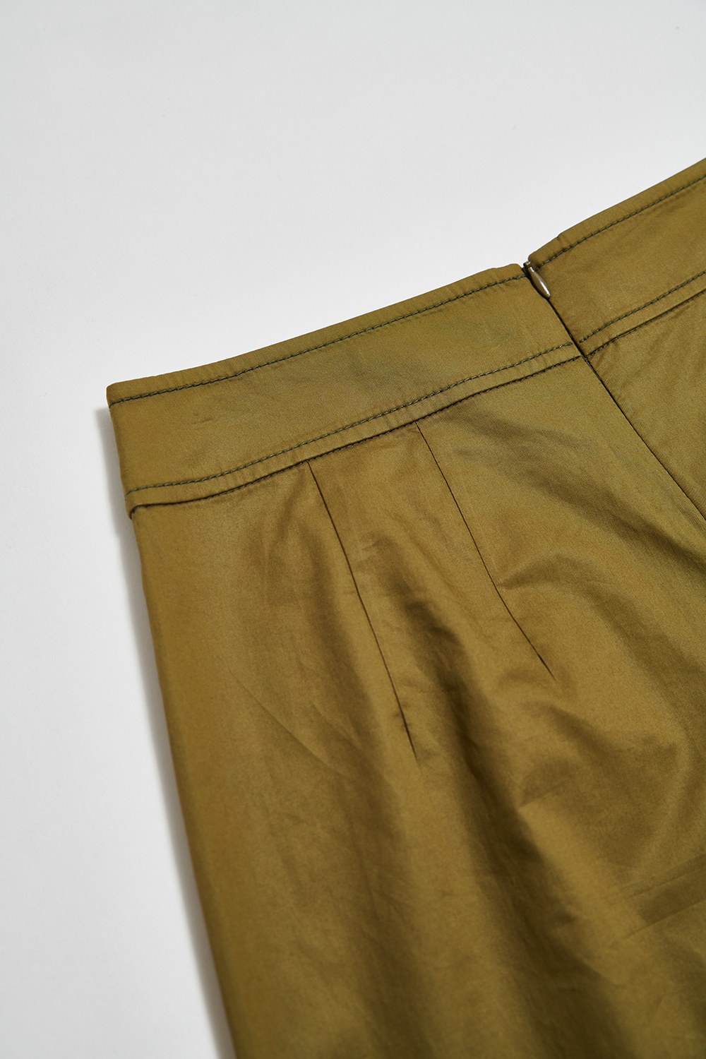 📌 百褶漫起千言萬語,可以用卡其色調的上衣與軍綠做搭配,呈現出如小男孩般的恣意,再穿上充滿份量感的切爾西靴,將一切美的元素都烘托而出。