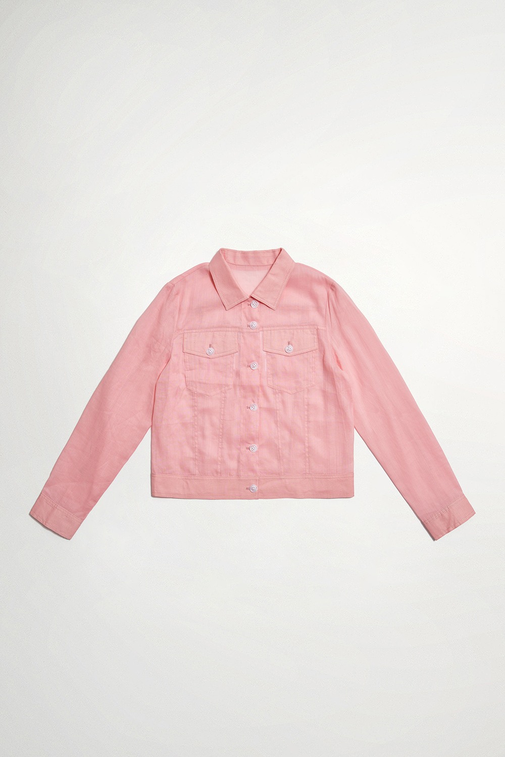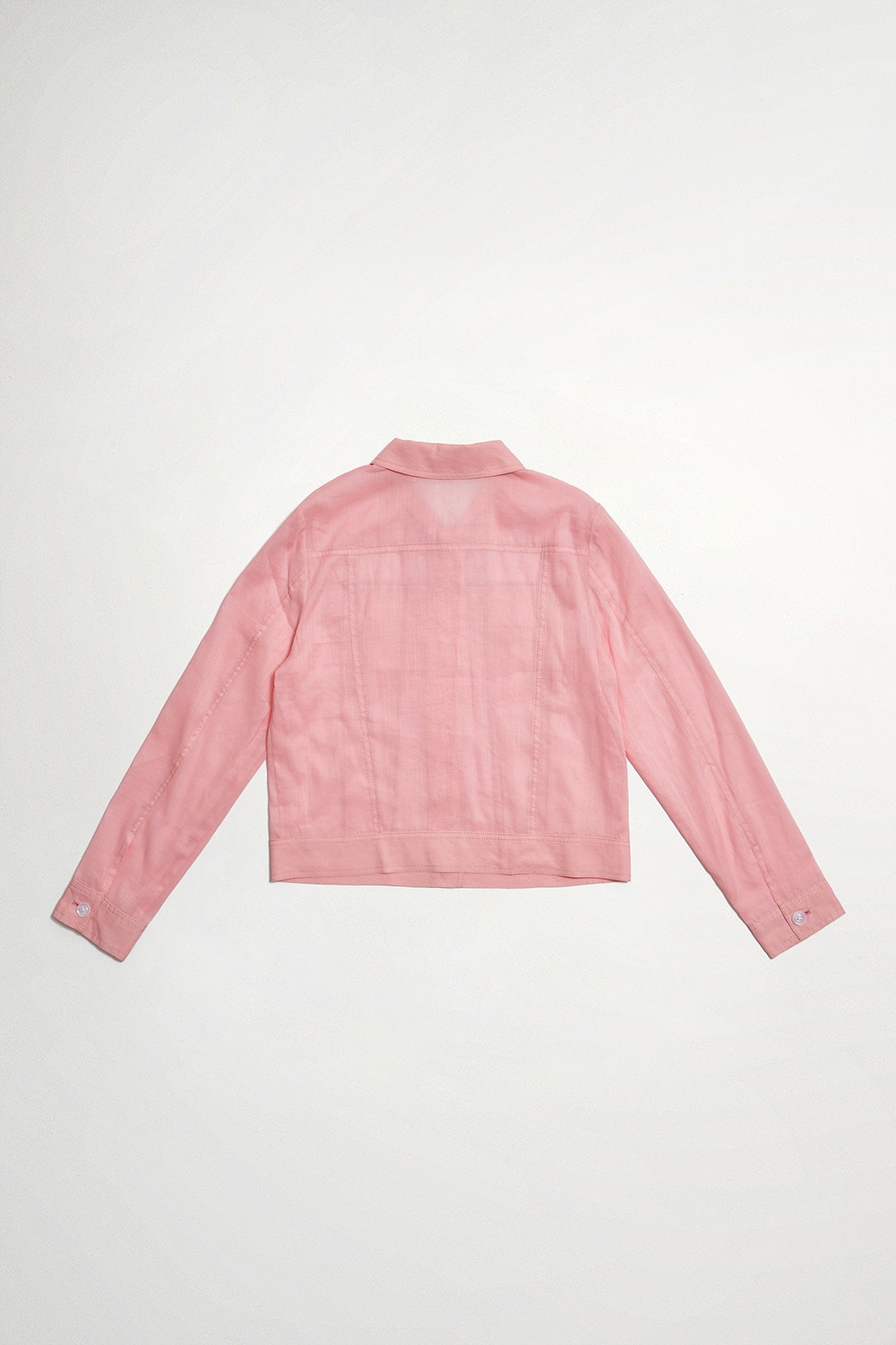 美尋返光透感襯衫排釦短版外套 - 微施粉澤, 38