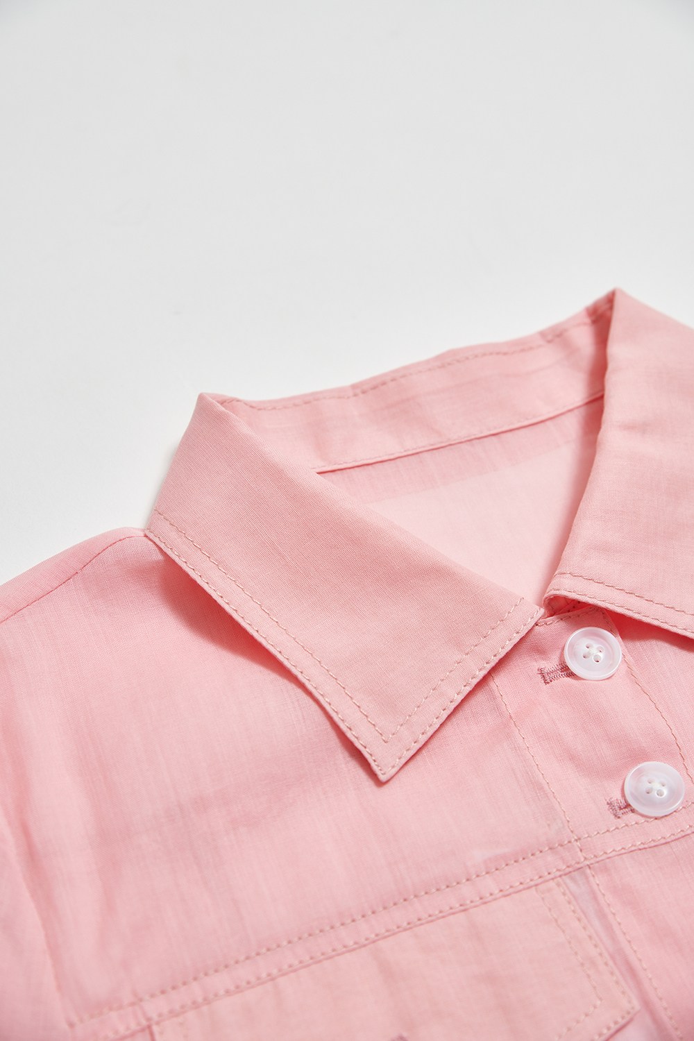 美尋返光透感襯衫排釦短版外套 - 微施粉澤, 36