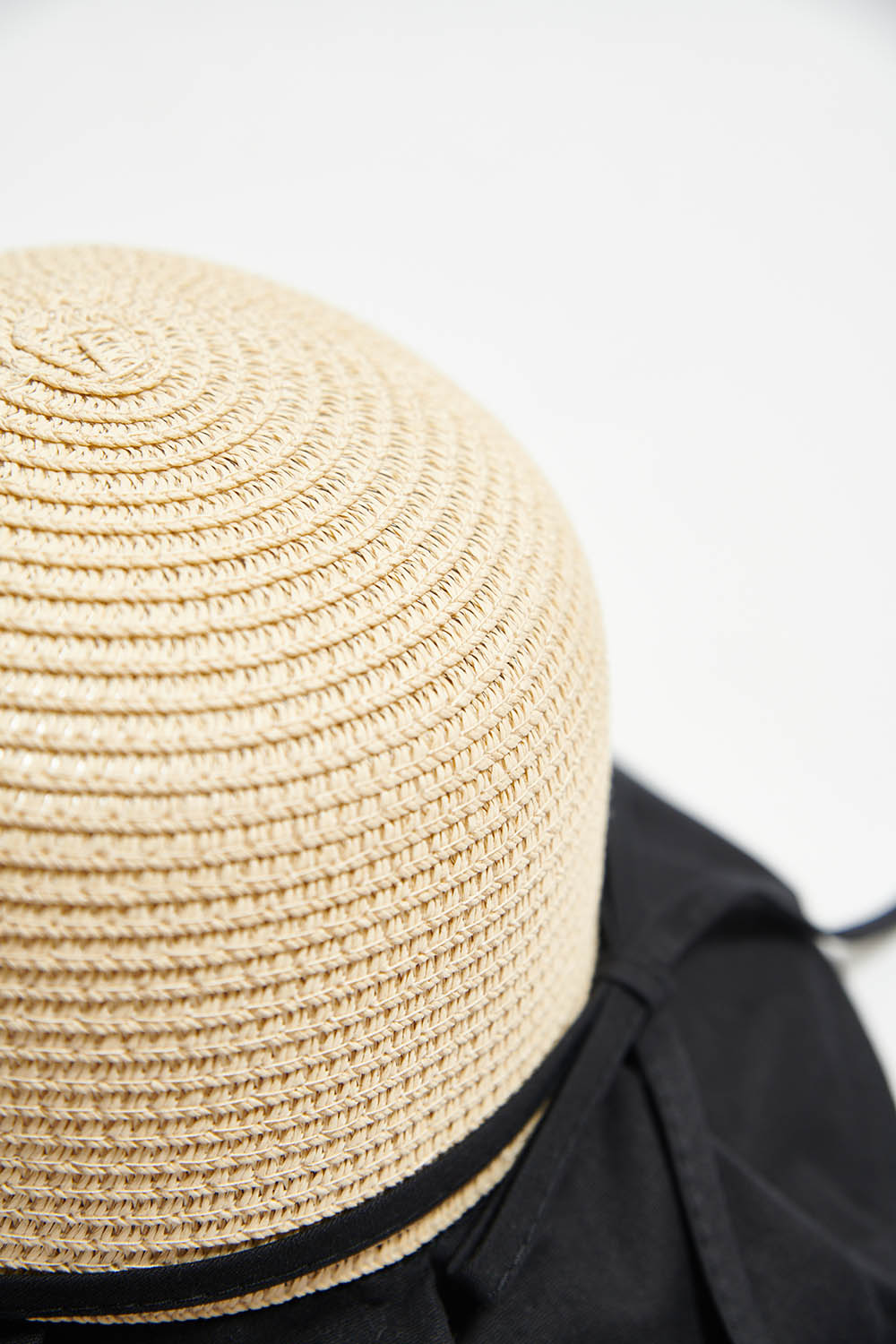 法式恬想綁帶拼接編織寬圓帽 - 可可卡其, F