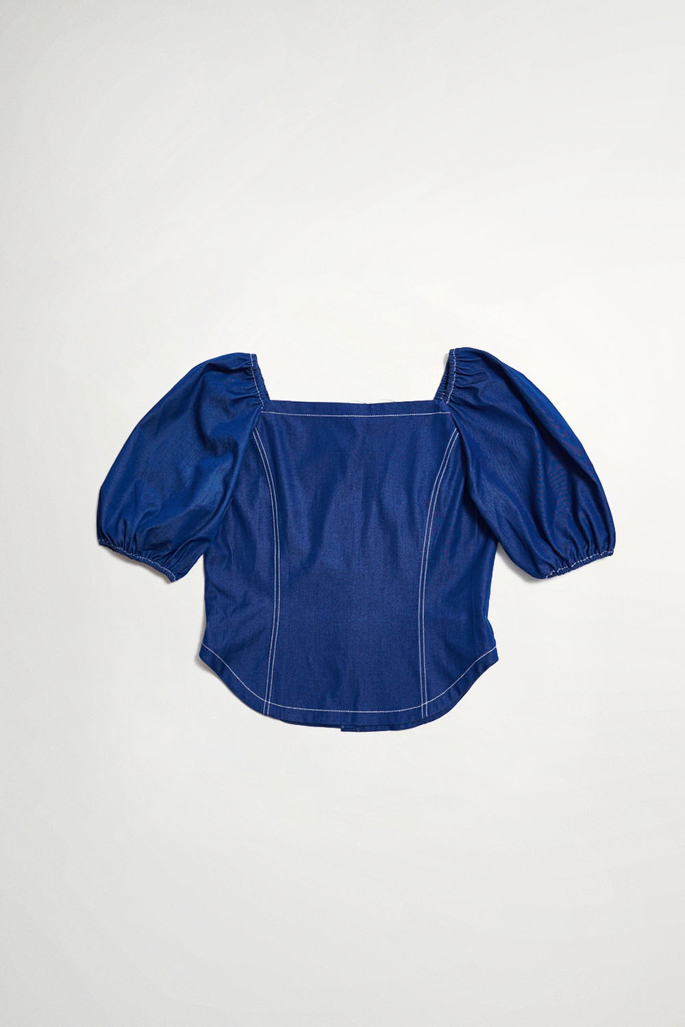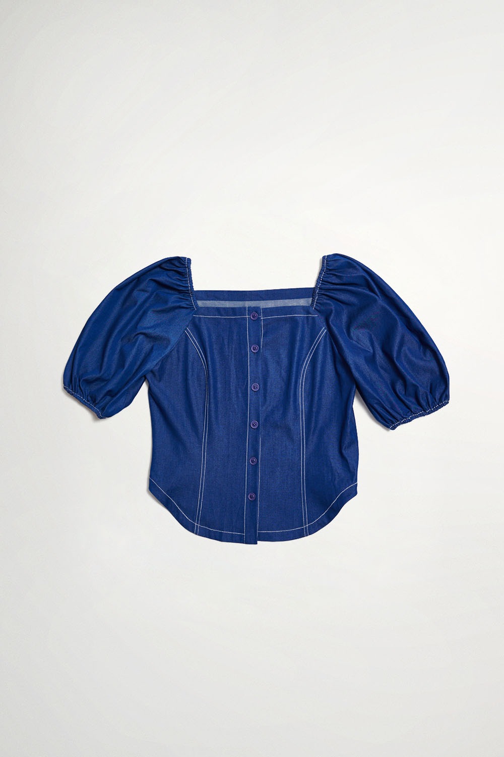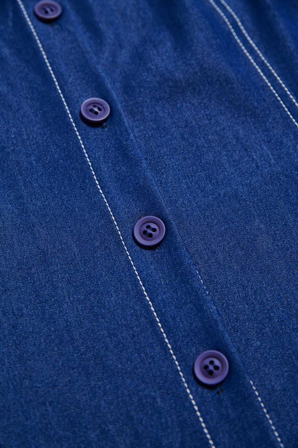 循向柔昕方領排釦天絲牛仔上衣 - 寧靜黛藍, 36