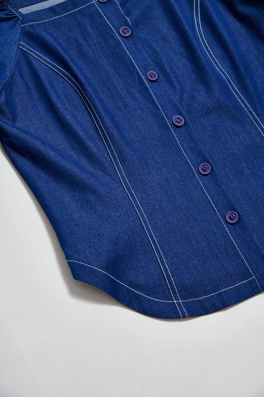 循向柔昕方領排釦天絲牛仔上衣 - 寧靜黛藍, 38