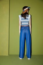 惦美緩想條紋針織荷葉袖合身上衣 - 無瑕純白, 40