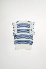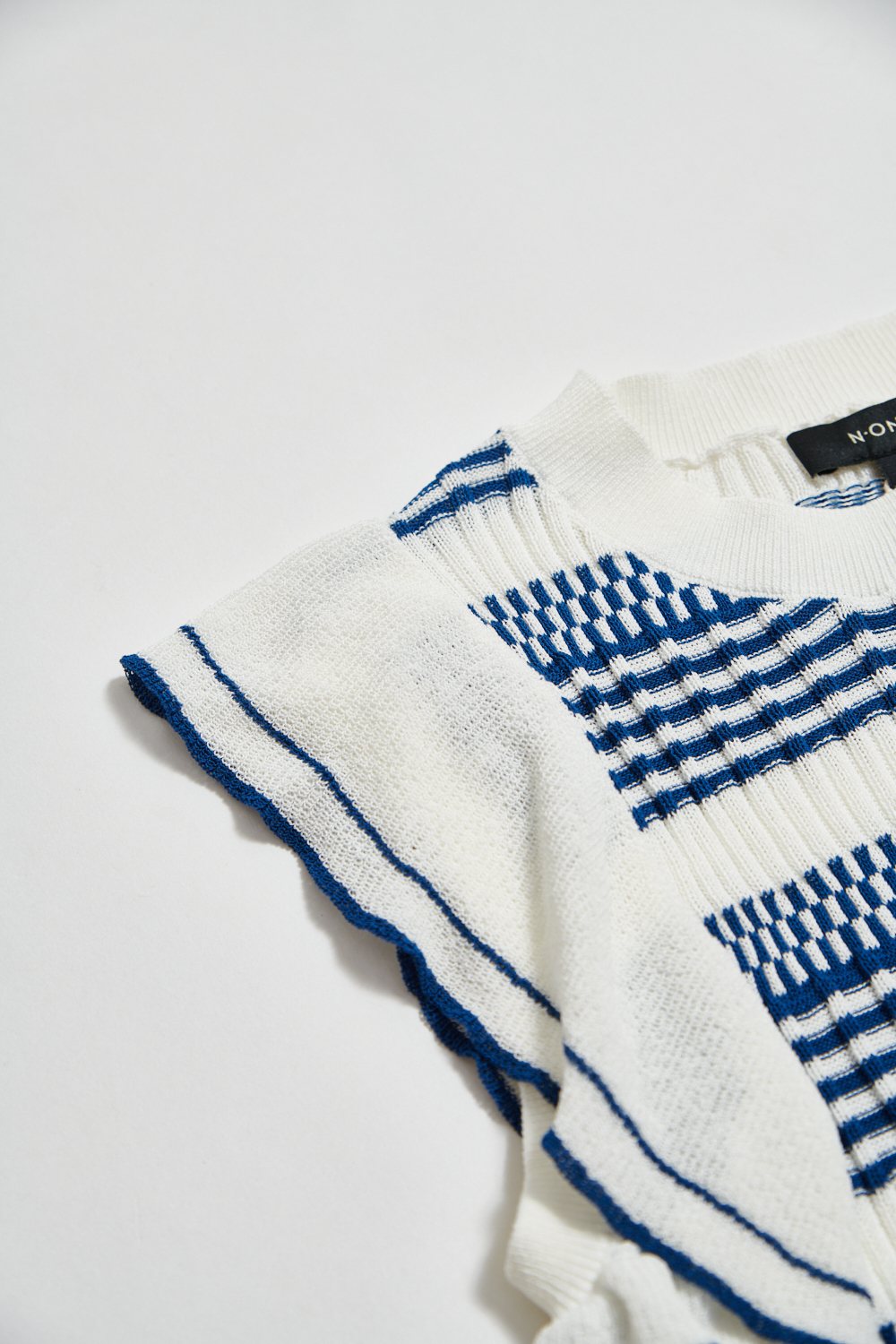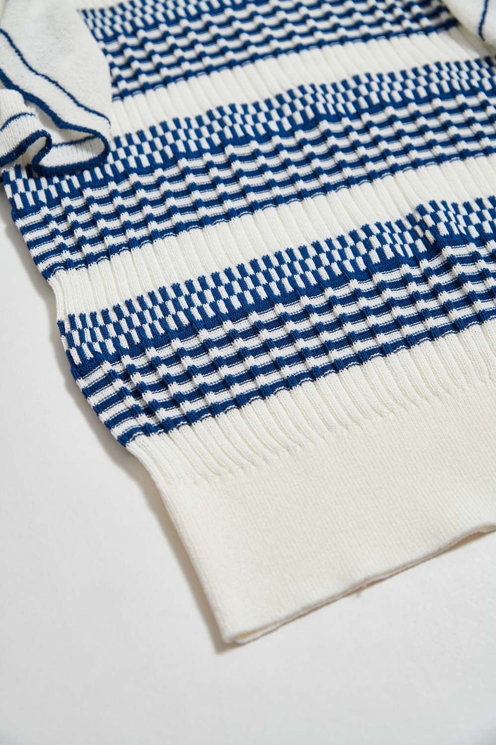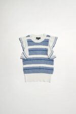 惦美緩想條紋針織荷葉袖合身上衣 - 無瑕純白, 38