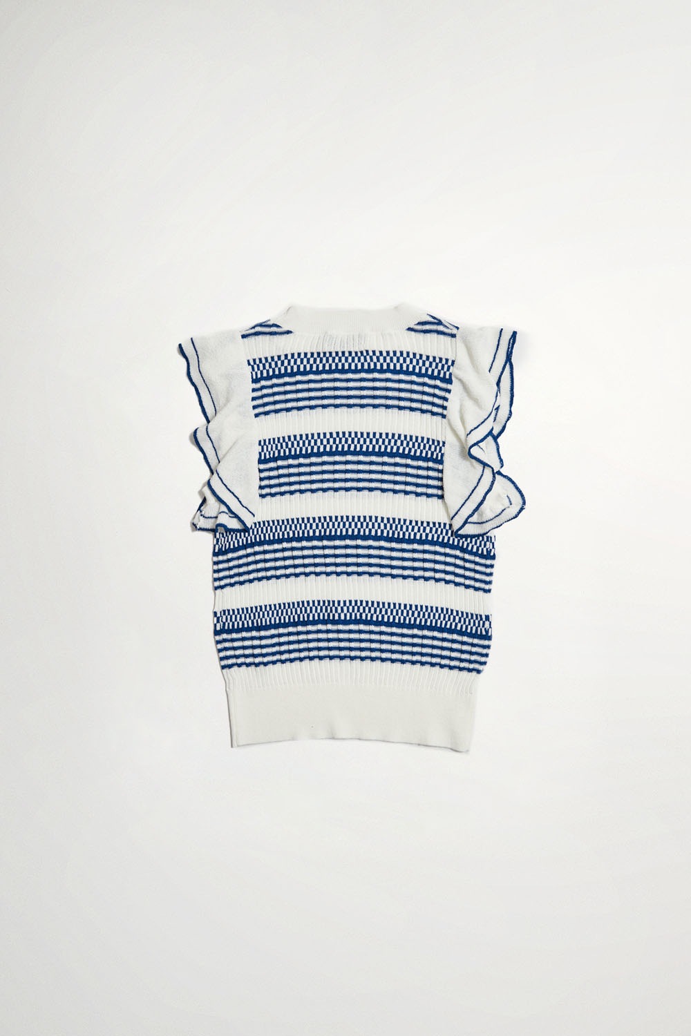 惦美緩想條紋針織荷葉袖合身上衣 - 無瑕純白, 36