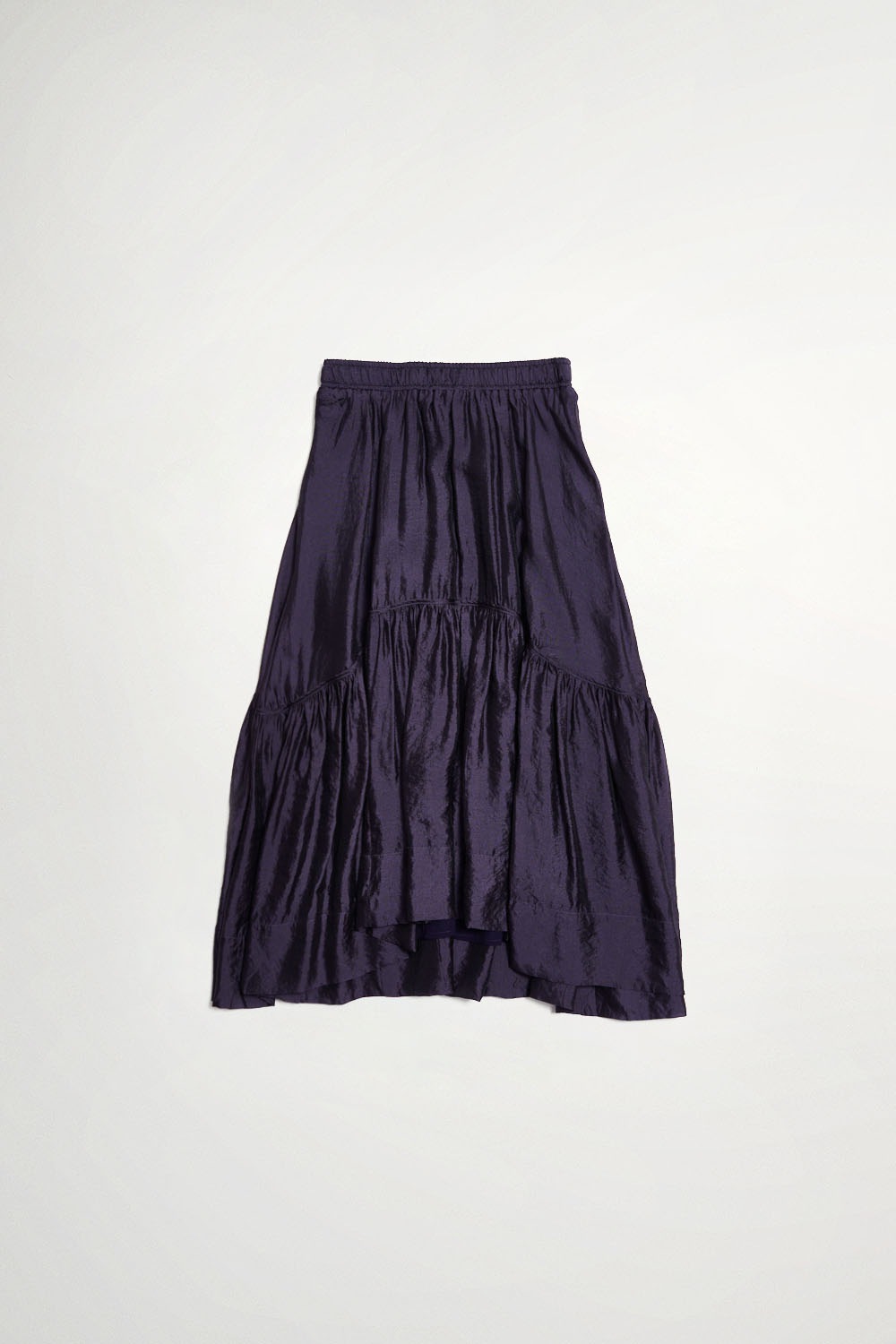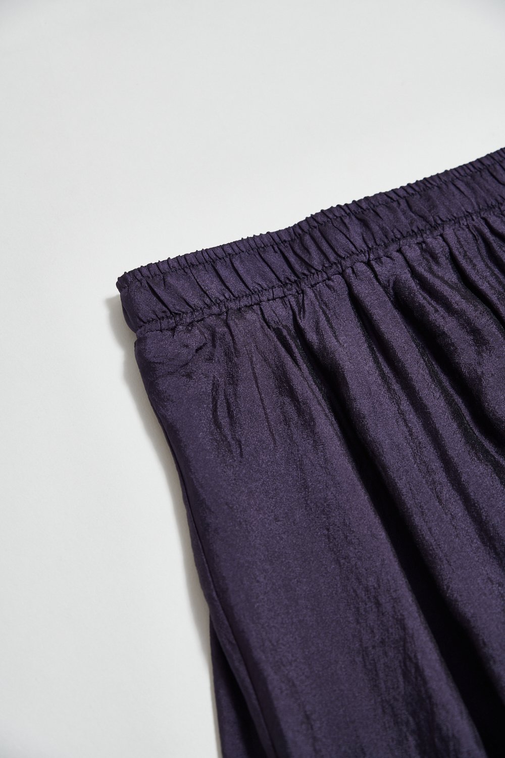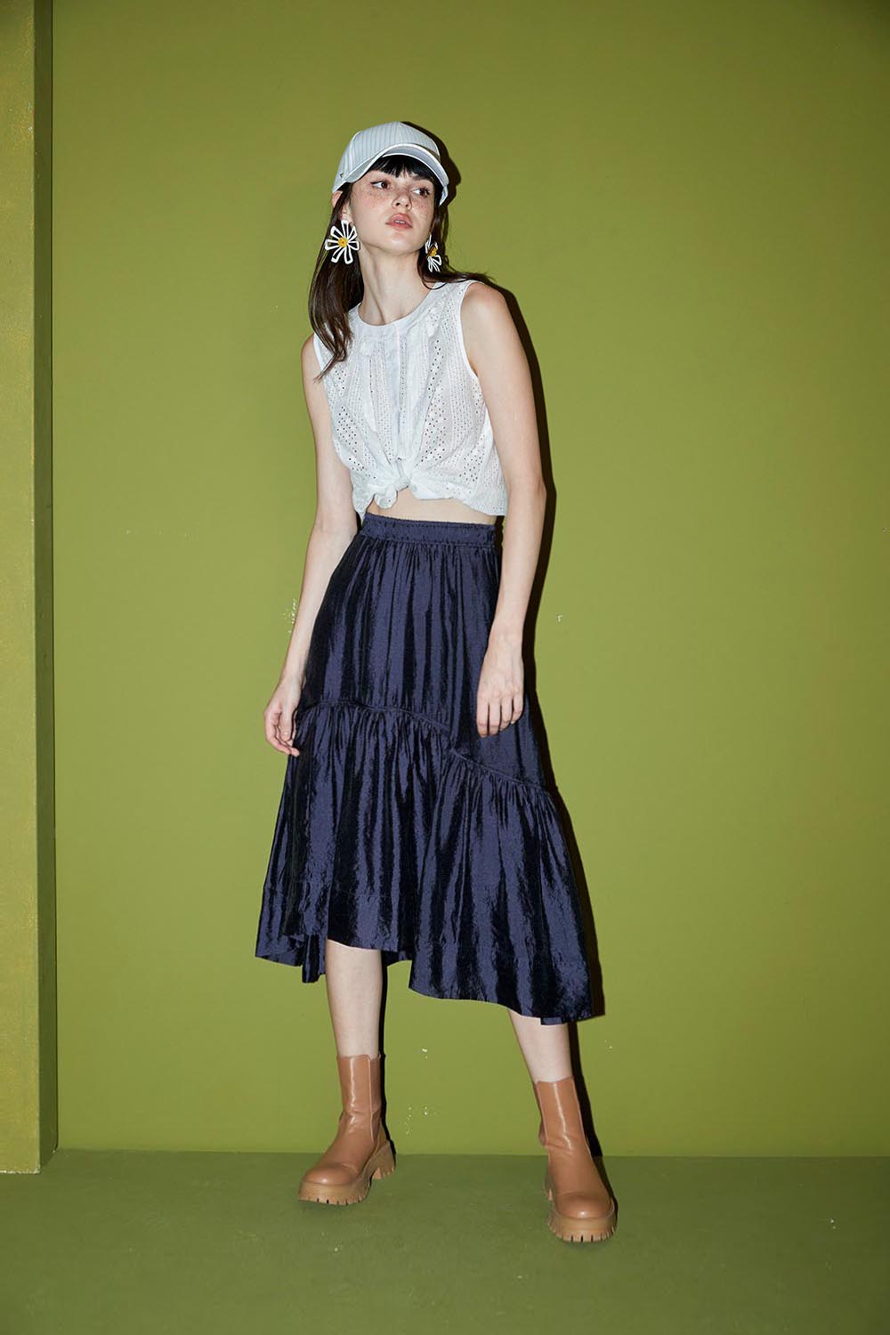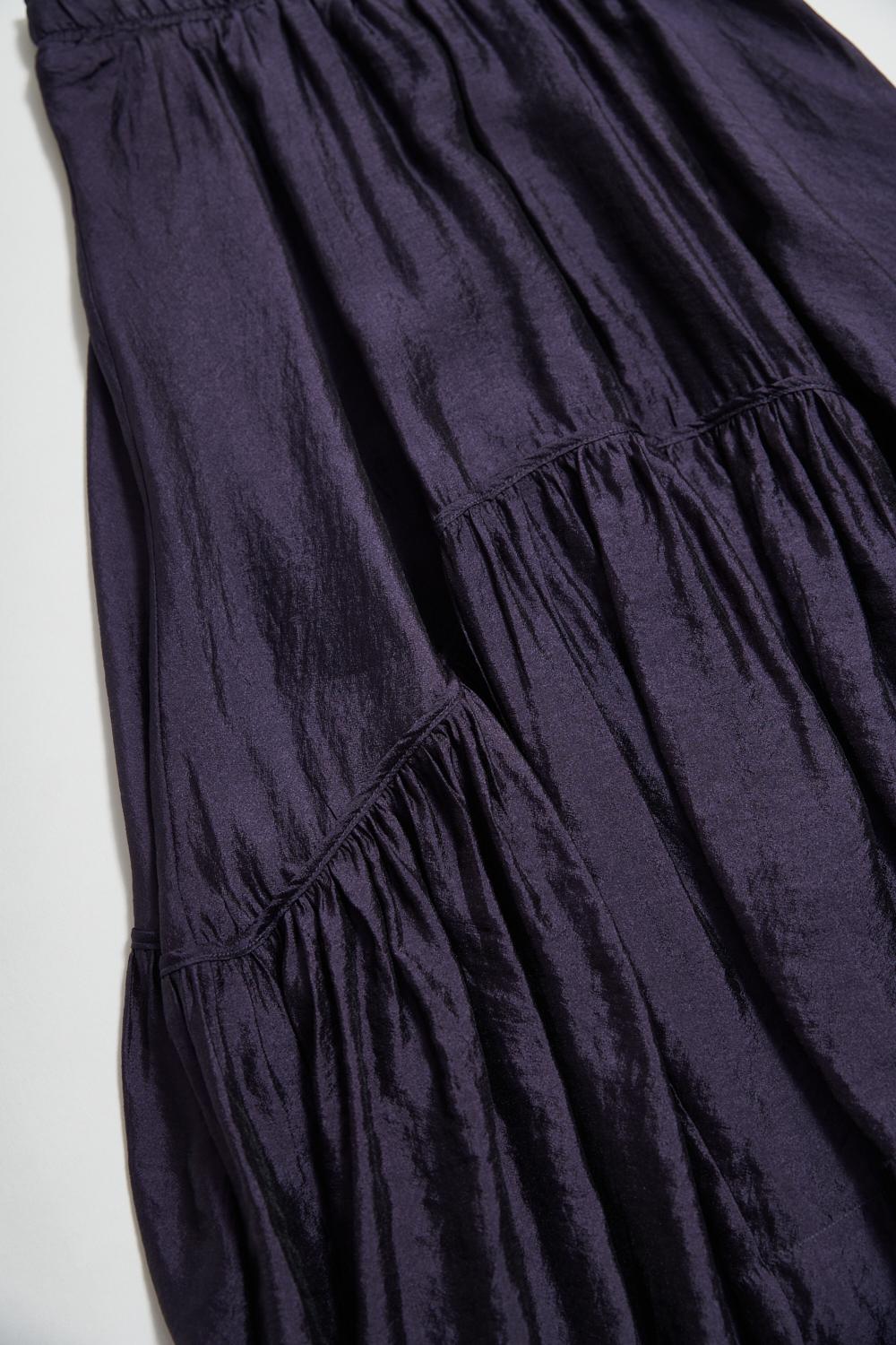 緻想迷與不規則鬆緊細褶長裙 - 深邃藏藍, F
