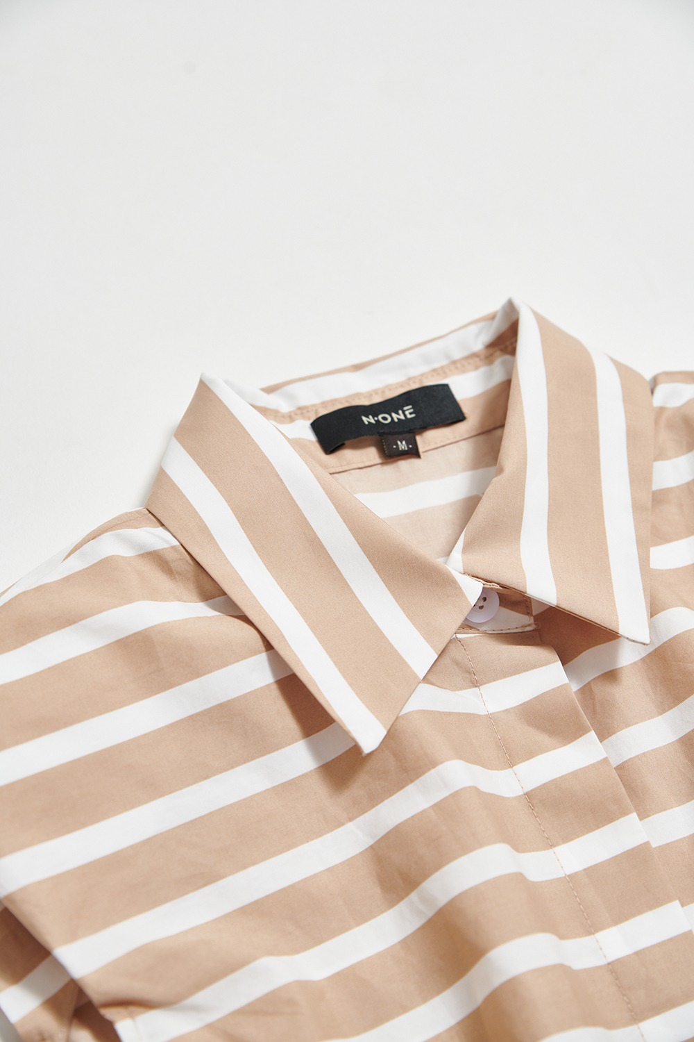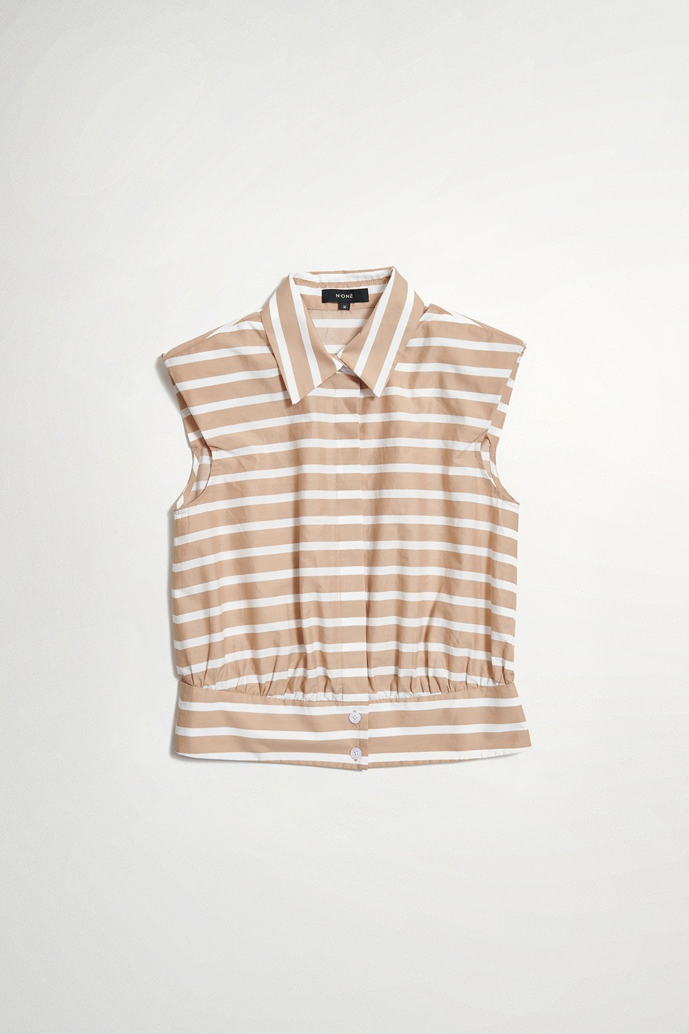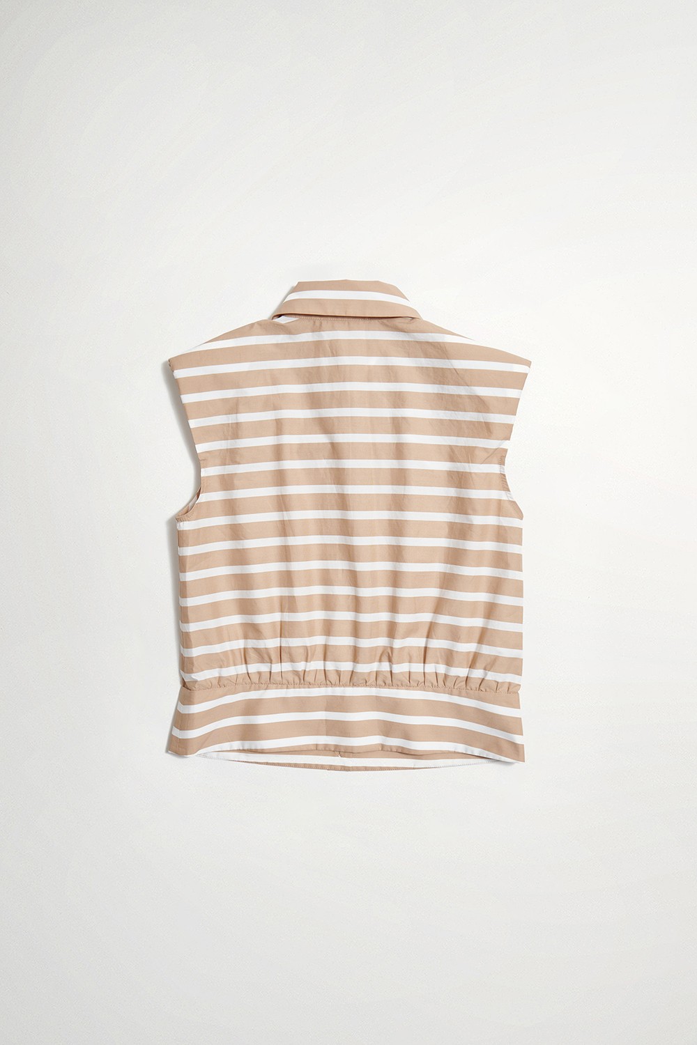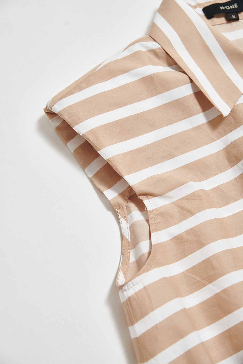 伴仰褐光條紋翻領隱藏釦墊肩背心 - 可可卡其, 36