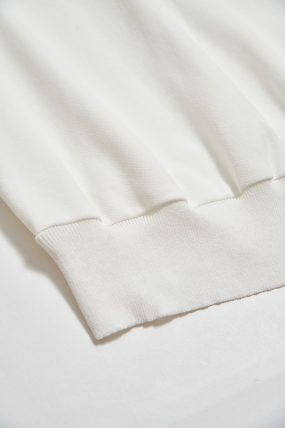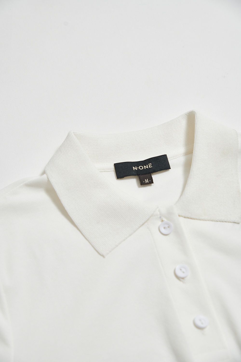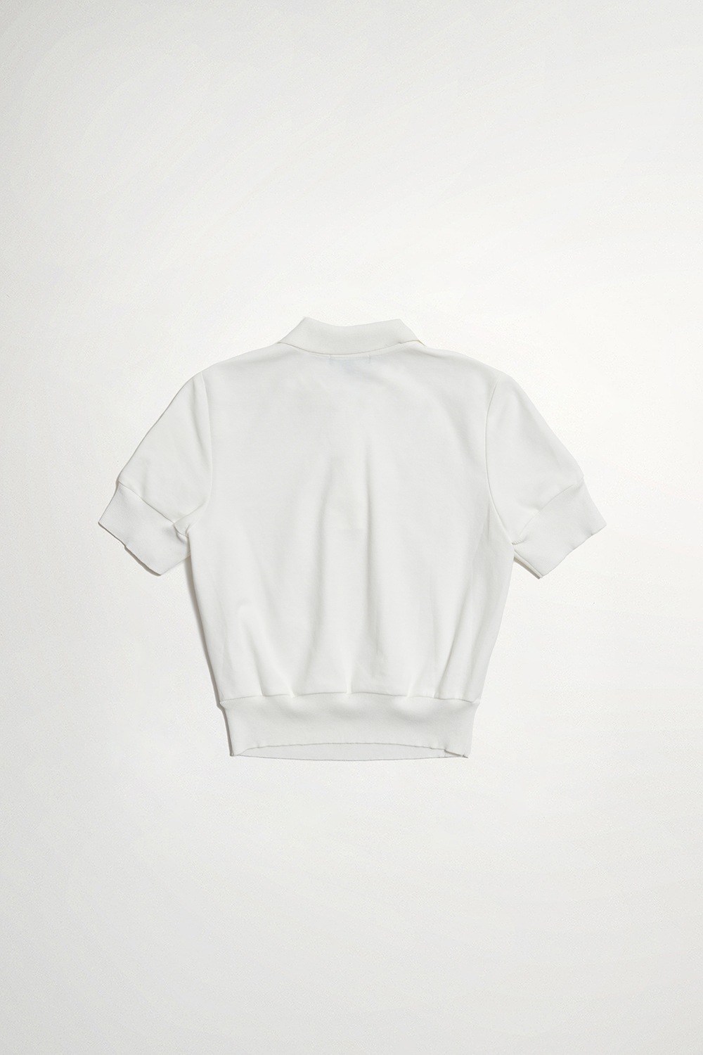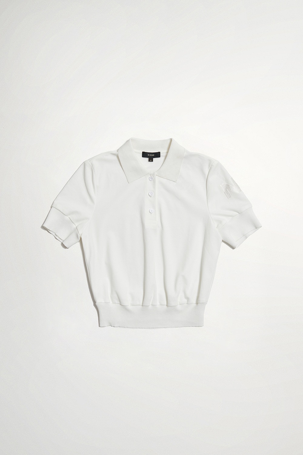 秘間坦想織感鬆緊短版翻領上衣 - 無瑕純白, 36