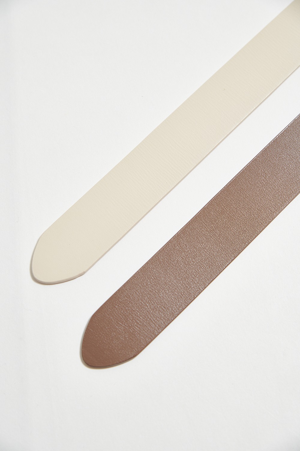 獨旅迷醒經典方釦皮帶 - 奶油杏色, F