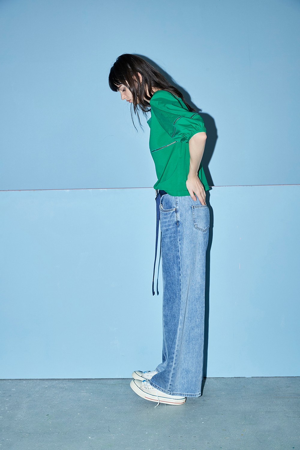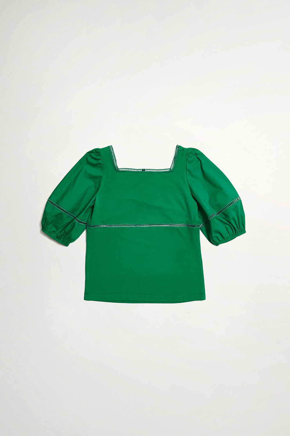 悅取美感鏤空設計方領澎袖上衣 - 平靜翠綠, 38