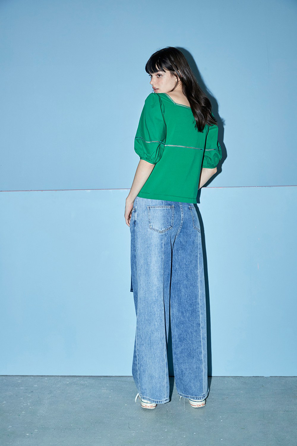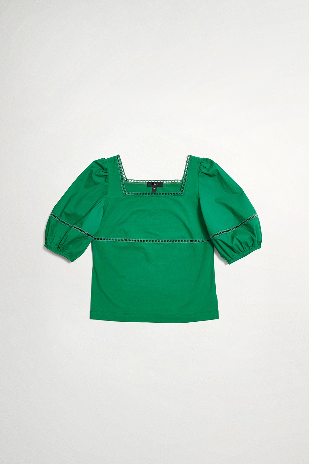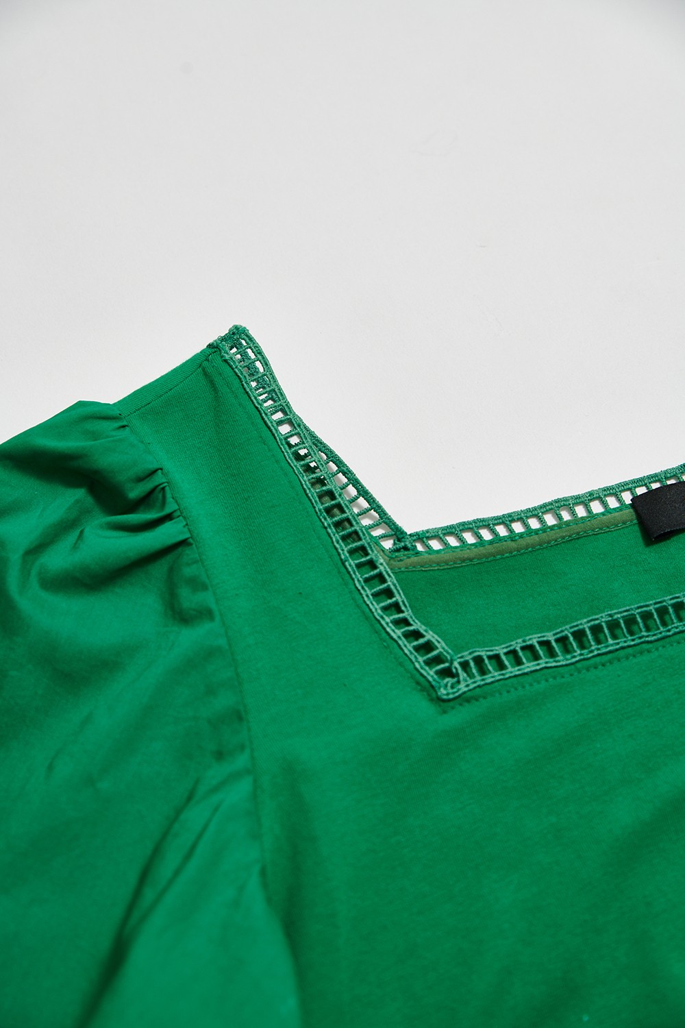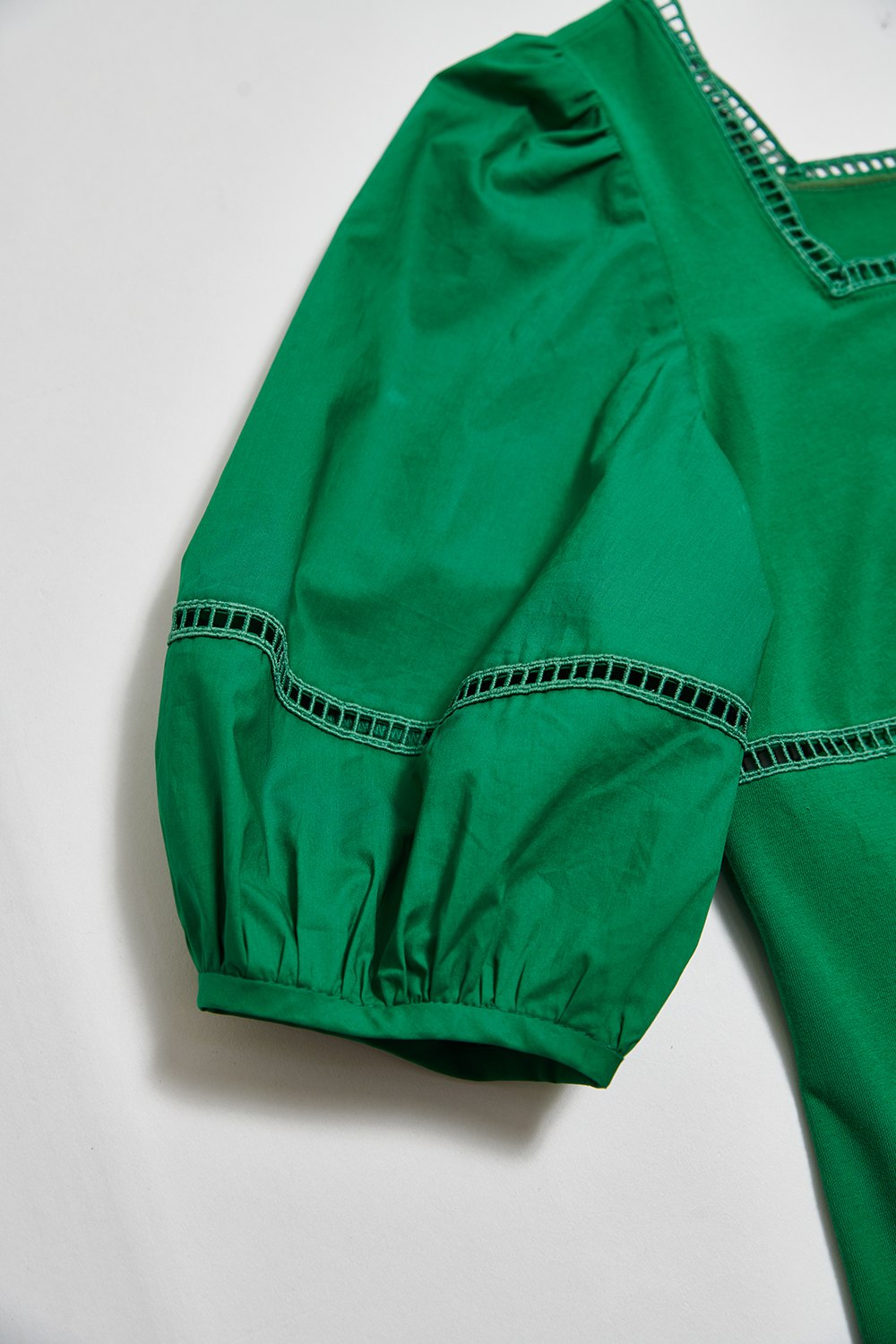 悅取美感鏤空設計方領澎袖上衣 - 平靜翠綠, 36