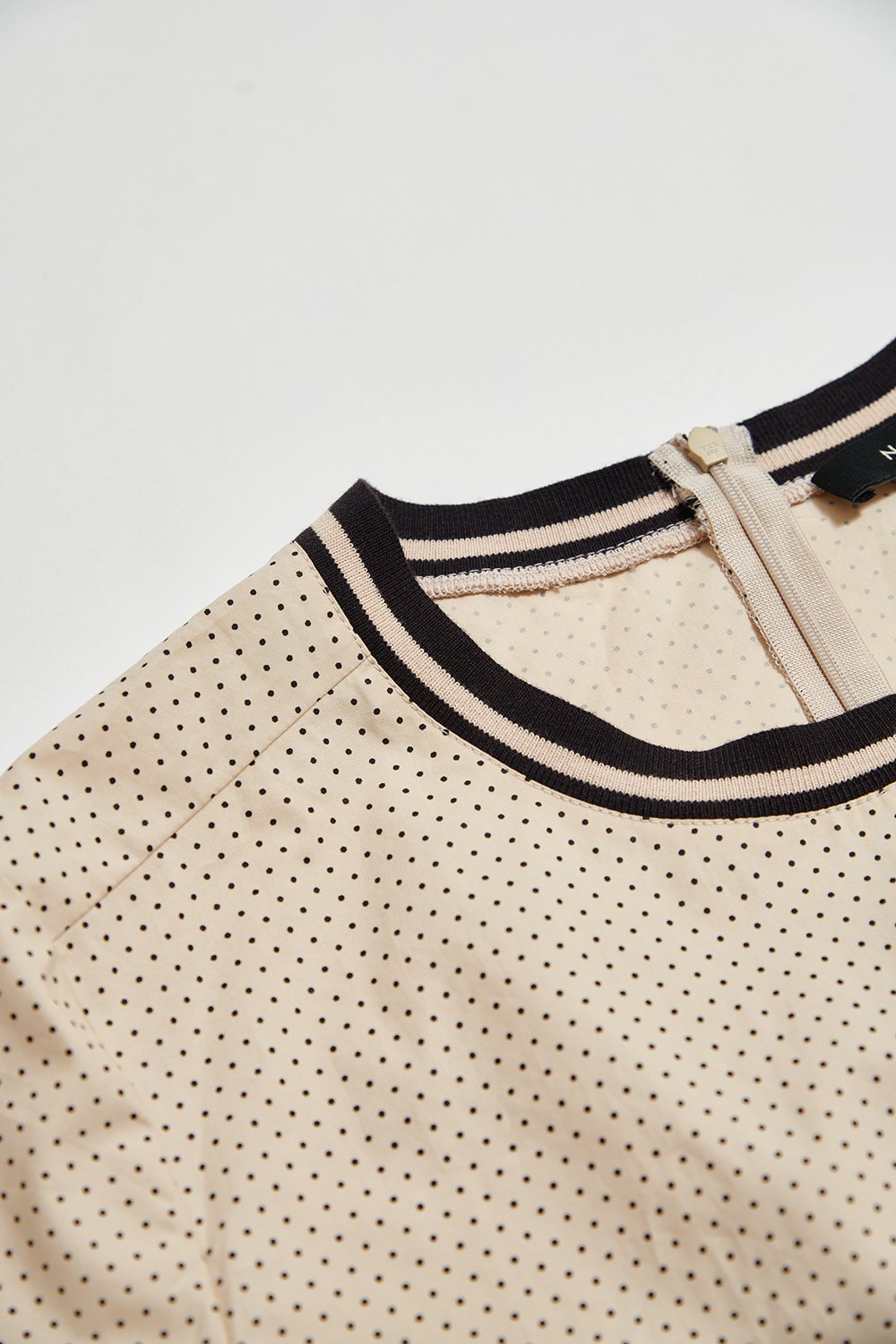 暮織奏伴滾邊設計後抓褶圓點上衣 - 可可卡其, 38
