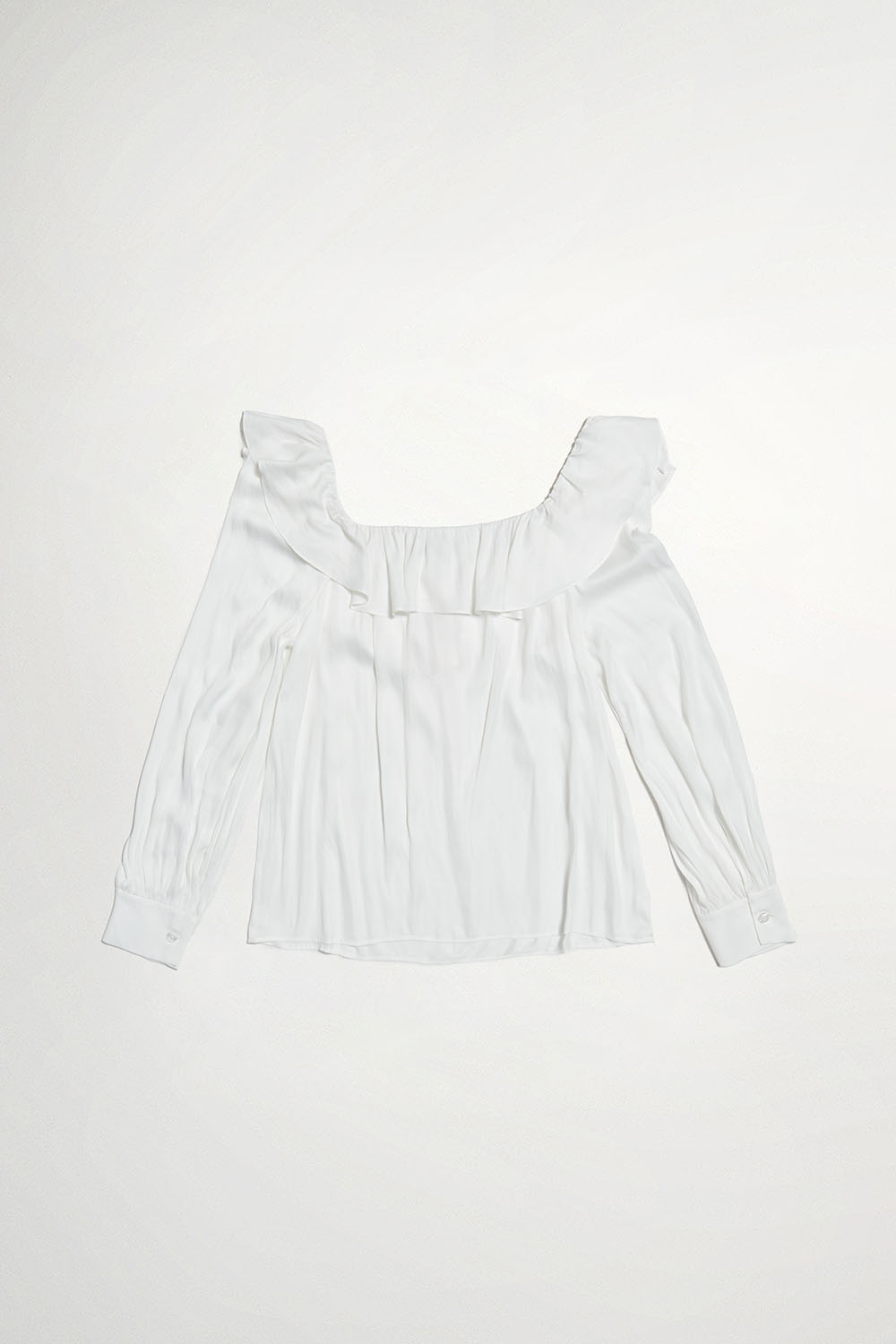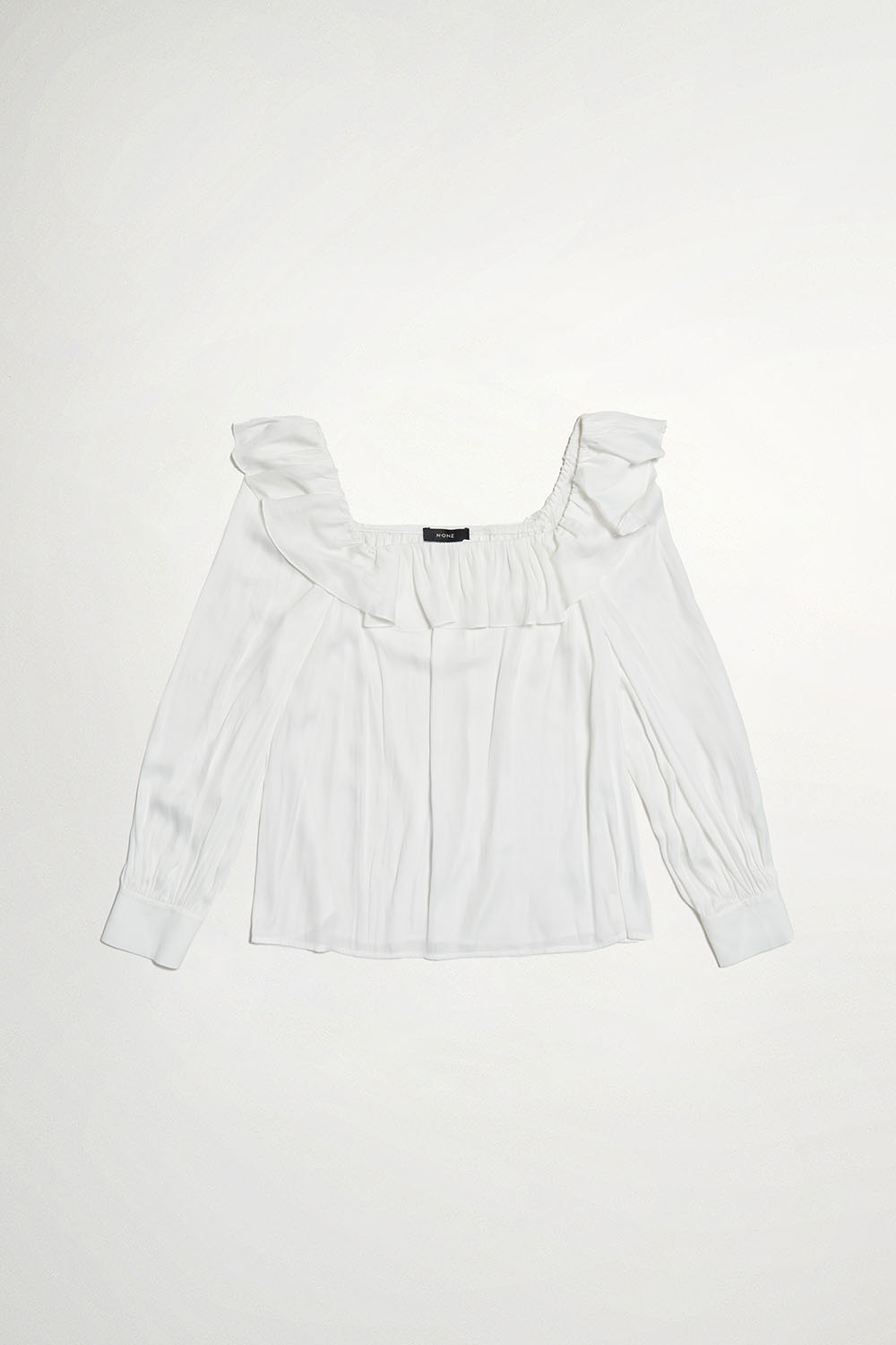 輕語美刻荷葉方領澎感上衣 - 無瑕純白, 38