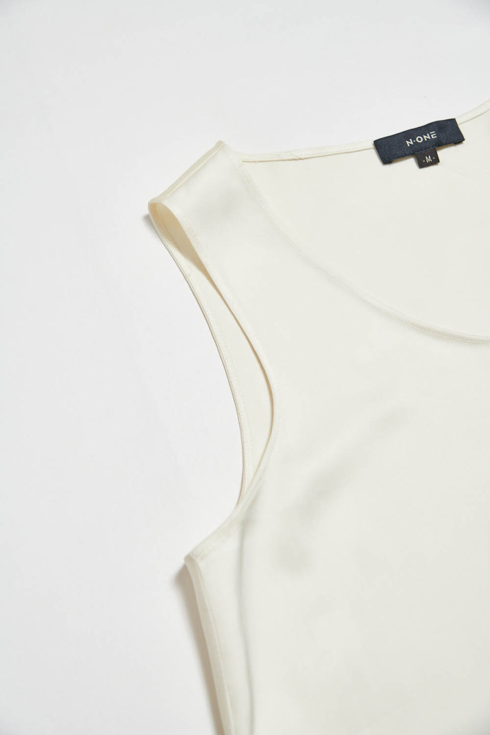 日影沐晨緞面圓領長版背心 - 奶油杏色, 38
