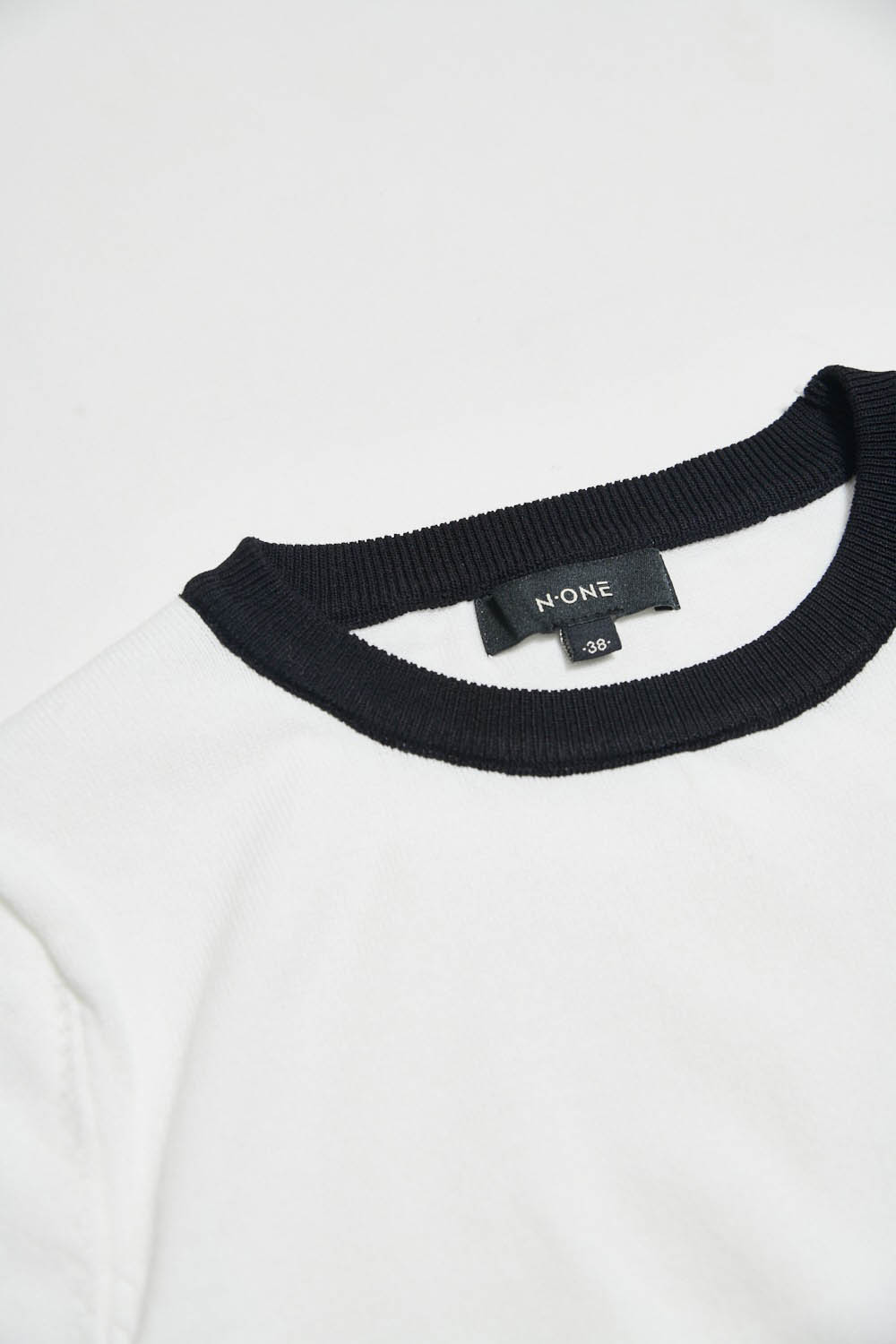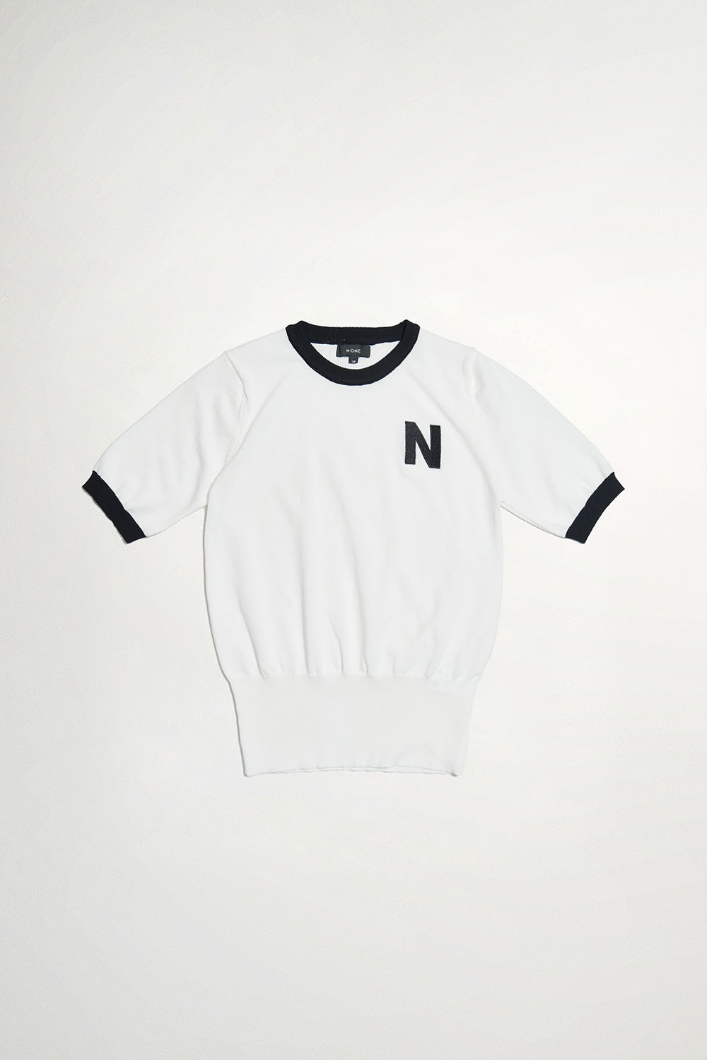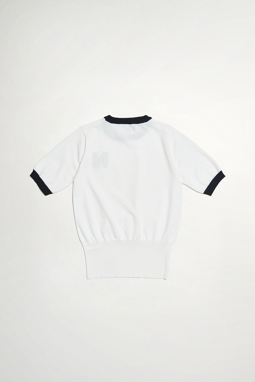 蹤謐感性品牌字母繡花針織滾邊上衣 - 無瑕純白, 40