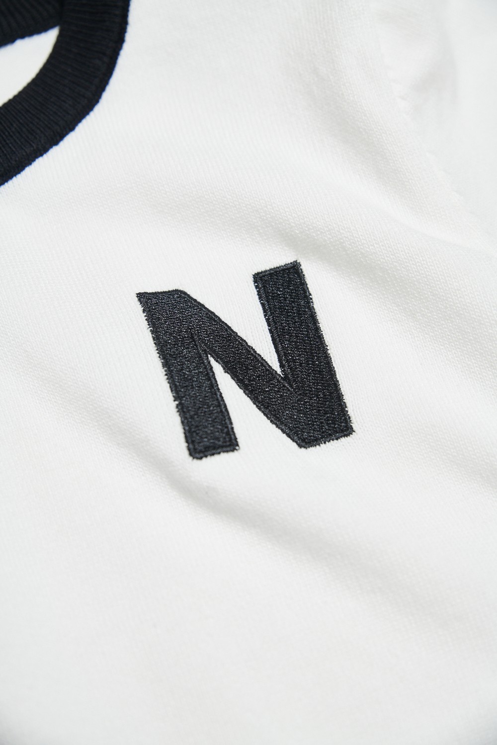 蹤謐感性品牌字母繡花針織滾邊上衣 - 無瑕純白, 36