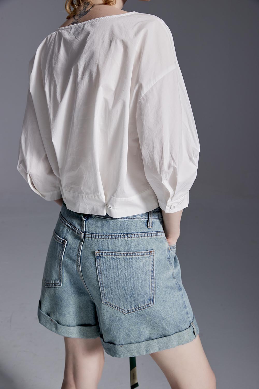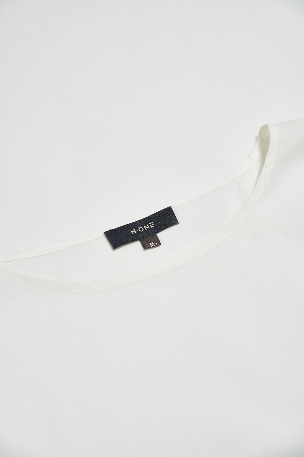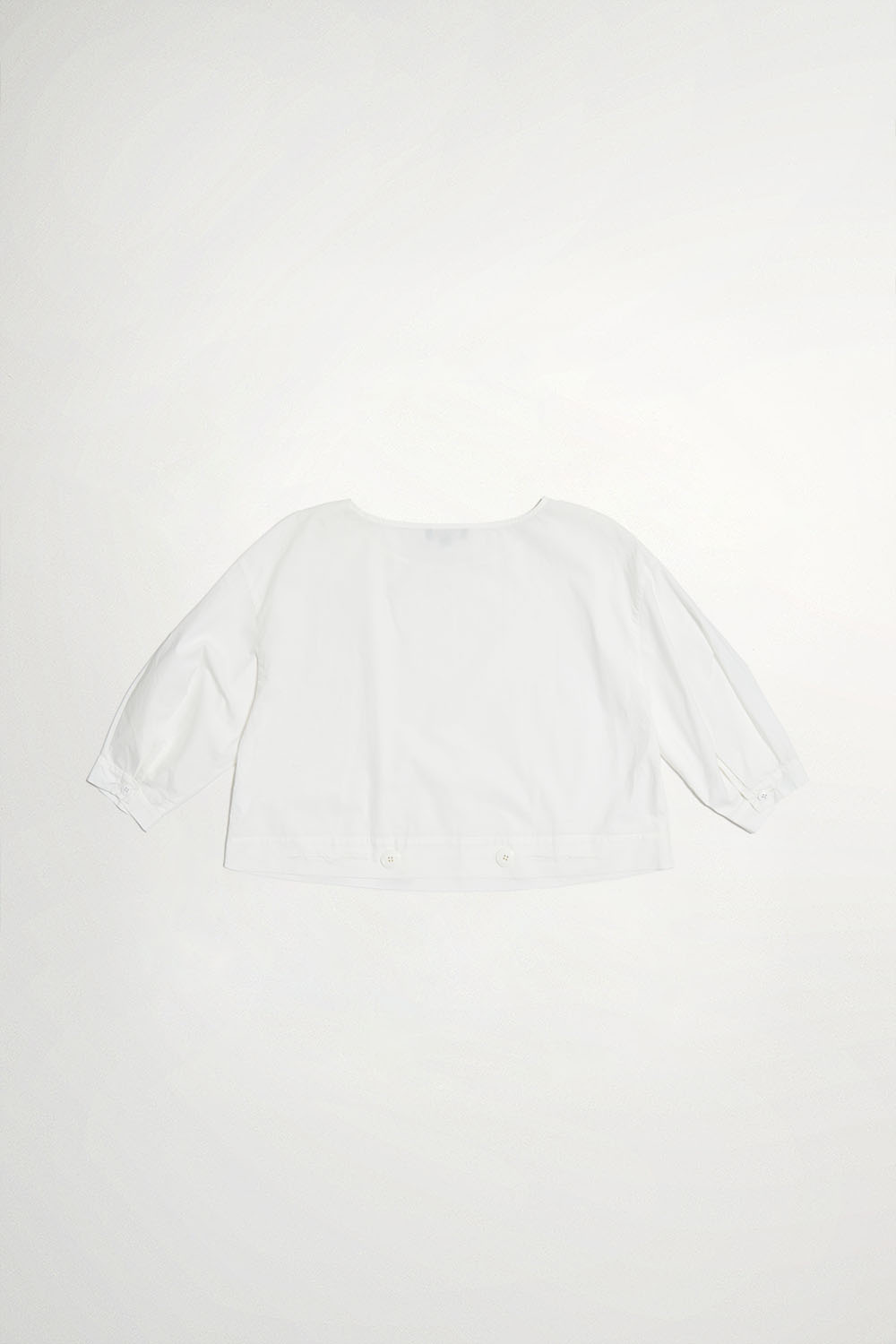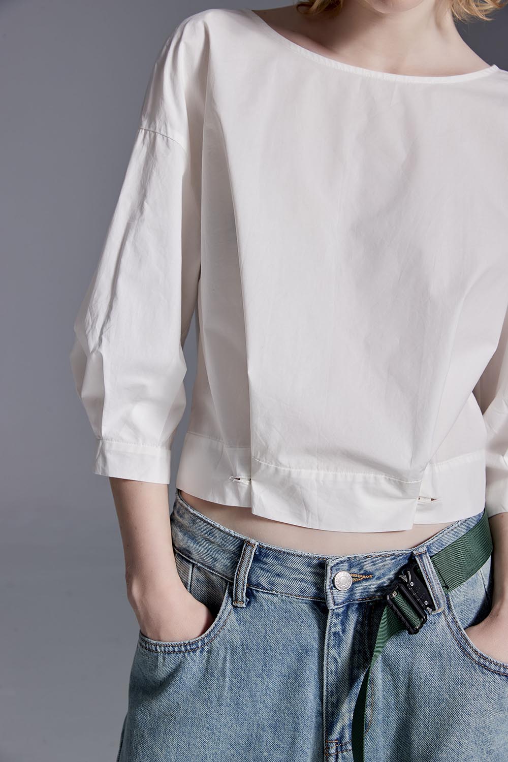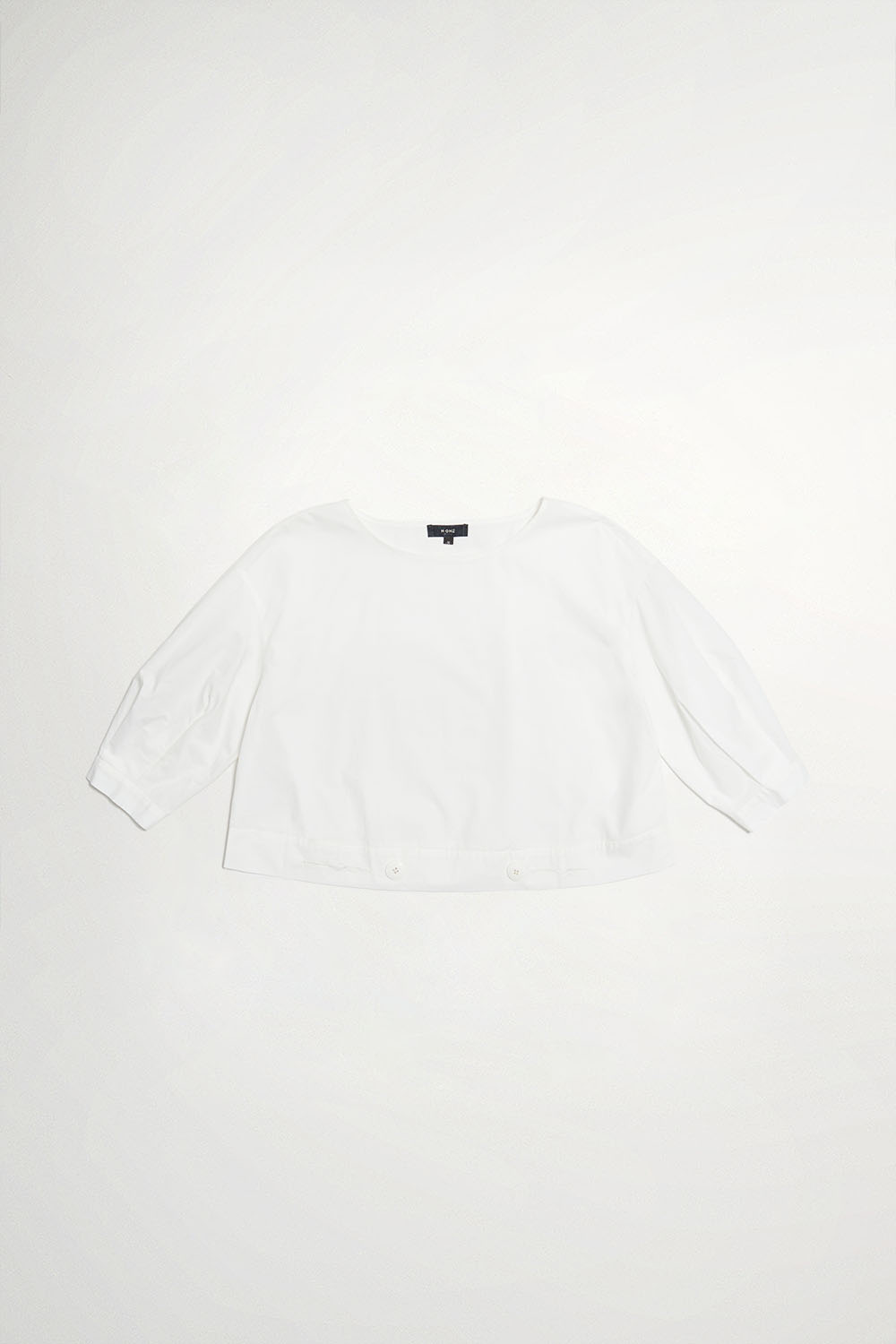 淨語秋盼下襬收褶澎袖圓領上衣 - 無瑕純白, 36