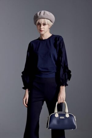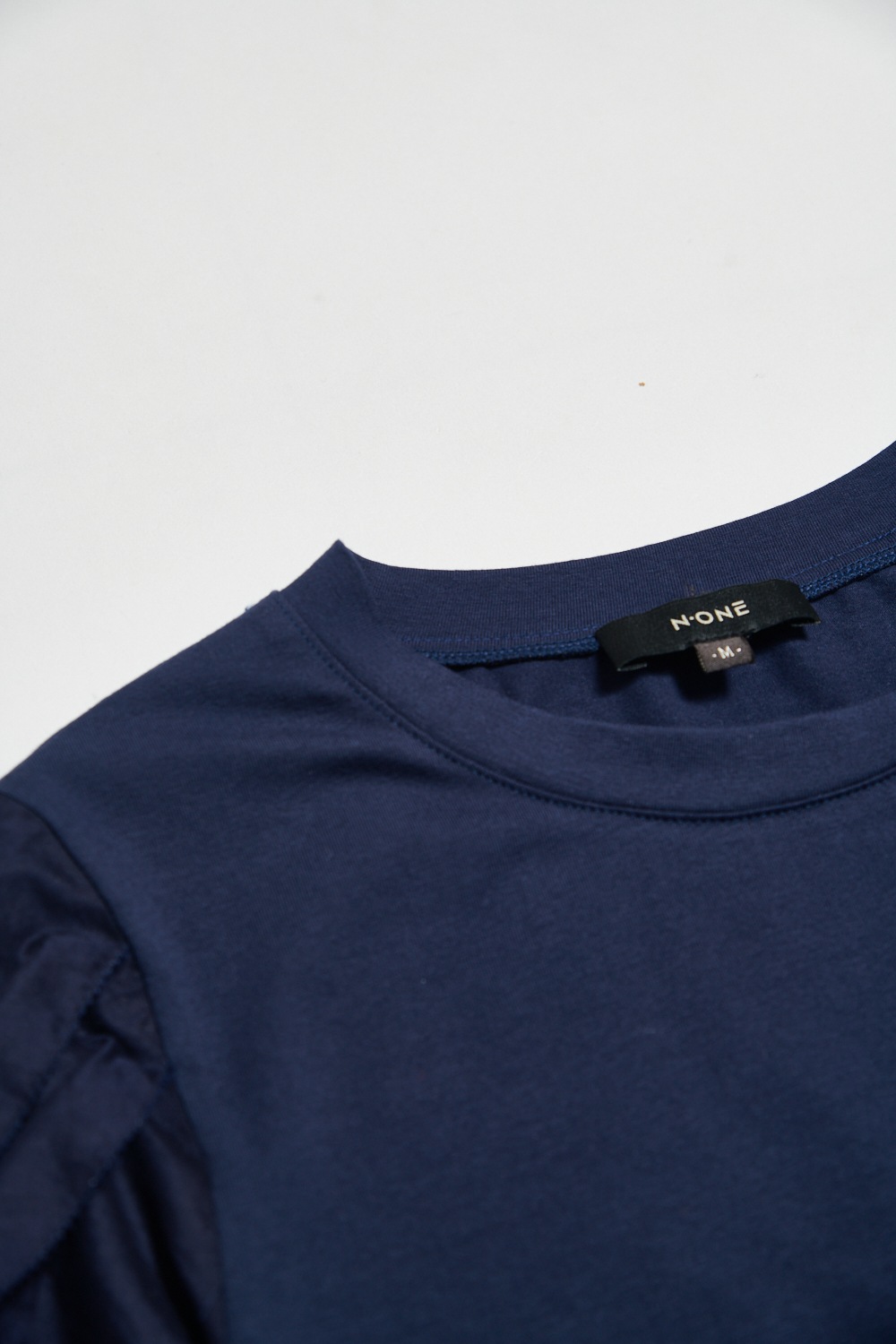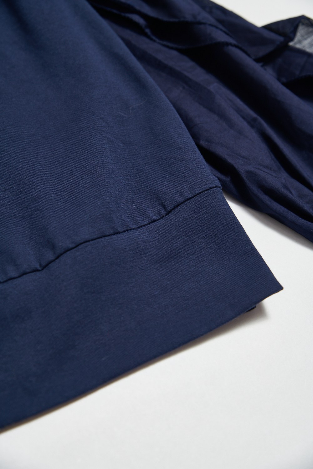 舒漫純粹荷葉拼接圓領棉質上衣 - 寧靜黛藍, 36