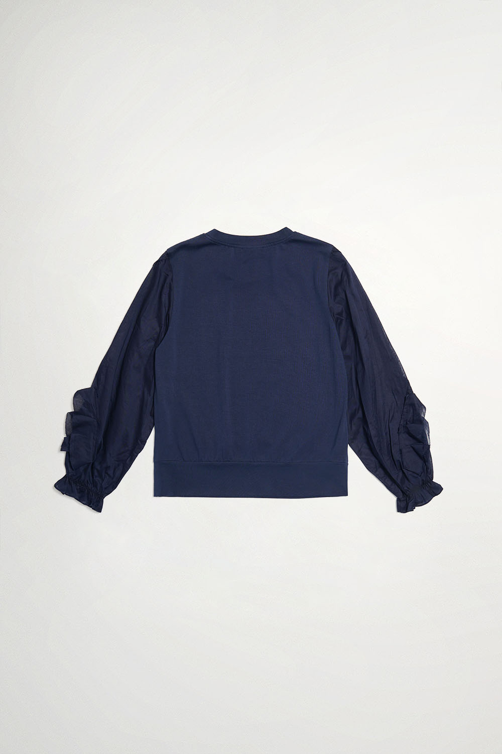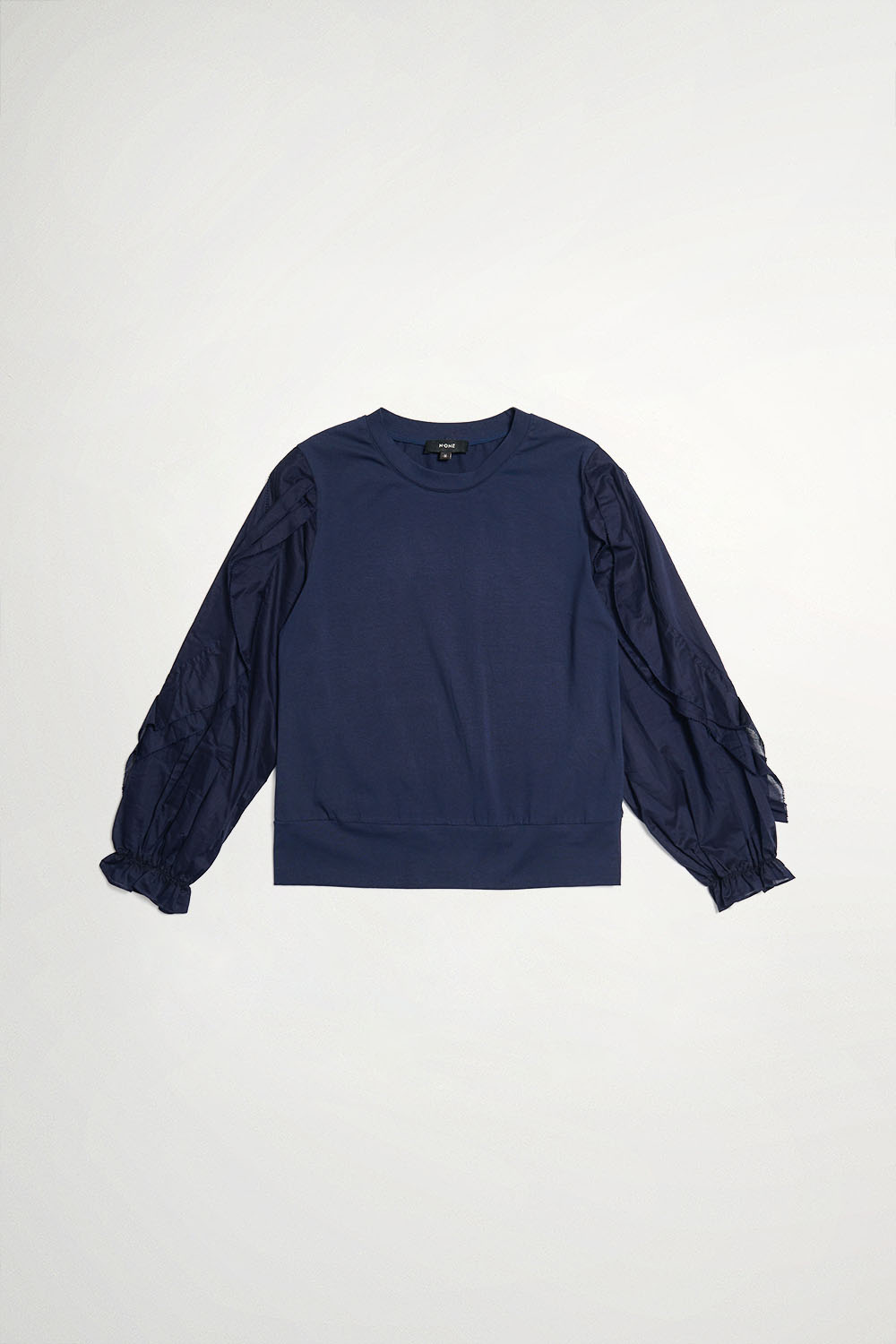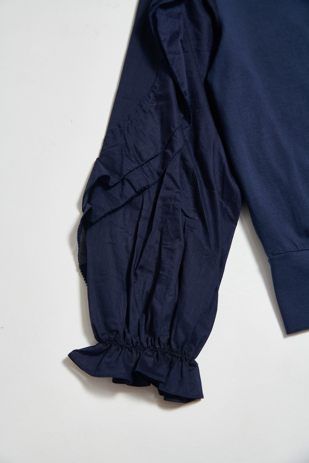 舒漫純粹荷葉拼接圓領棉質上衣 - 寧靜黛藍, 38