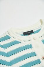 律感輕息鏤空澎袖針織排釦外套 - 無瑕純白, 38