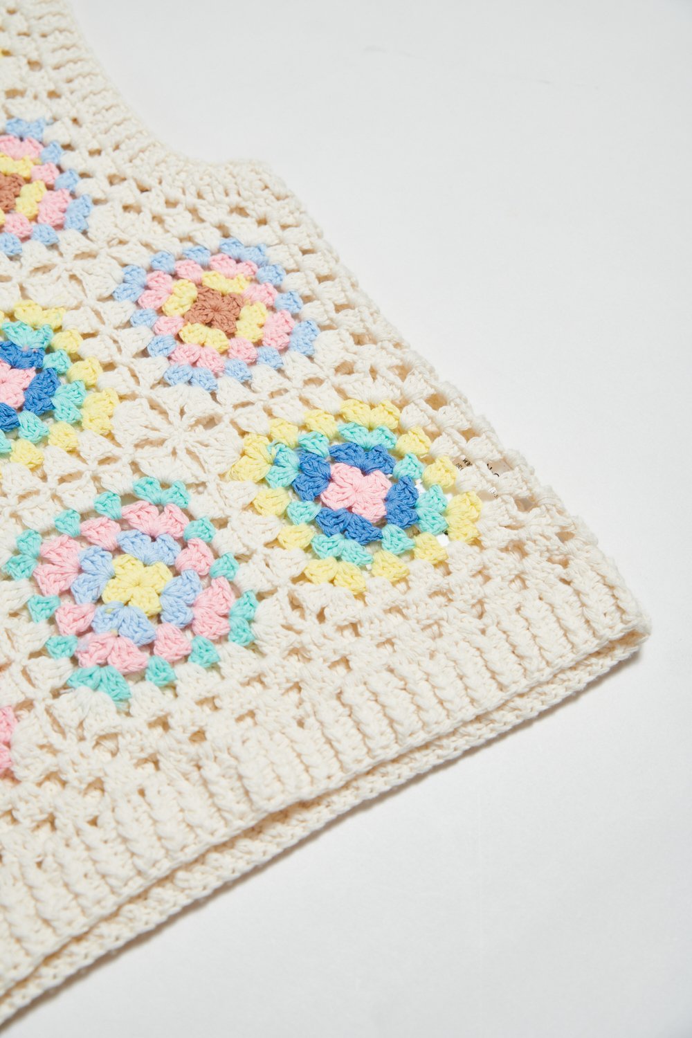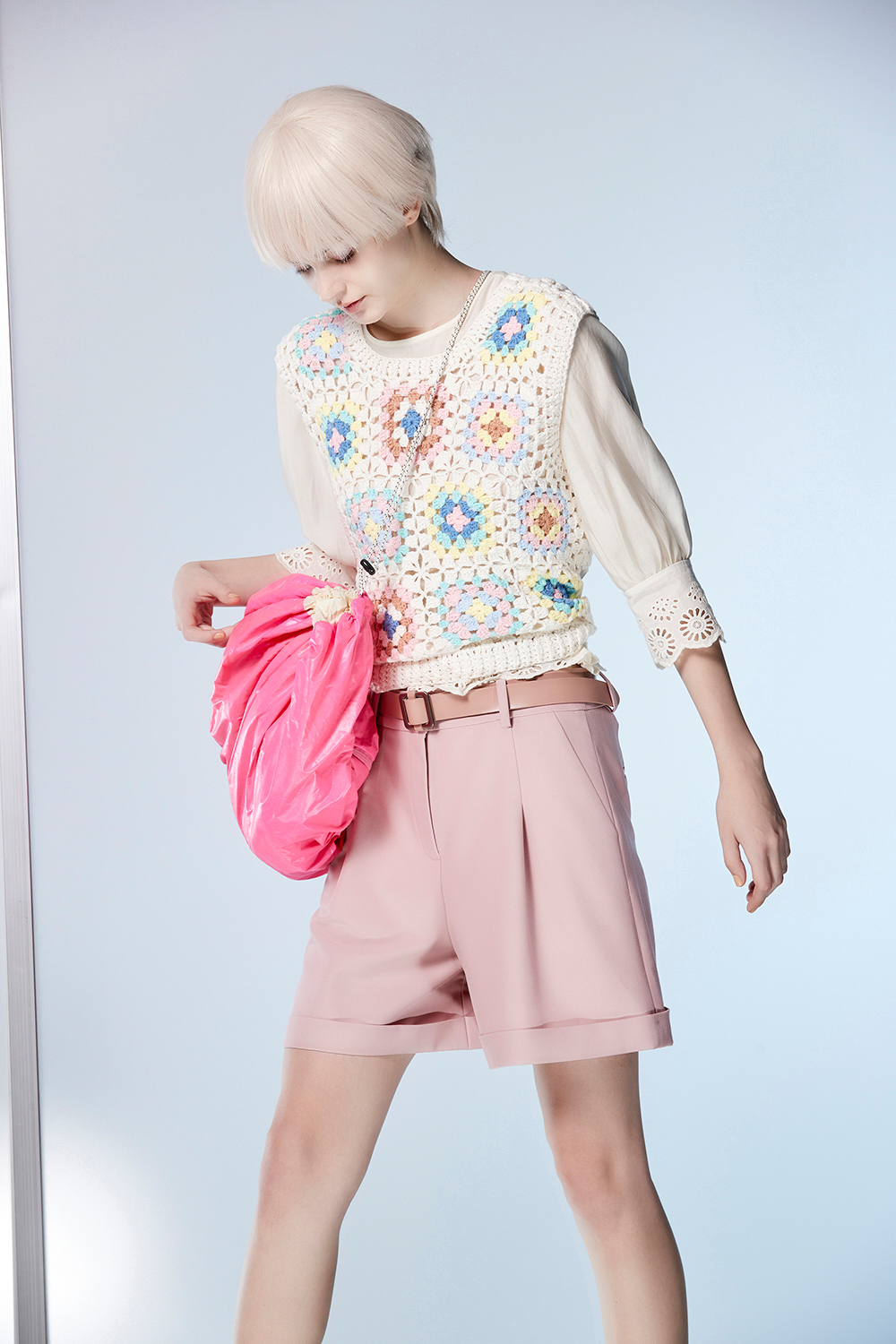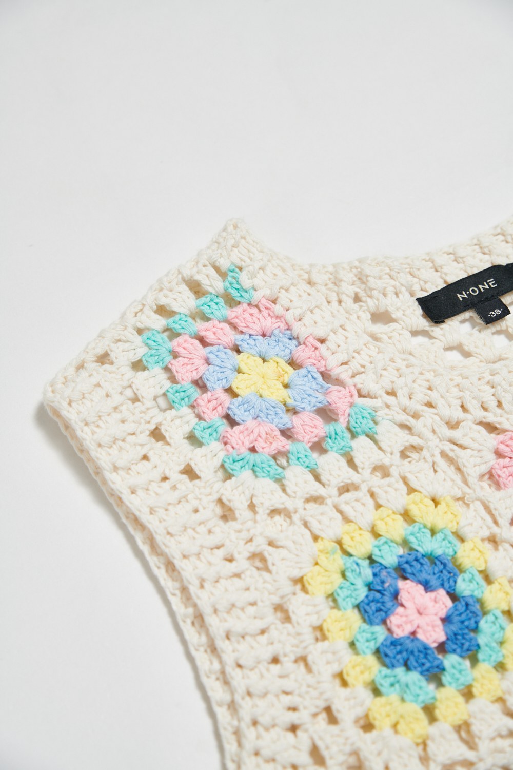 綻漾花間繽紛織花圓領落肩背心 - 奶油杏色, 38