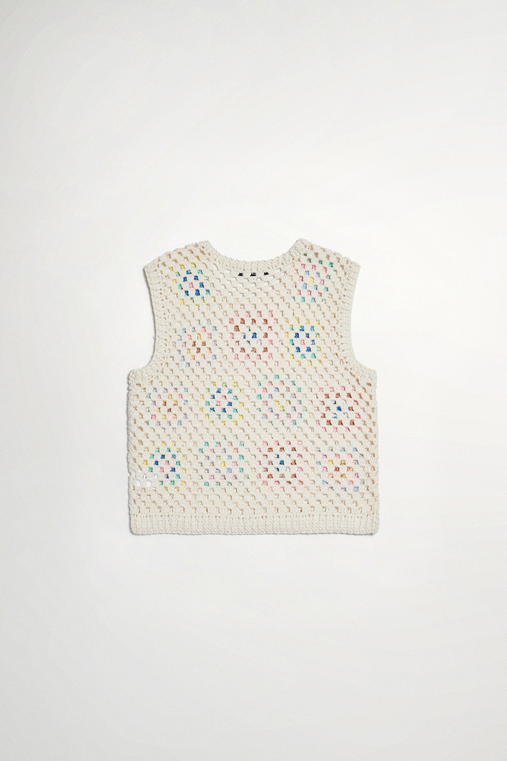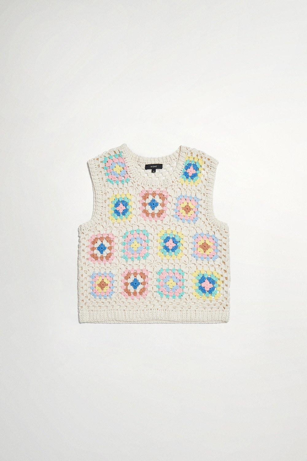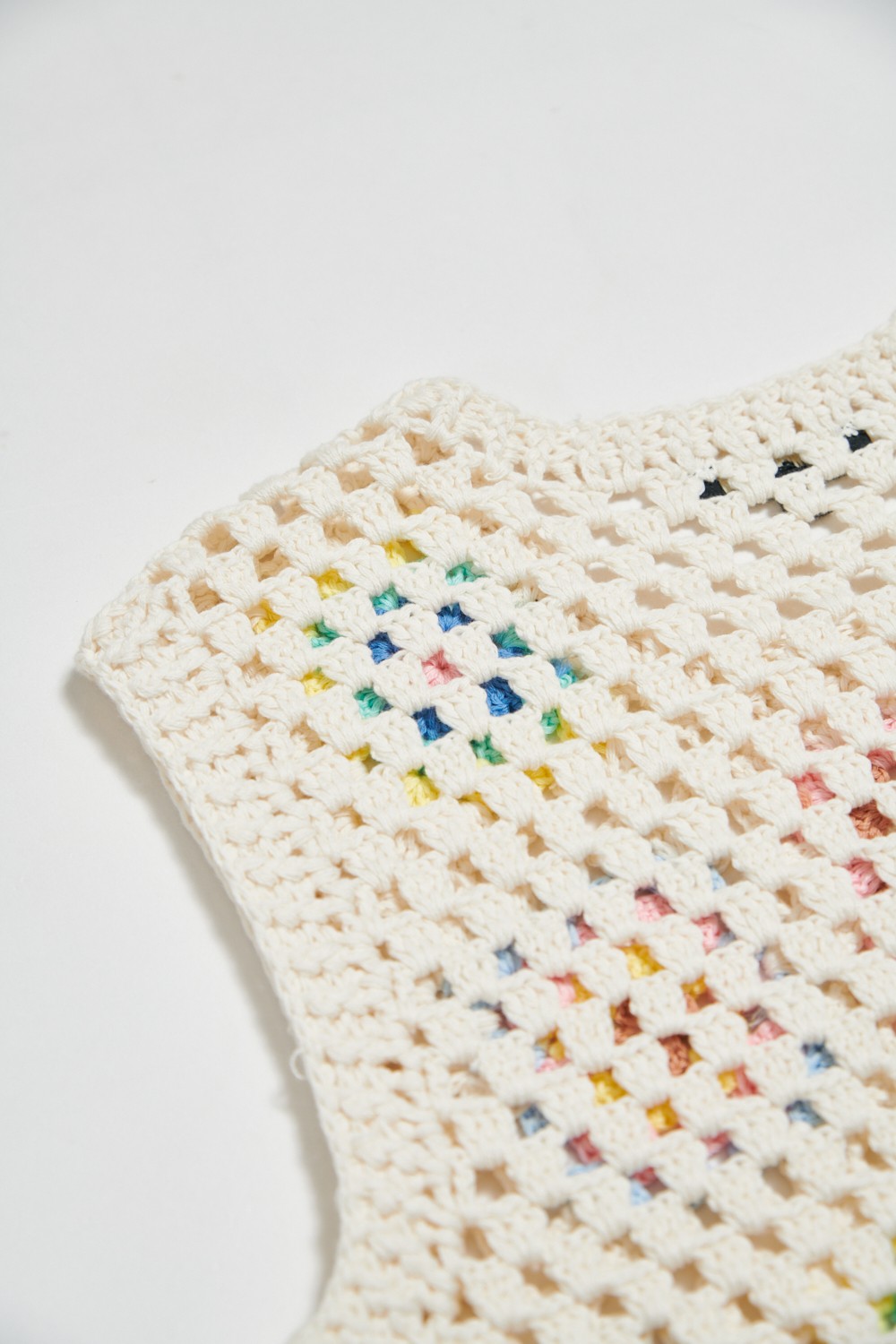 綻漾花間繽紛織花圓領落肩背心 - 奶油杏色, 38