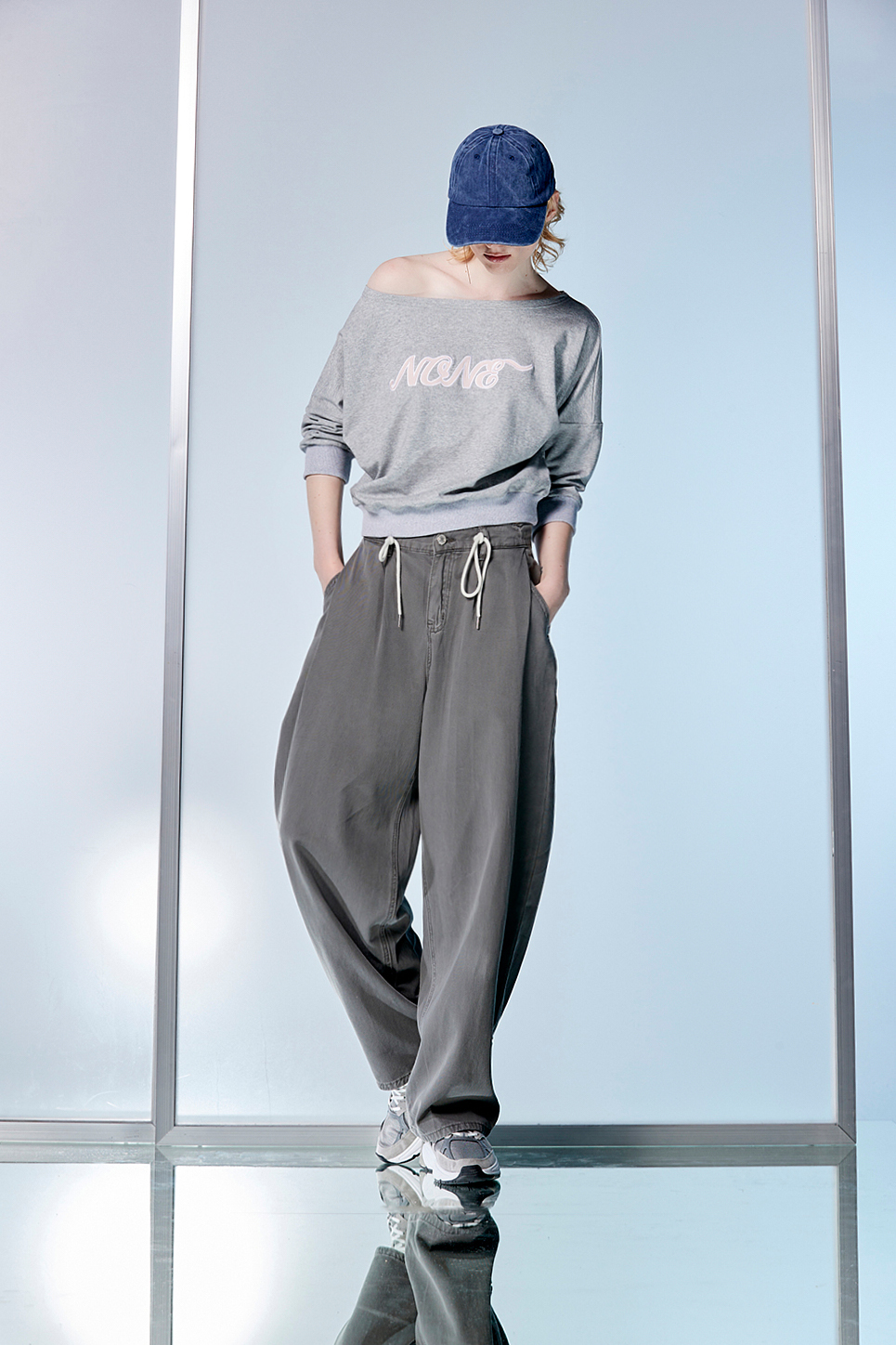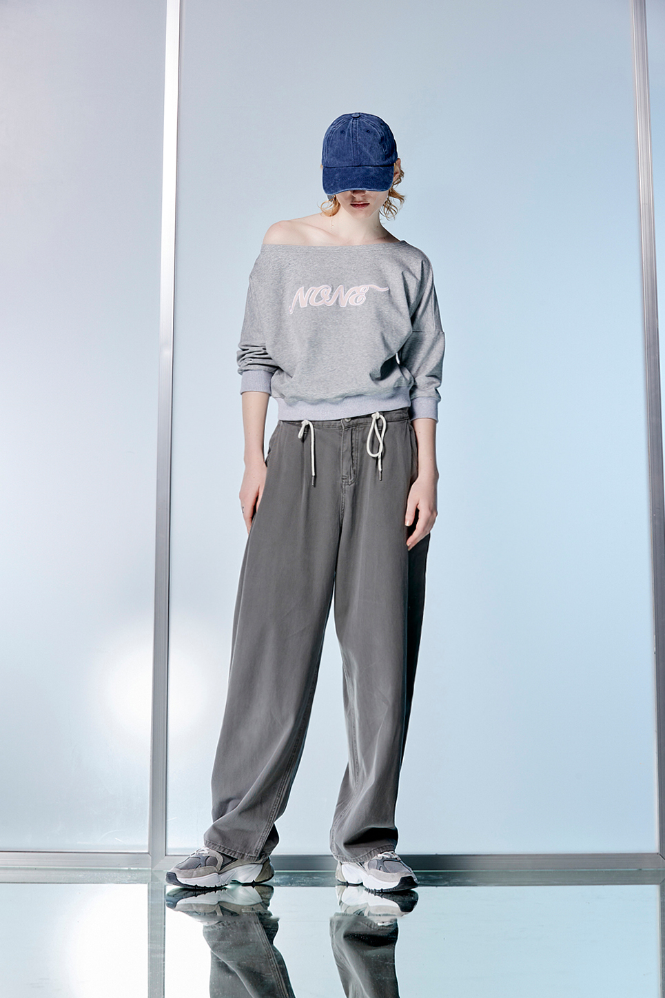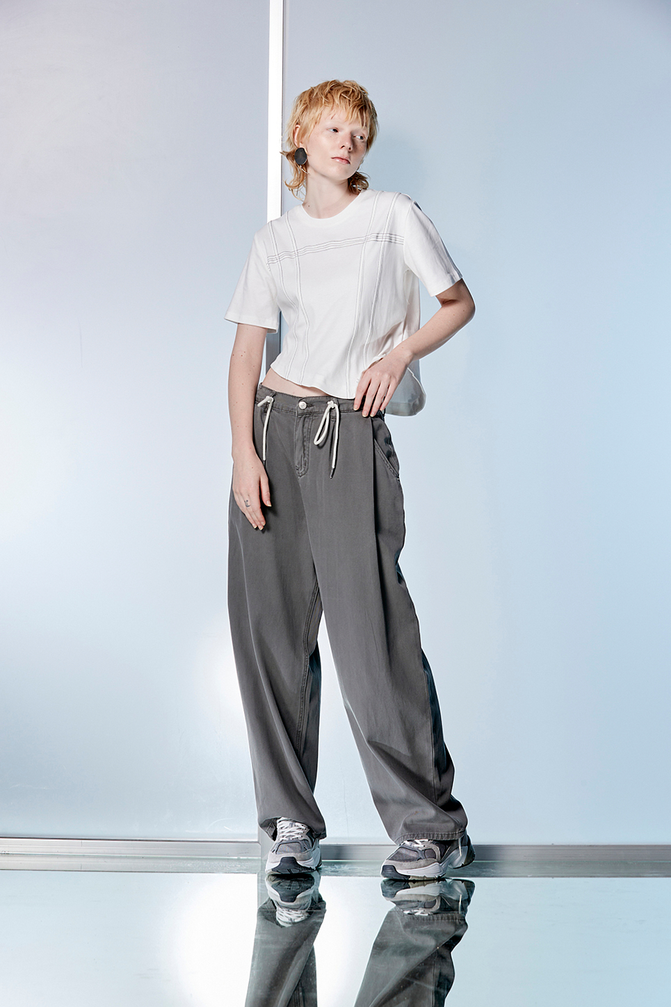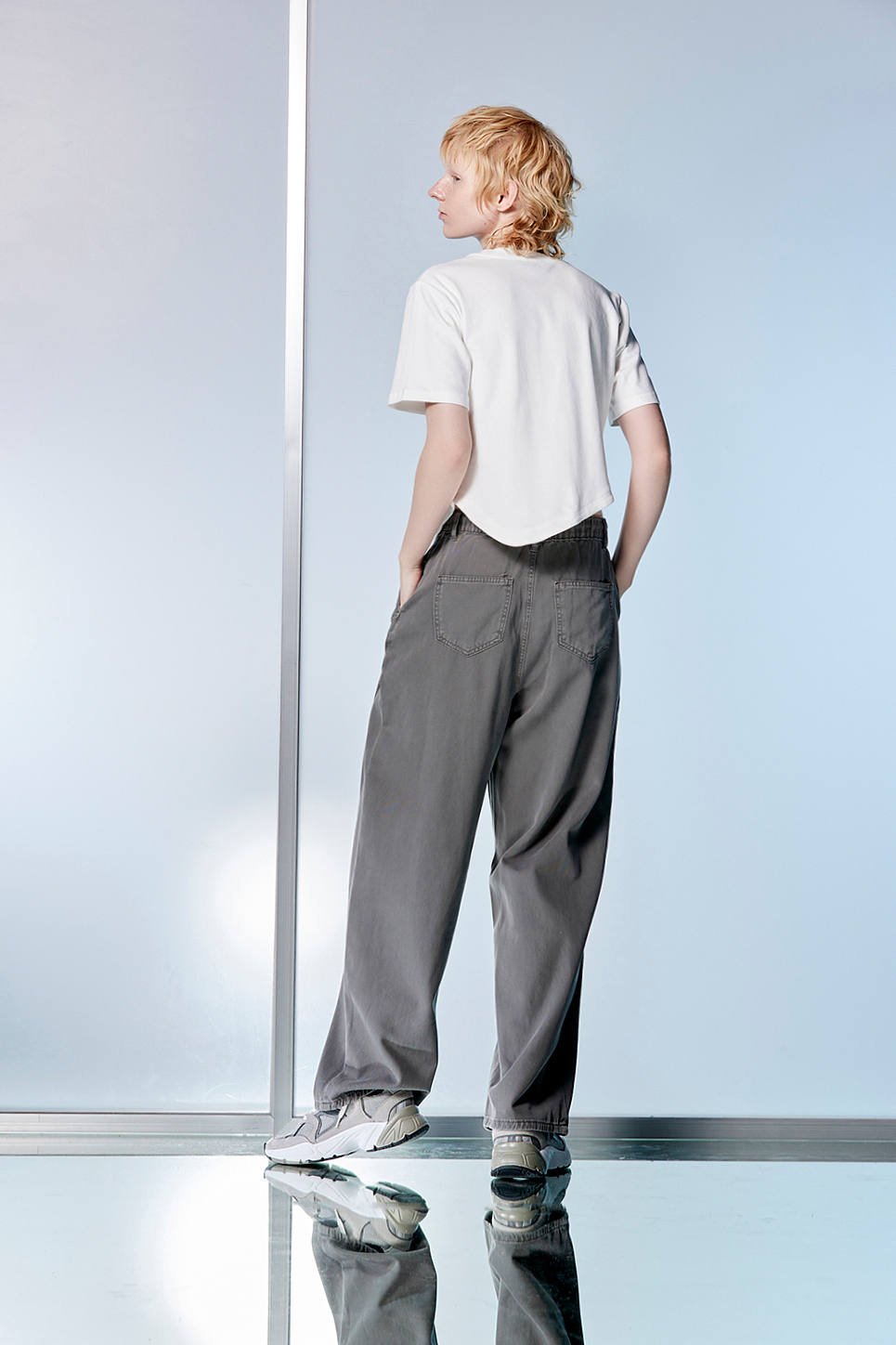 寧息意境鬆緊綁帶牛仔直筒寬褲 - 沉穩霧灰, 36