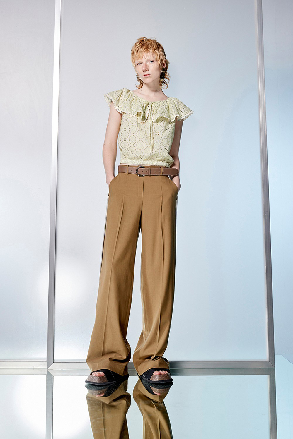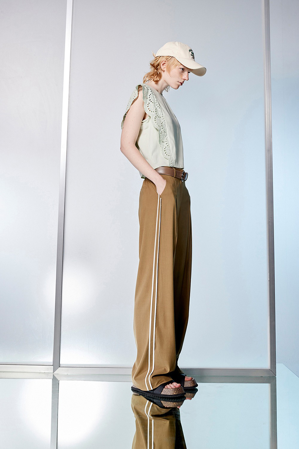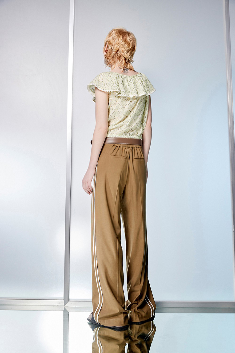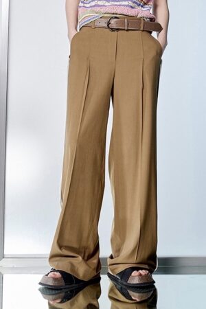 感悟之褐側抓褶直筒寬褲 - 夢幻灰綠, 40