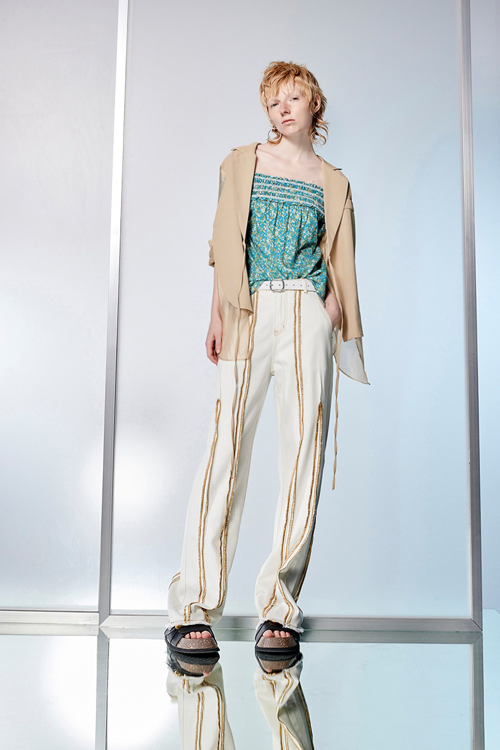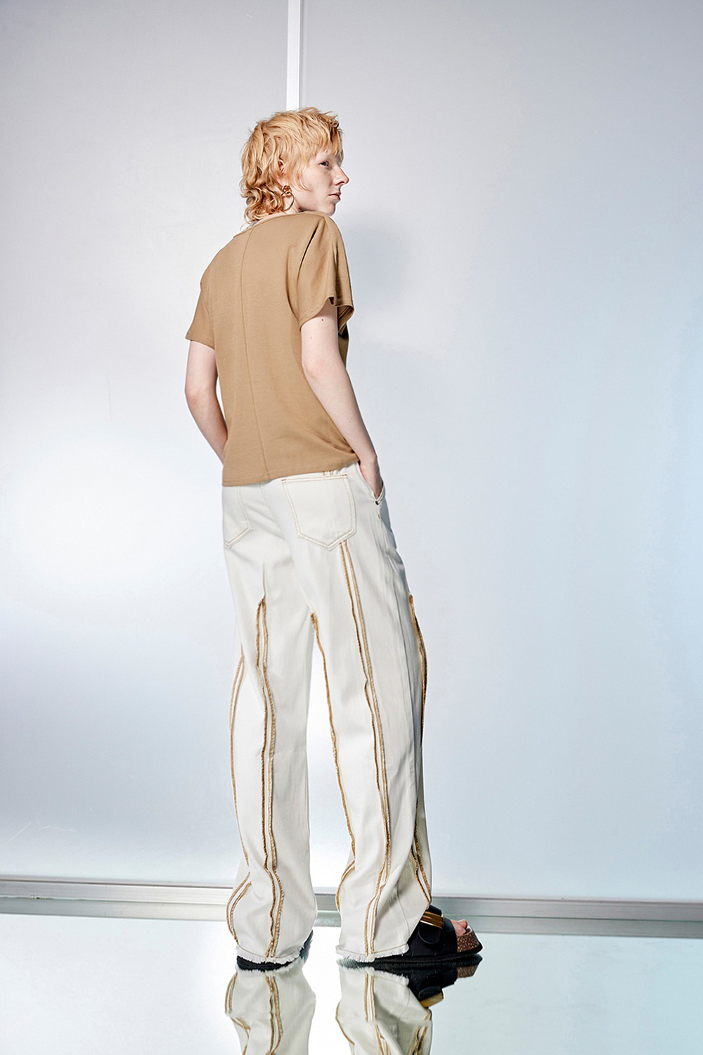晨光溫韻流蘇拼接牛仔寬褲 - 無瑕純白, 38